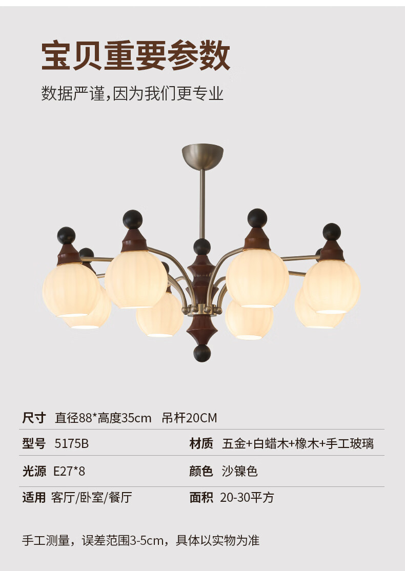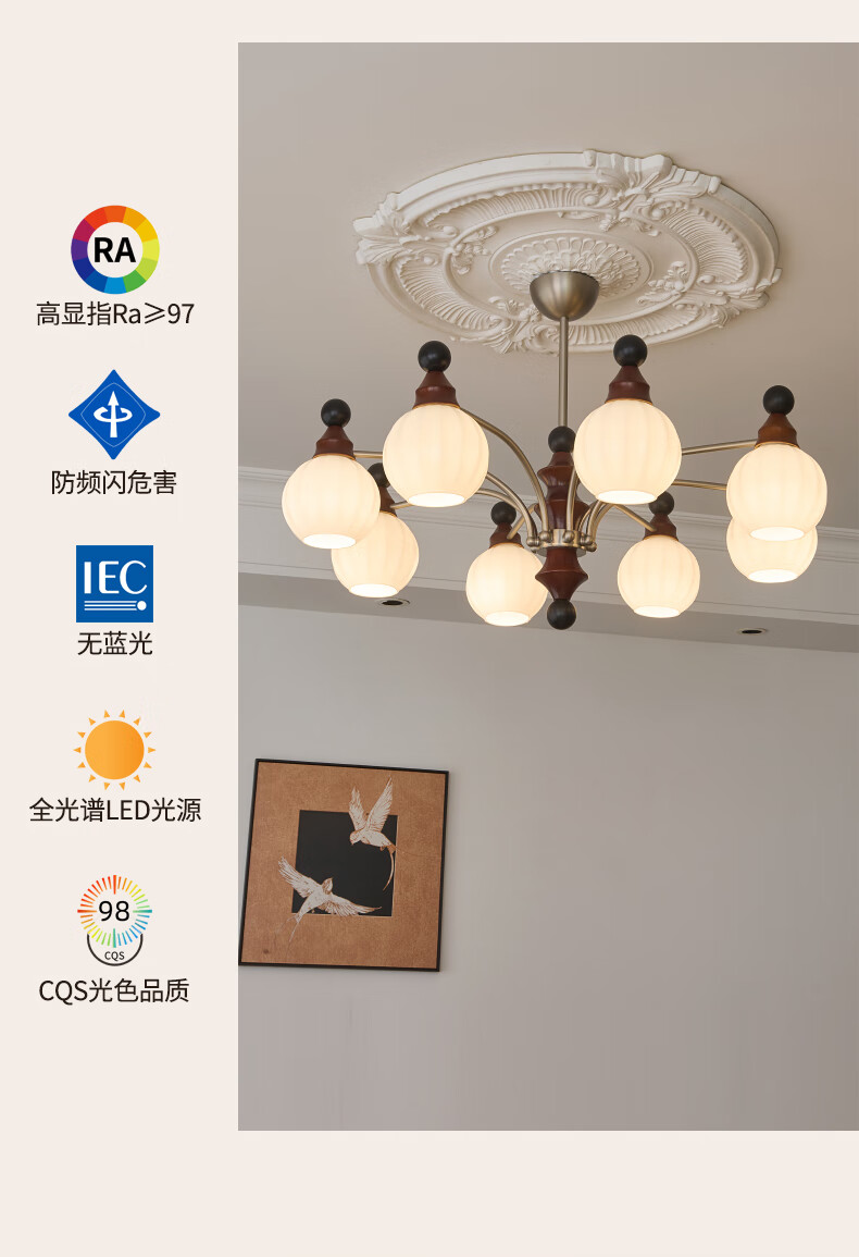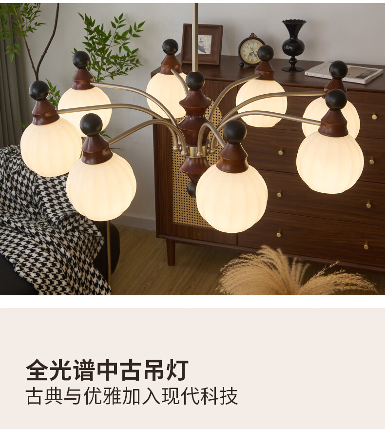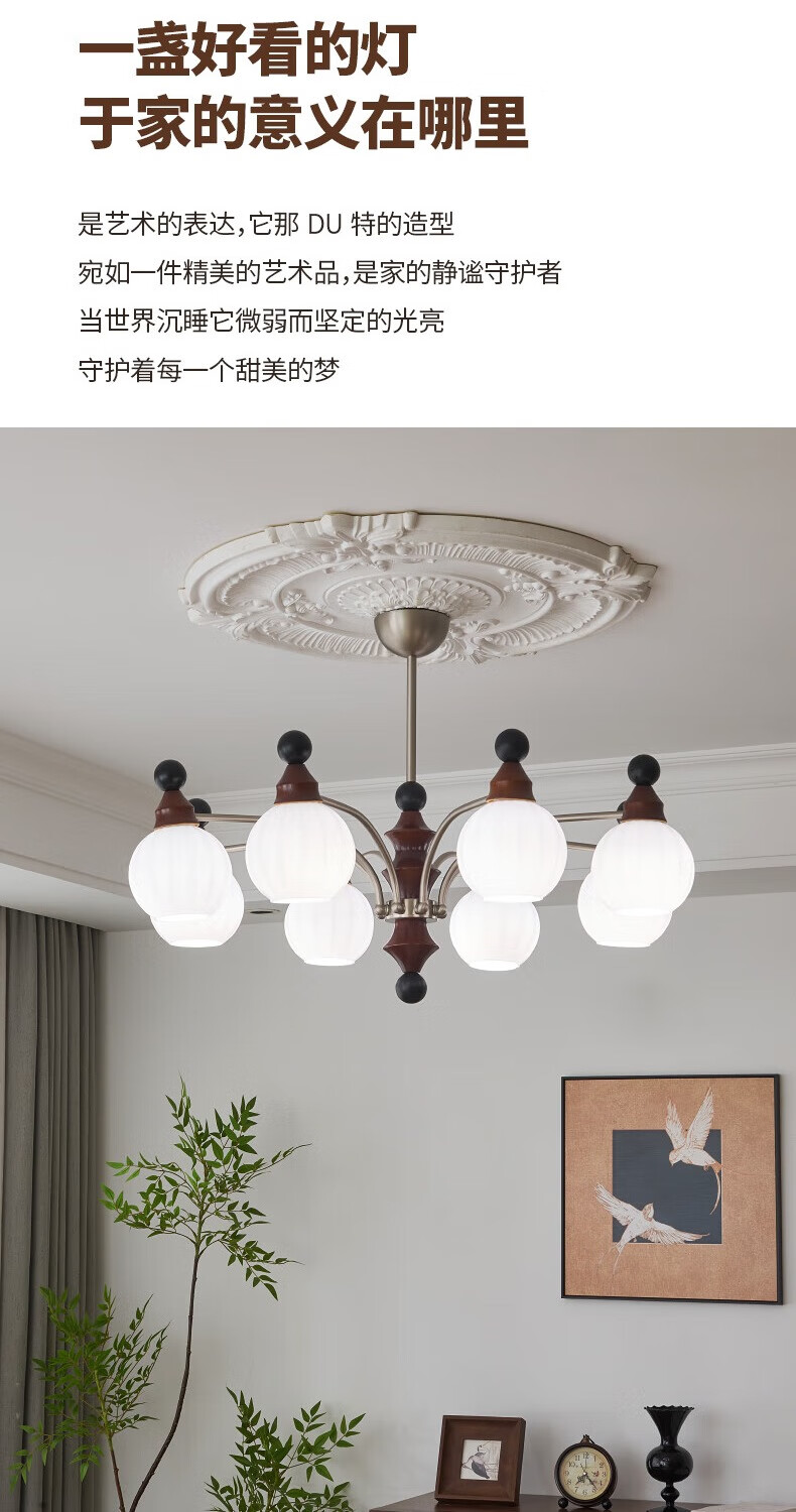 源氏木语中古风客厅吊灯大气美式餐厅大厅主灯法式复古南洋风卧室灯具 8头/三色变光