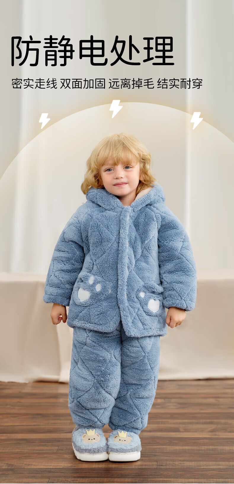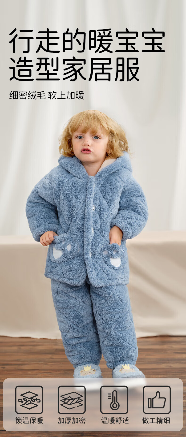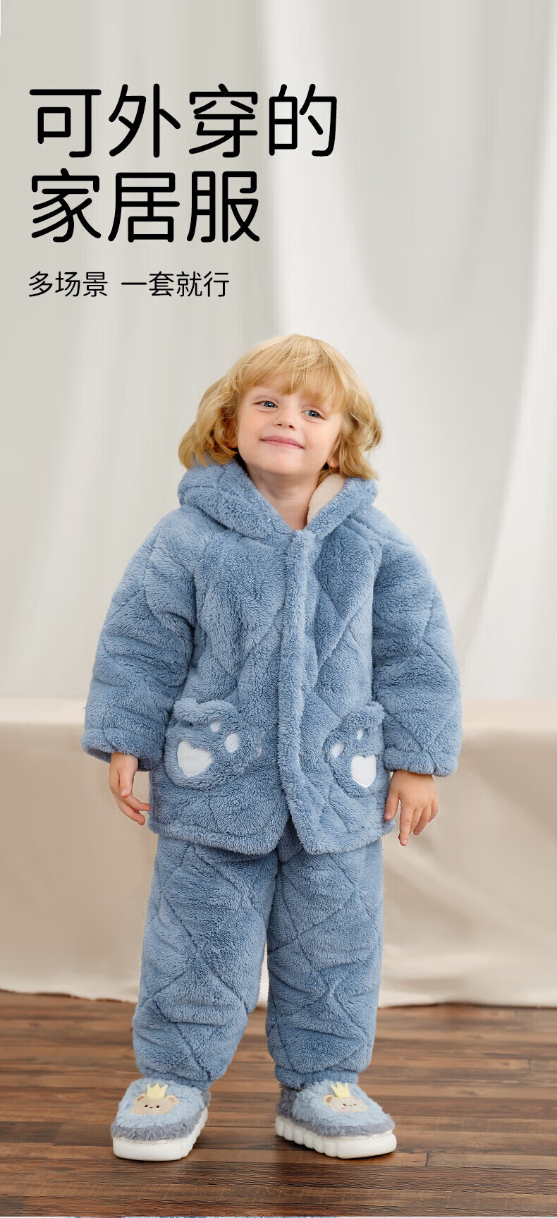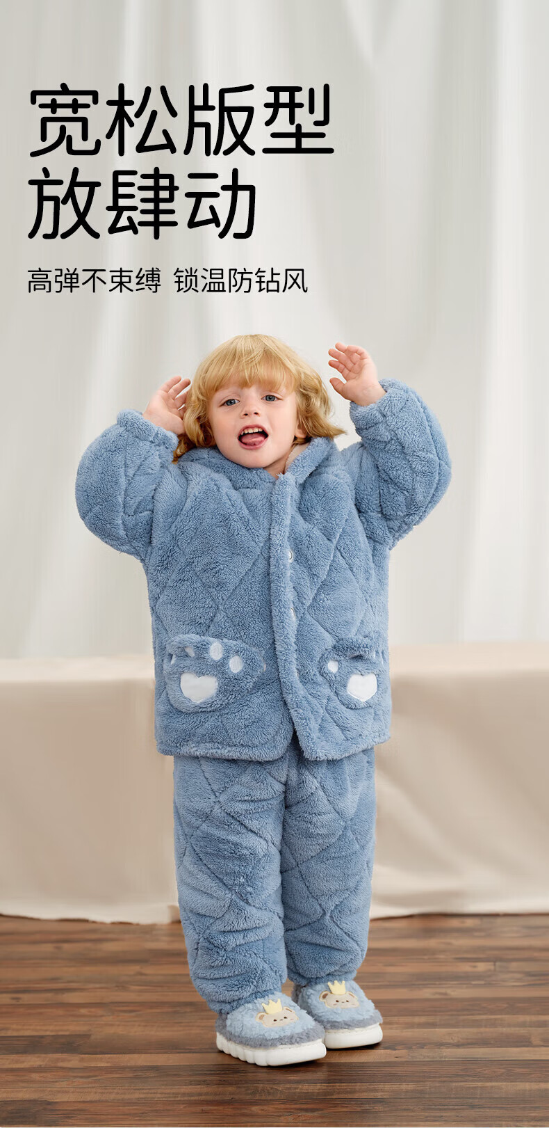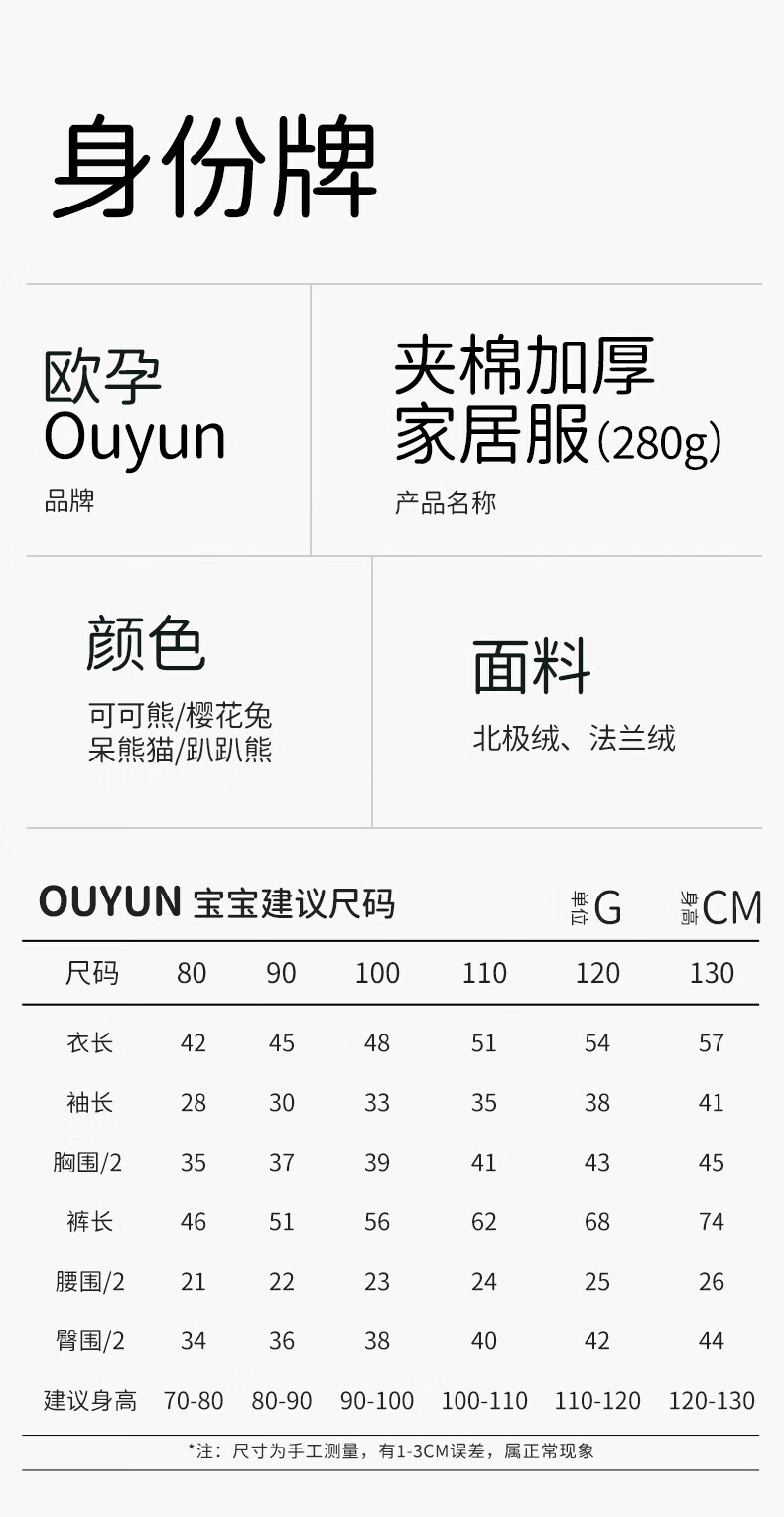 欧孕(OUYUN)儿童家居服宝宝睡衣新款秋冬季男女童法兰绒加厚外出套装 呆熊猫 升级三层绒 防风锁暖 100 cm 抗静电 舒适耐穿
