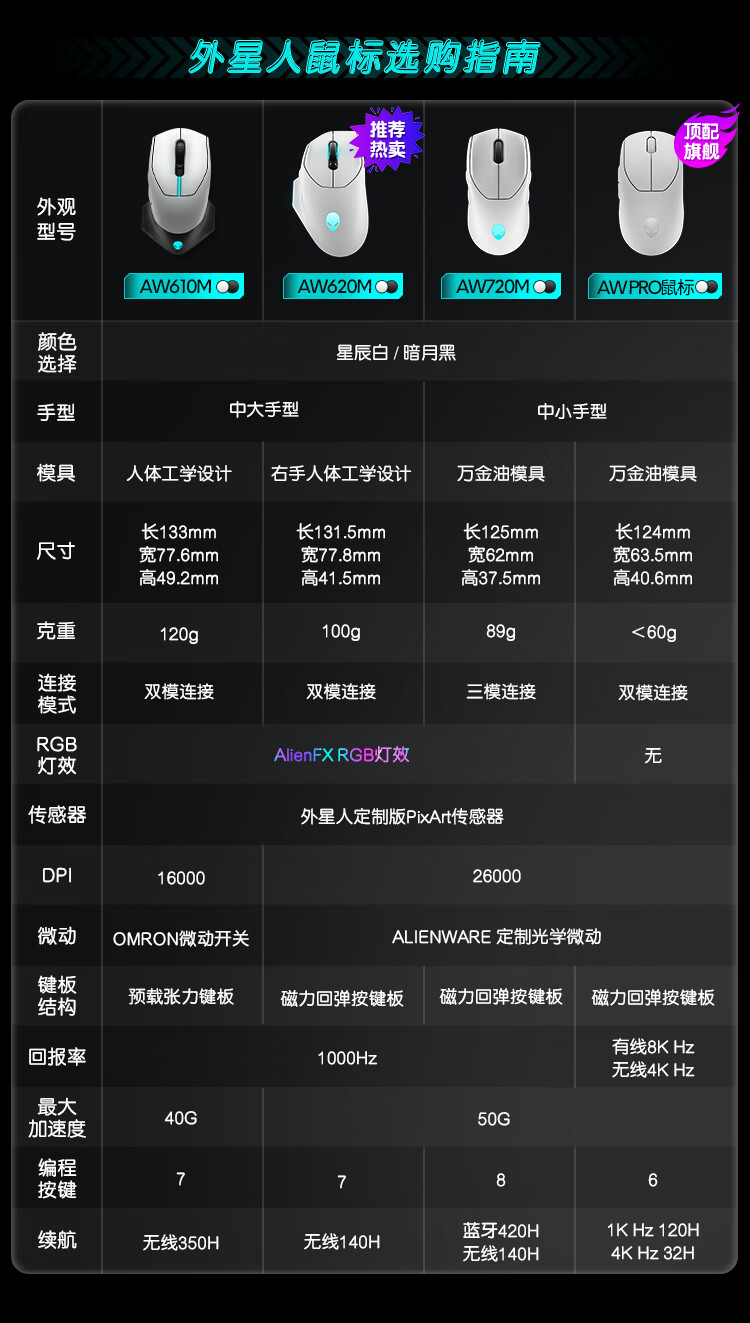 外星人(Alienware)AW610M 无线游戏鼠标双模充电电竞鼠标家用人体工学机械宏无限rgb高端外设