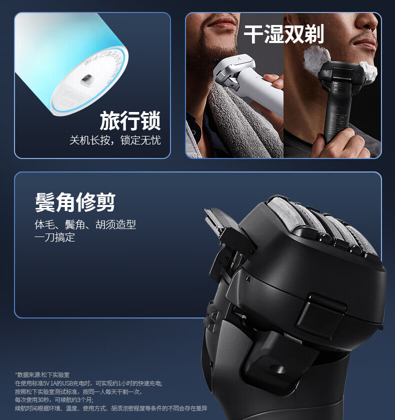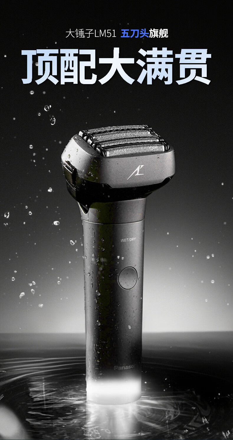 松下(Panasonic)剃须刀国家补贴电动刮胡刀大锤子五刀头进口便携往复式男生生日圣诞节礼物男士送男朋友父亲LM51黑