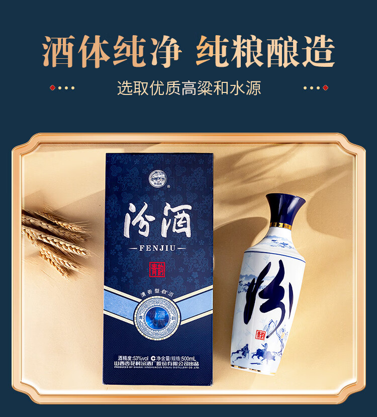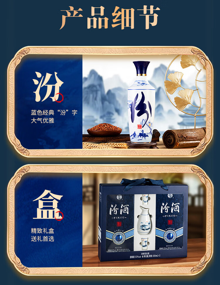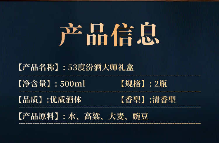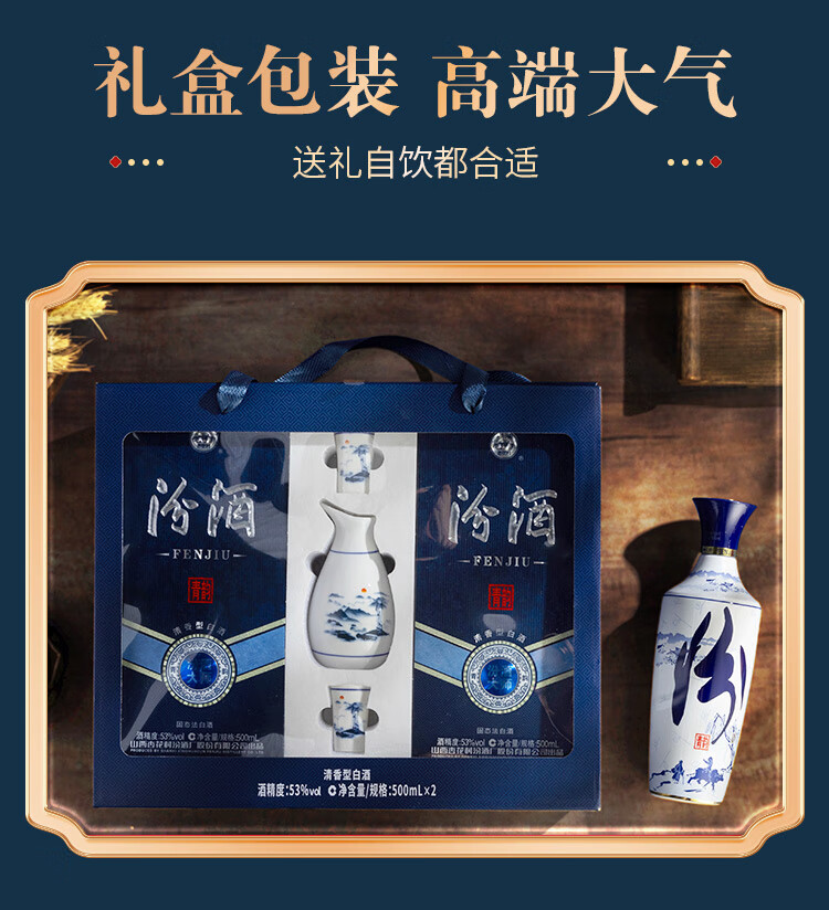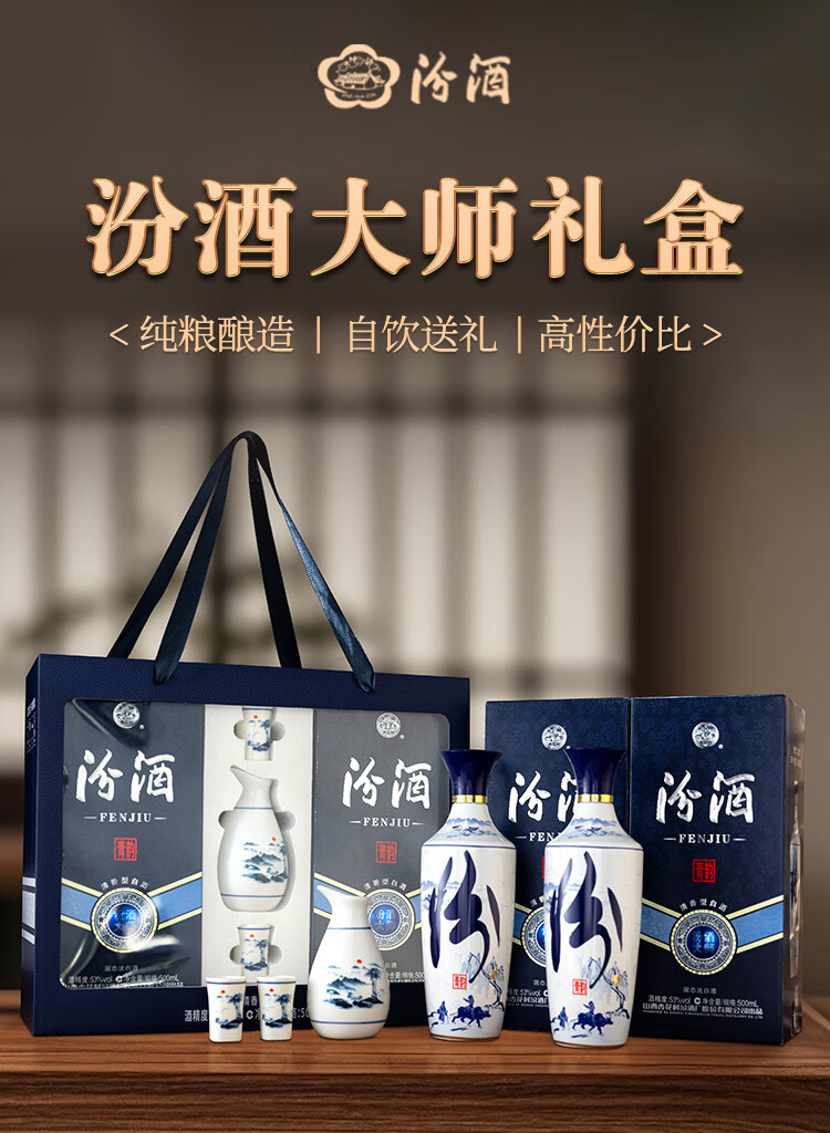 汾酒 青花大师节庆礼盒 清香白酒 53度 500mL*2瓶 礼盒装含酒具