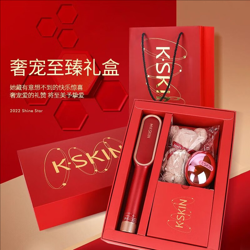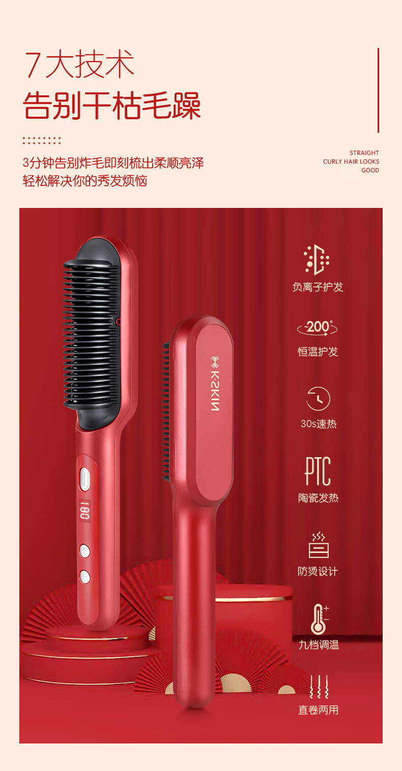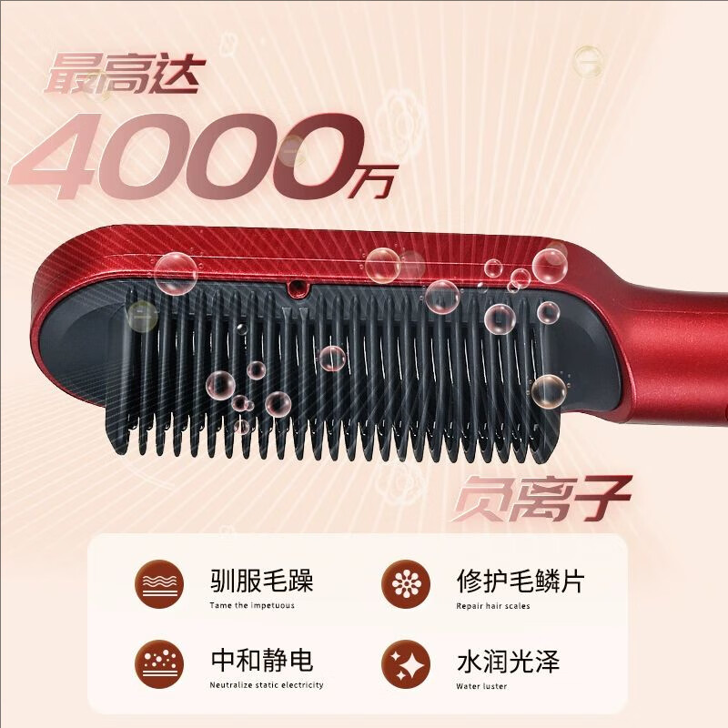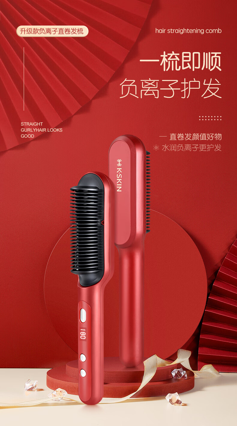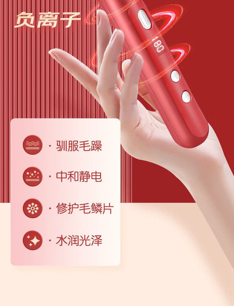 金稻直发梳负离子直卷电动卷发棒直板夹红色寓意好送闺蜜姐妹朋友妈妈新娘结婚订婚情人节实用礼物礼盒 红色-奢宠至臻礼盒【可拆电源线+4000万负离子】