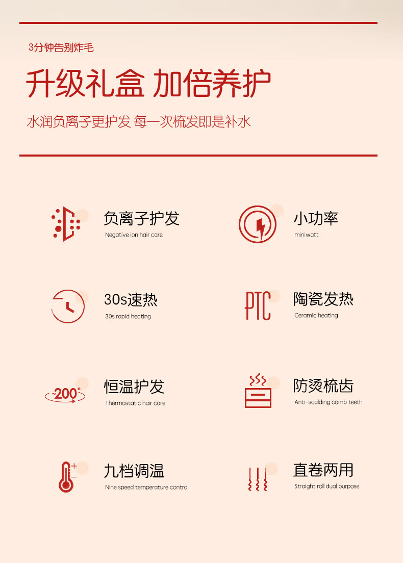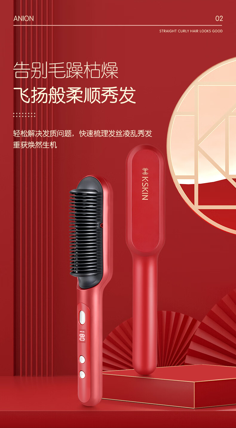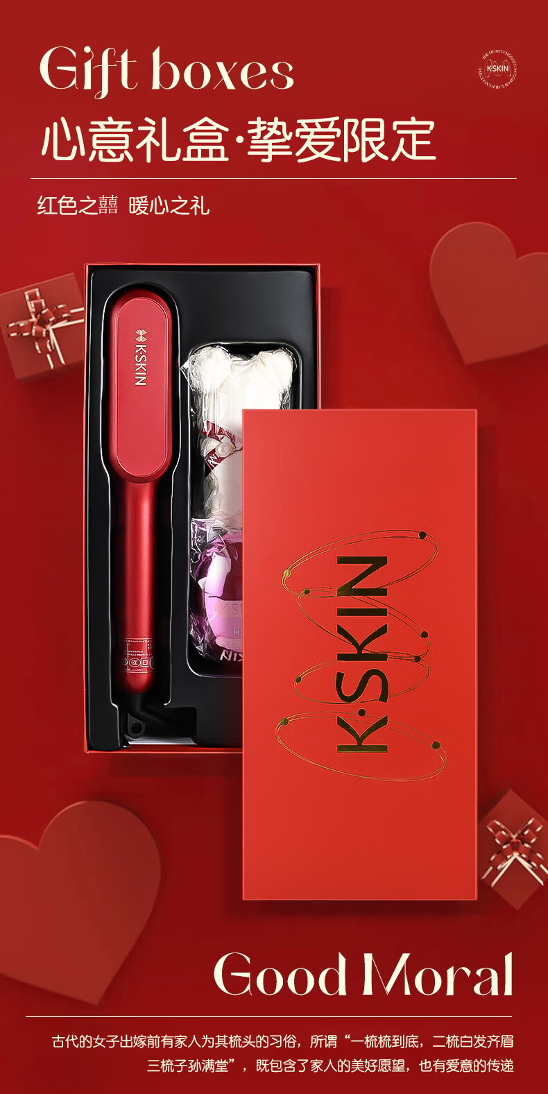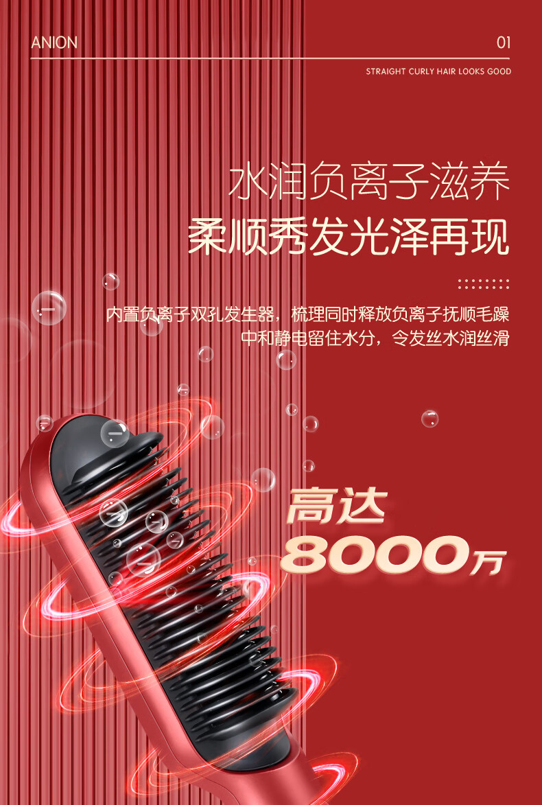 金稻直发梳负离子直卷电动卷发棒直板夹红色寓意好送闺蜜姐妹朋友妈妈新娘结婚订婚情人节实用礼物礼盒 红色-奢宠至臻礼盒【可拆电源线+4000万负离子】