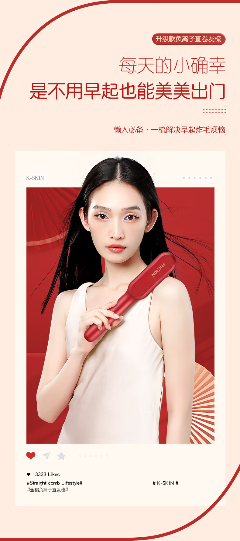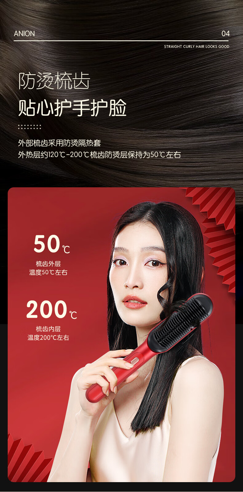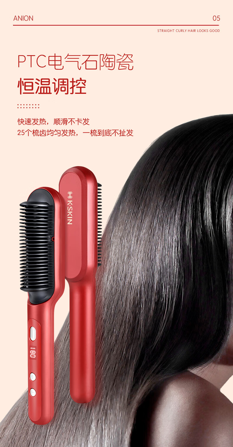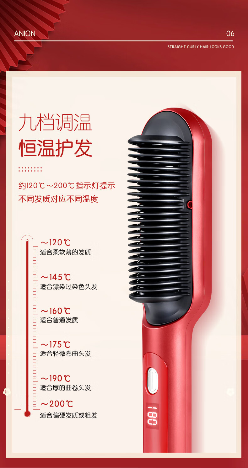金稻直发梳负离子直卷电动卷发棒直板夹红色寓意好送闺蜜姐妹朋友妈妈新娘结婚订婚情人节实用礼物礼盒 红色-奢宠至臻礼盒【可拆电源线+4000万负离子】