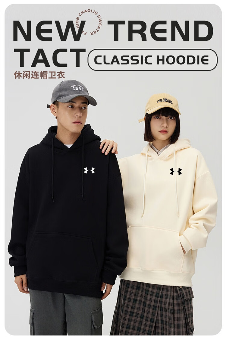 adidas情侣加绒加厚宽松连帽长袖套头卫衣男女秋冬阿迪达斯轻运动 岩层深土地棕/黑色 L