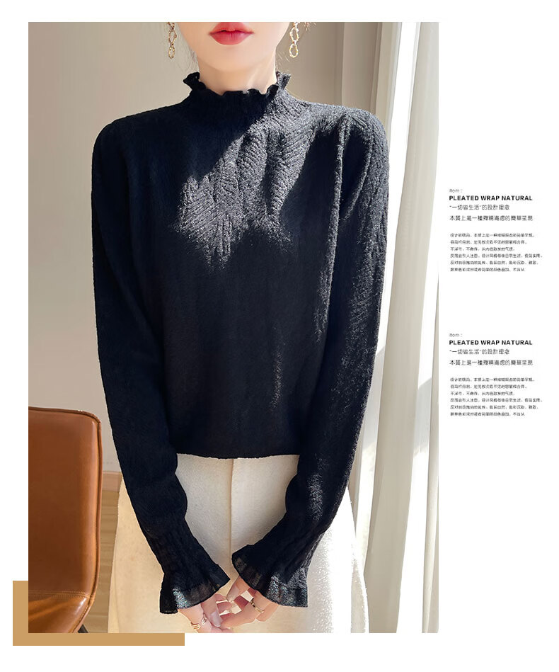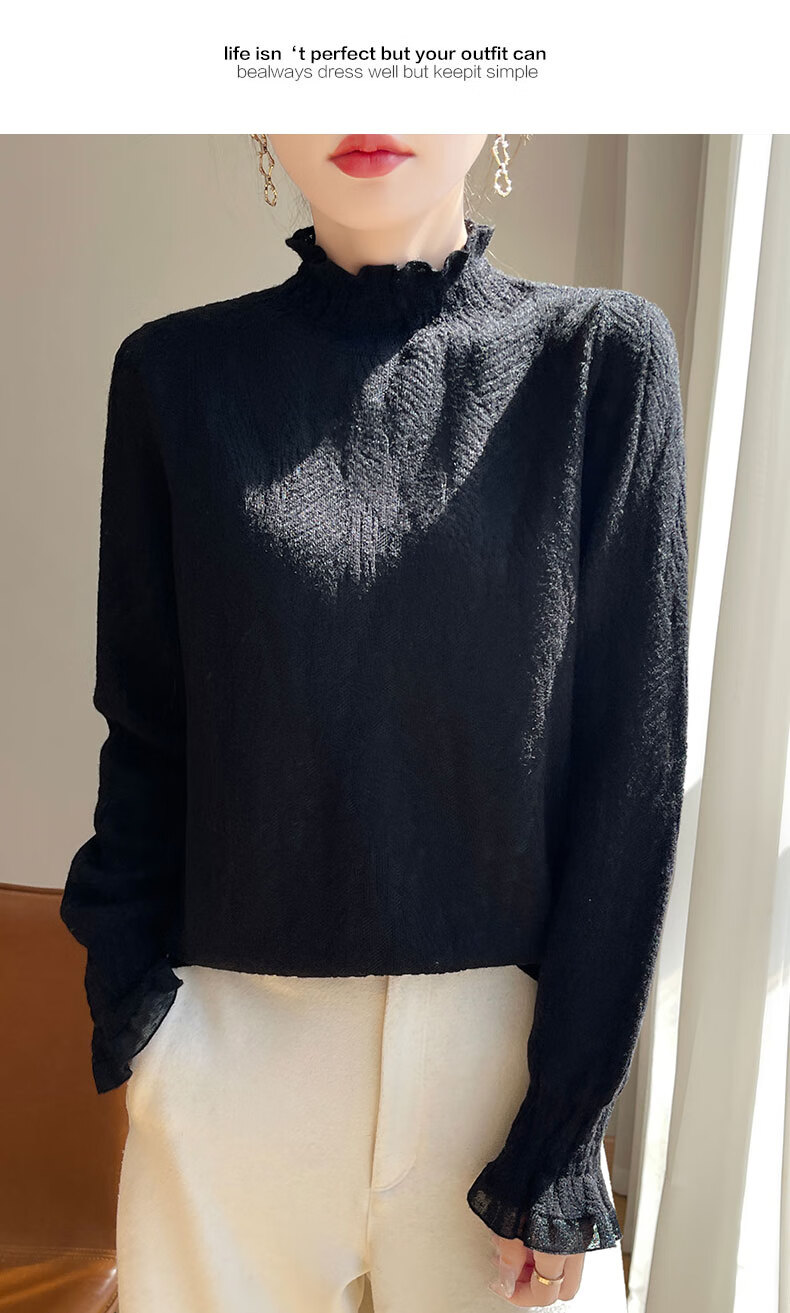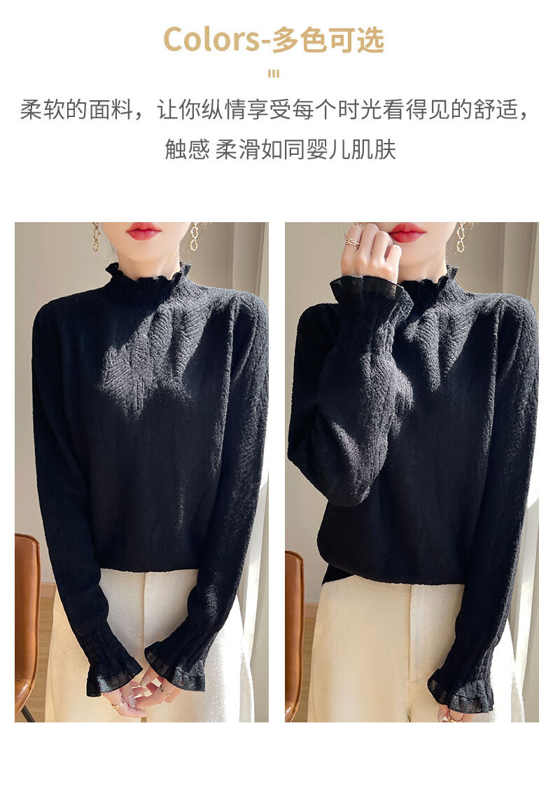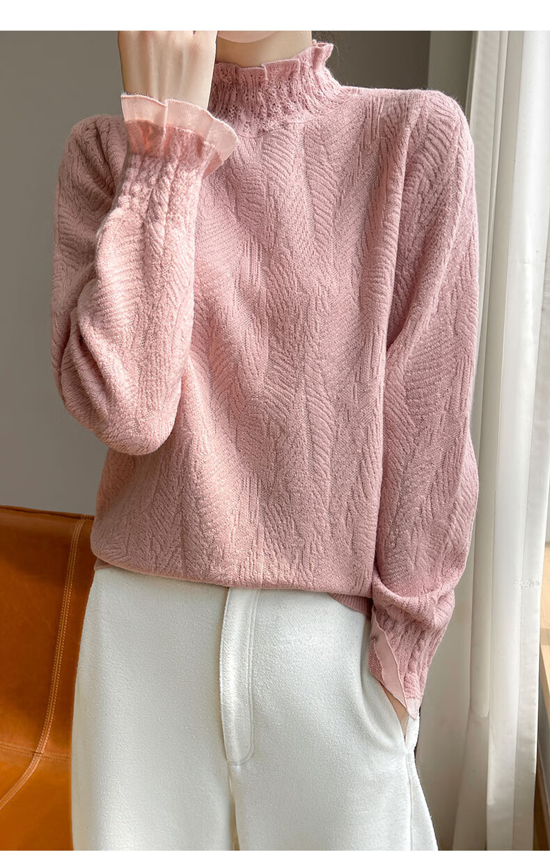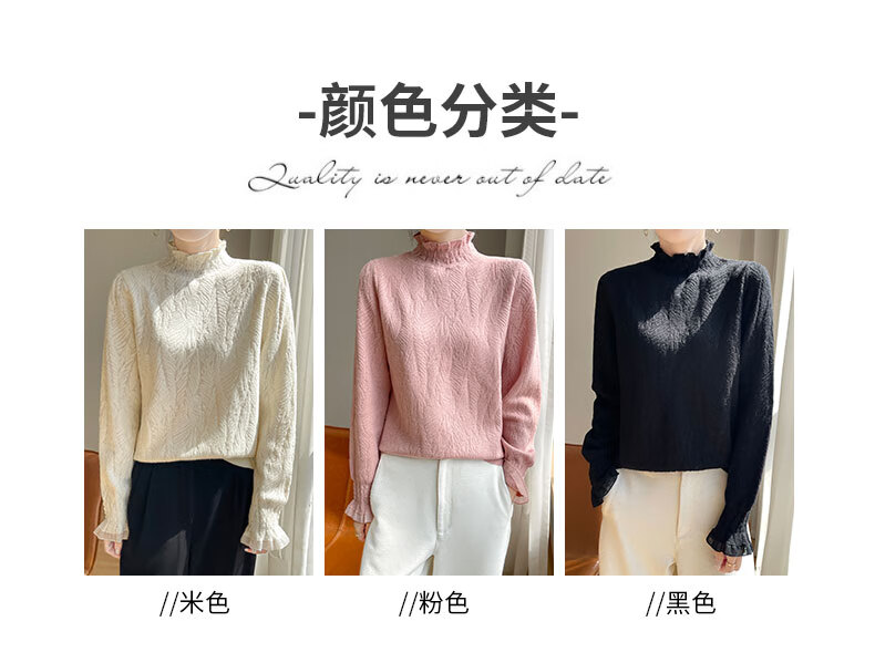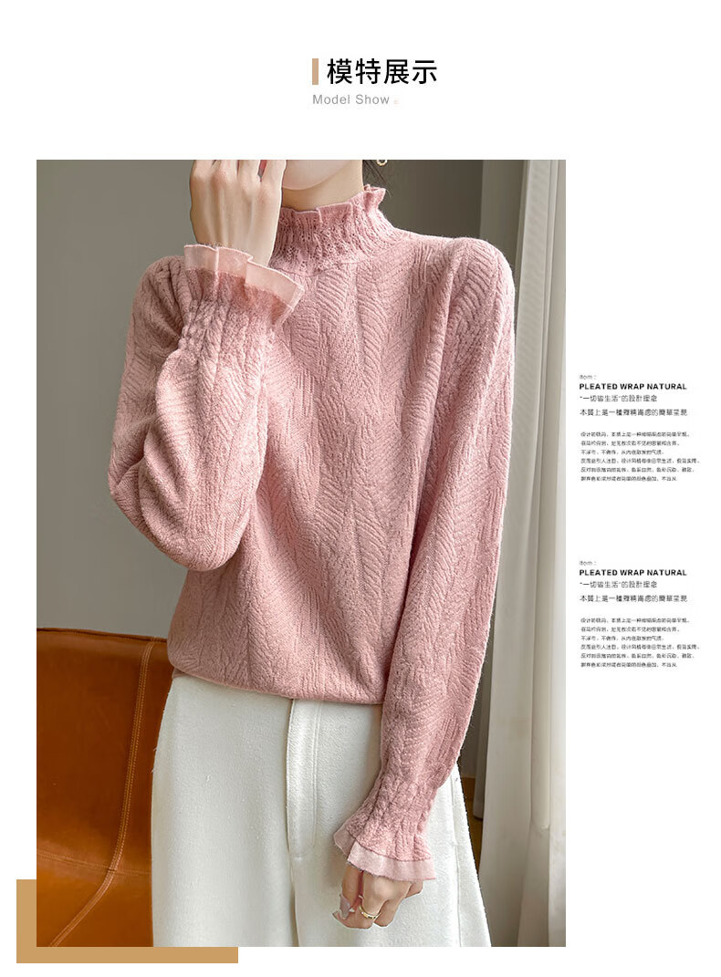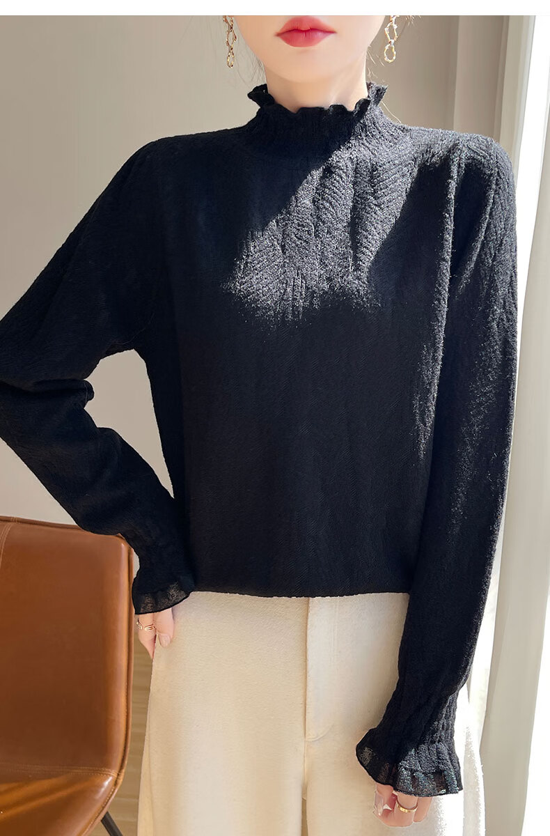 香影芬新款针织衫女木耳边蕾丝毛衣女秋冬洋气半高领内搭打底衫女上衣 米色 2XL (建议125-135斤)