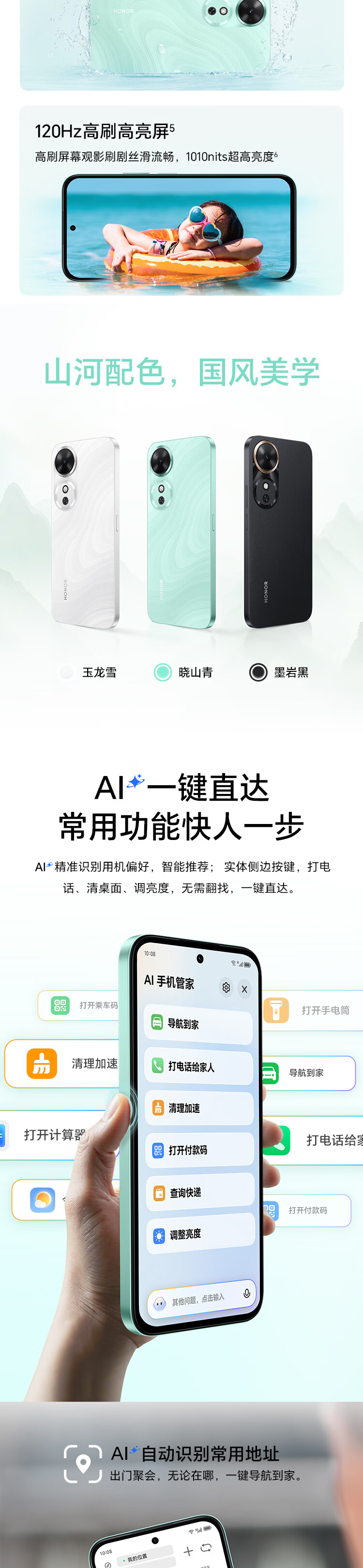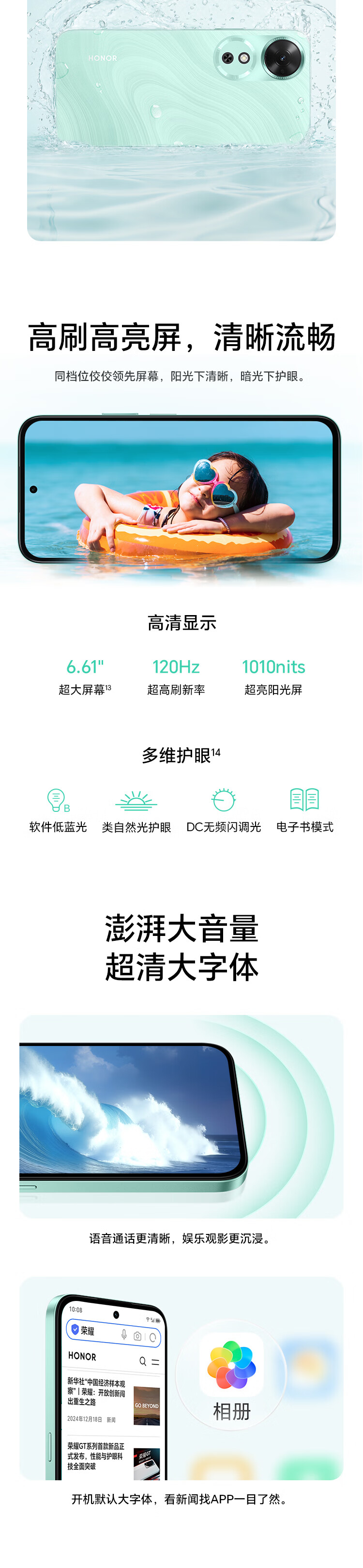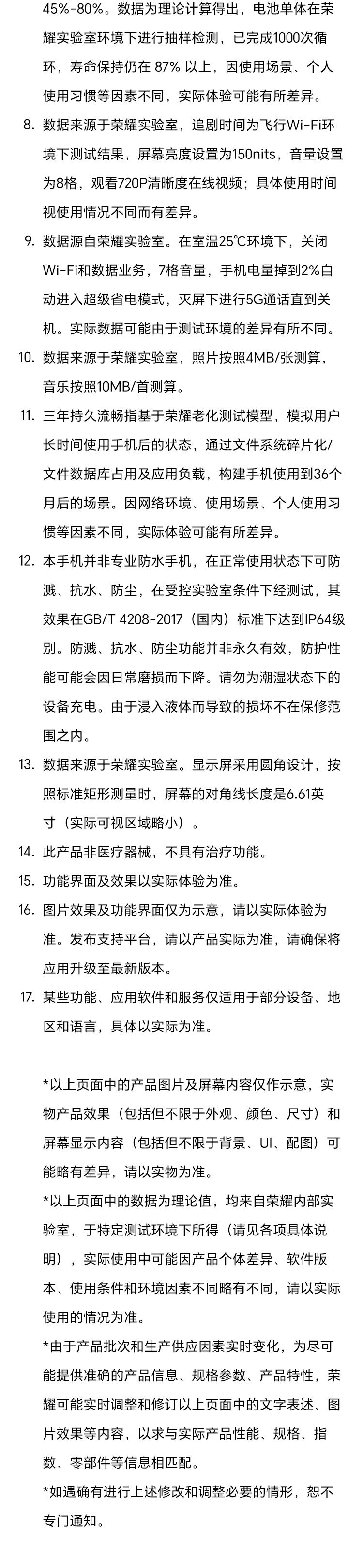 荣耀(HONOR)畅玩60 6000mAh超能大电池 AI一键直达 整机抗摔防水 8GB+256GB 墨岩黑 老人手机