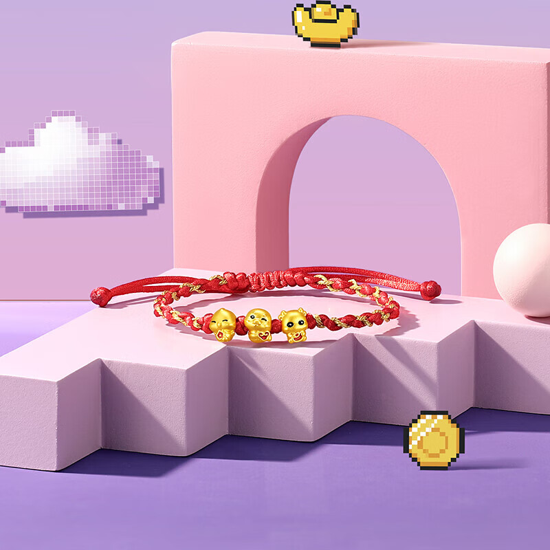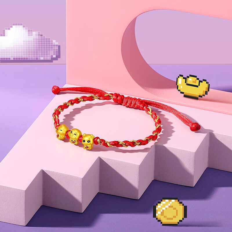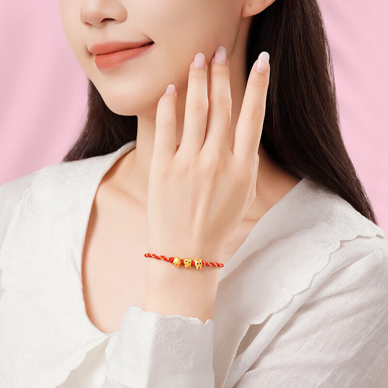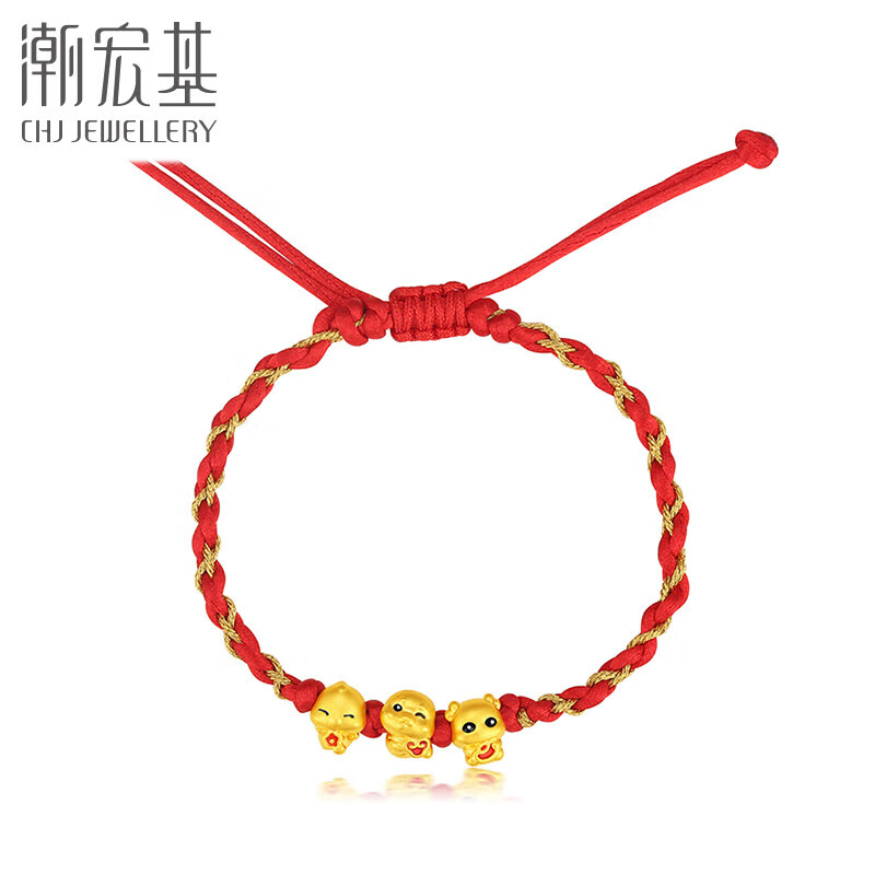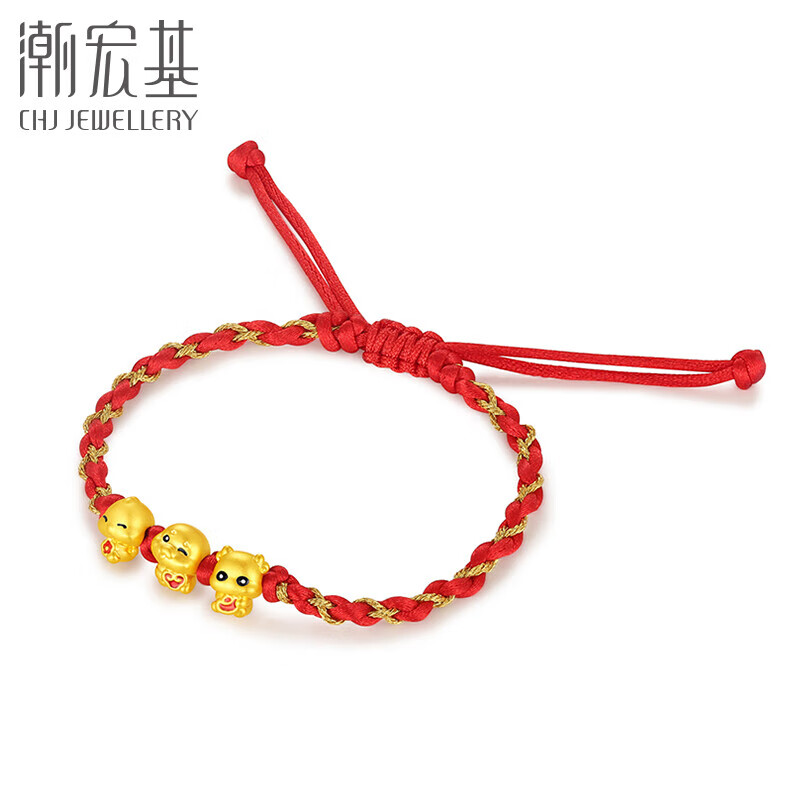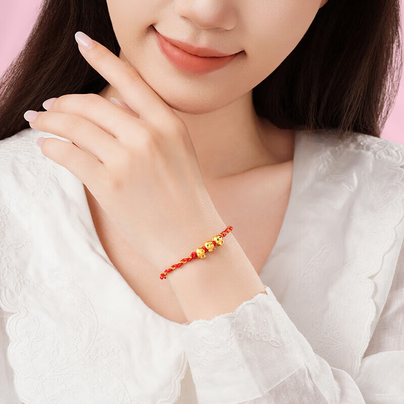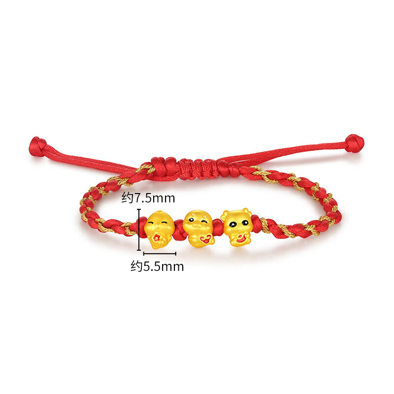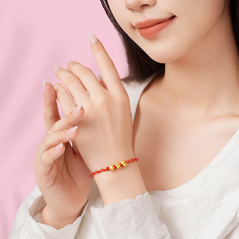 潮宏基 三合牛蛇鸡生肖蛇黄金手链女足金转运珠红绳蛇年本命年礼物C 可调节 绳长约14-22cm