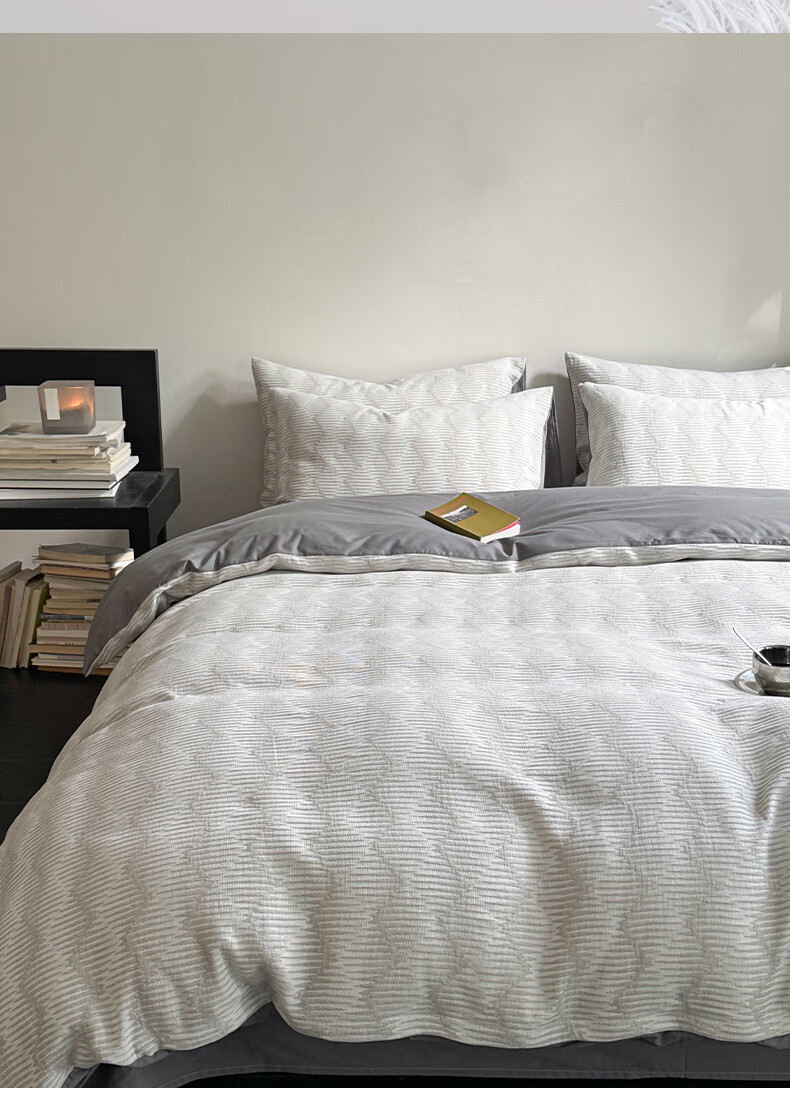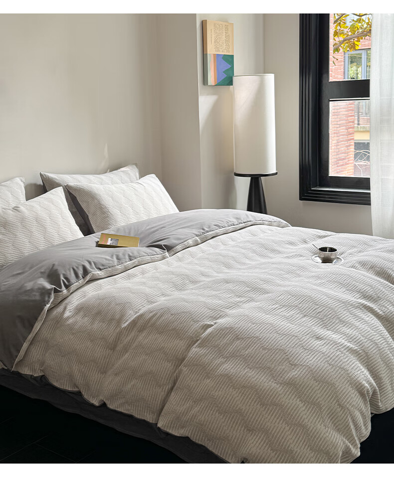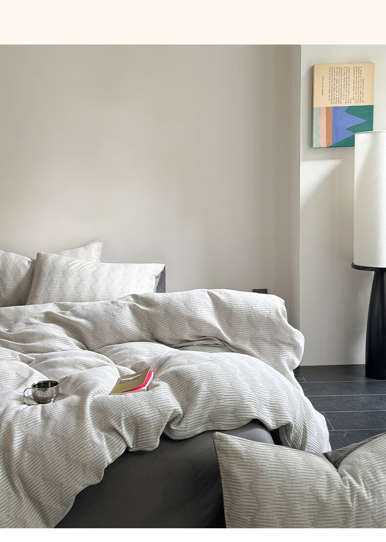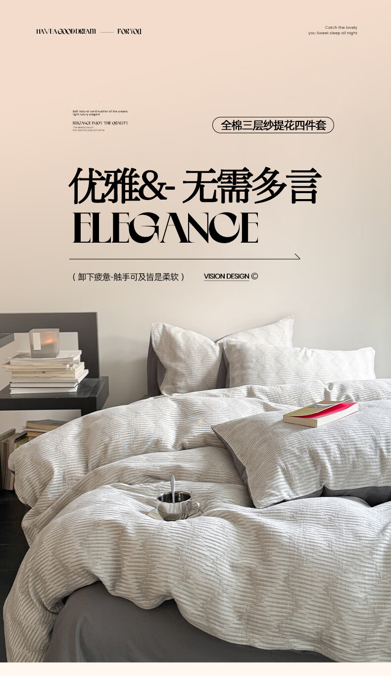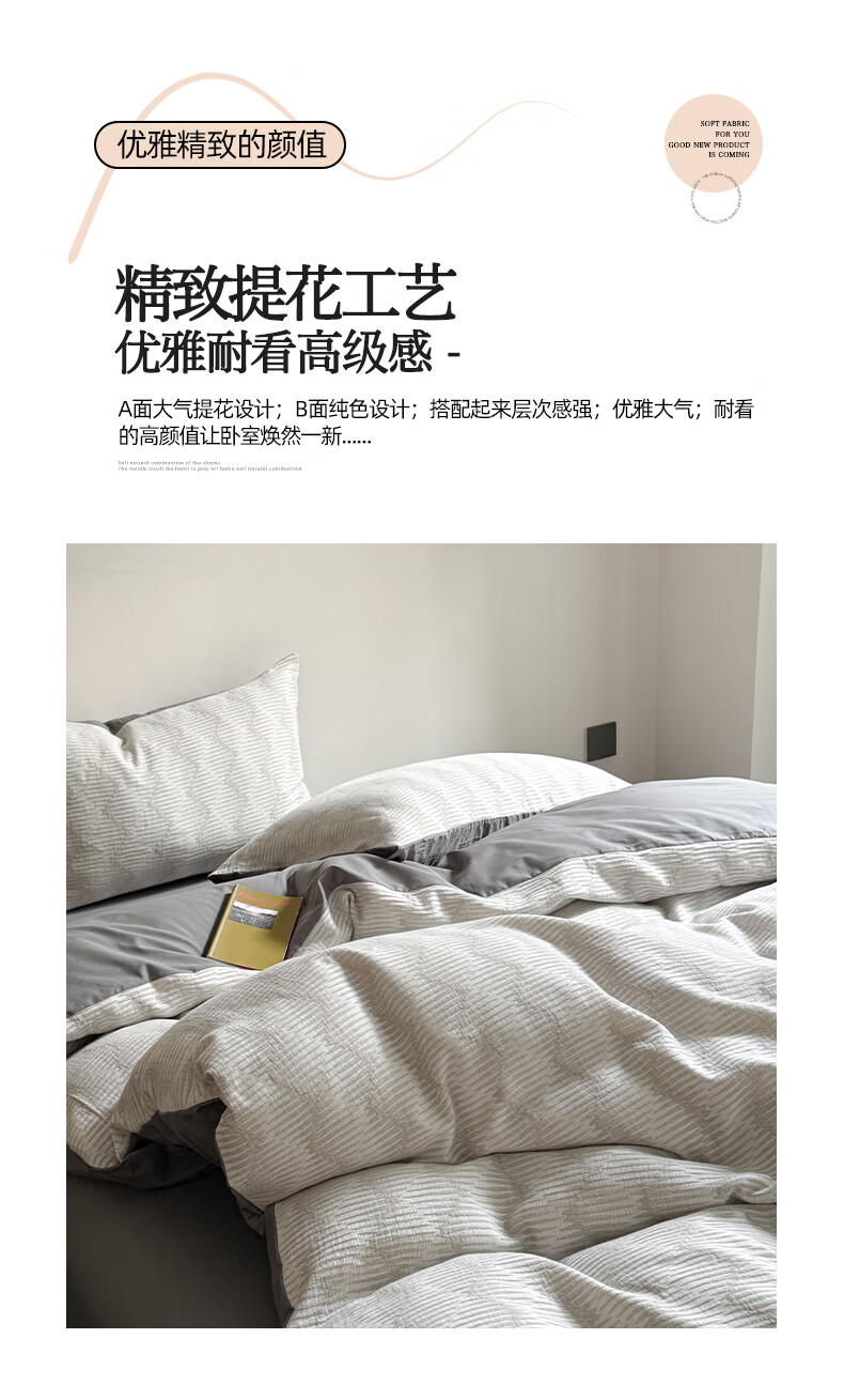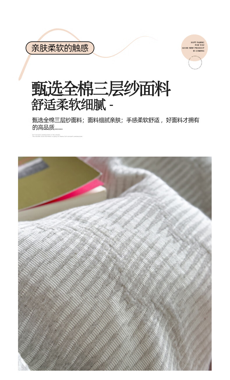猫人(MiiOW)全棉三层纱提花床上四件套轻奢高级感纯棉床单被套三件套床上用品 奥帝莉亚-咖【全棉三层纱】 0.9m 床单款 三件套-150x200cm被套