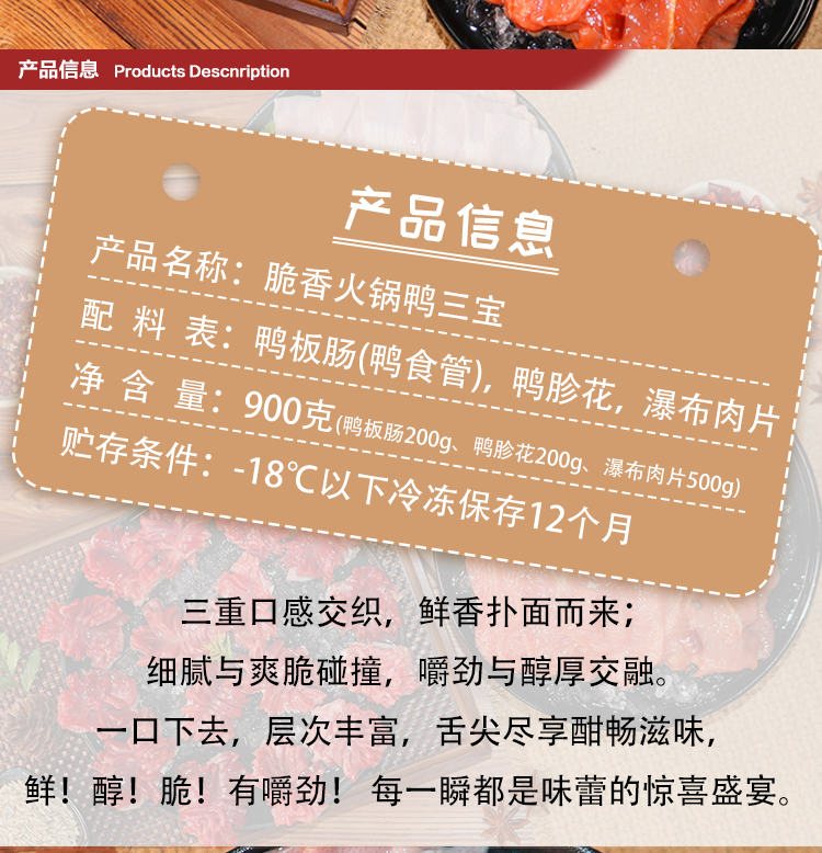 CP正大食品脆香火锅鸭三宝900g鸭食管鸭胗花瀑布肉片
