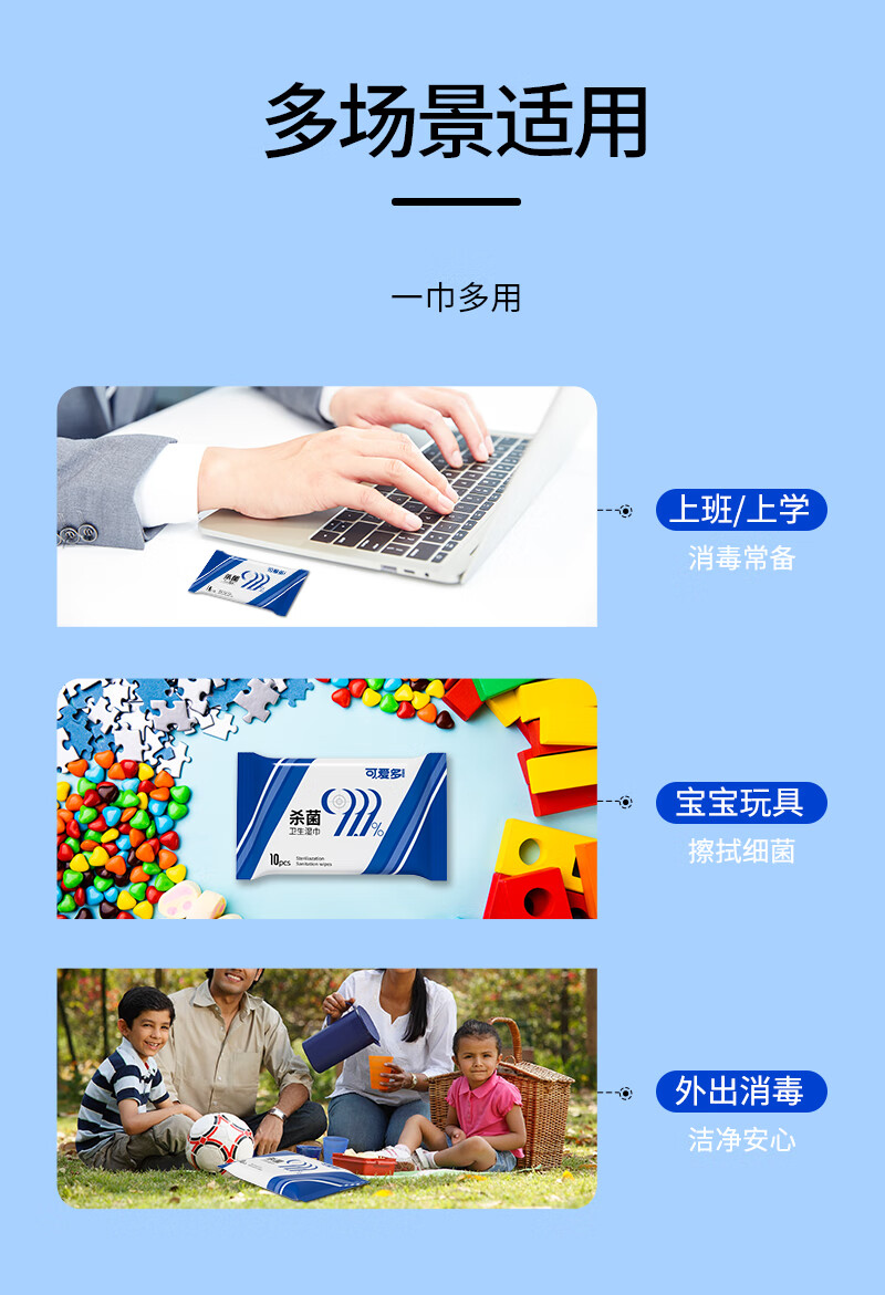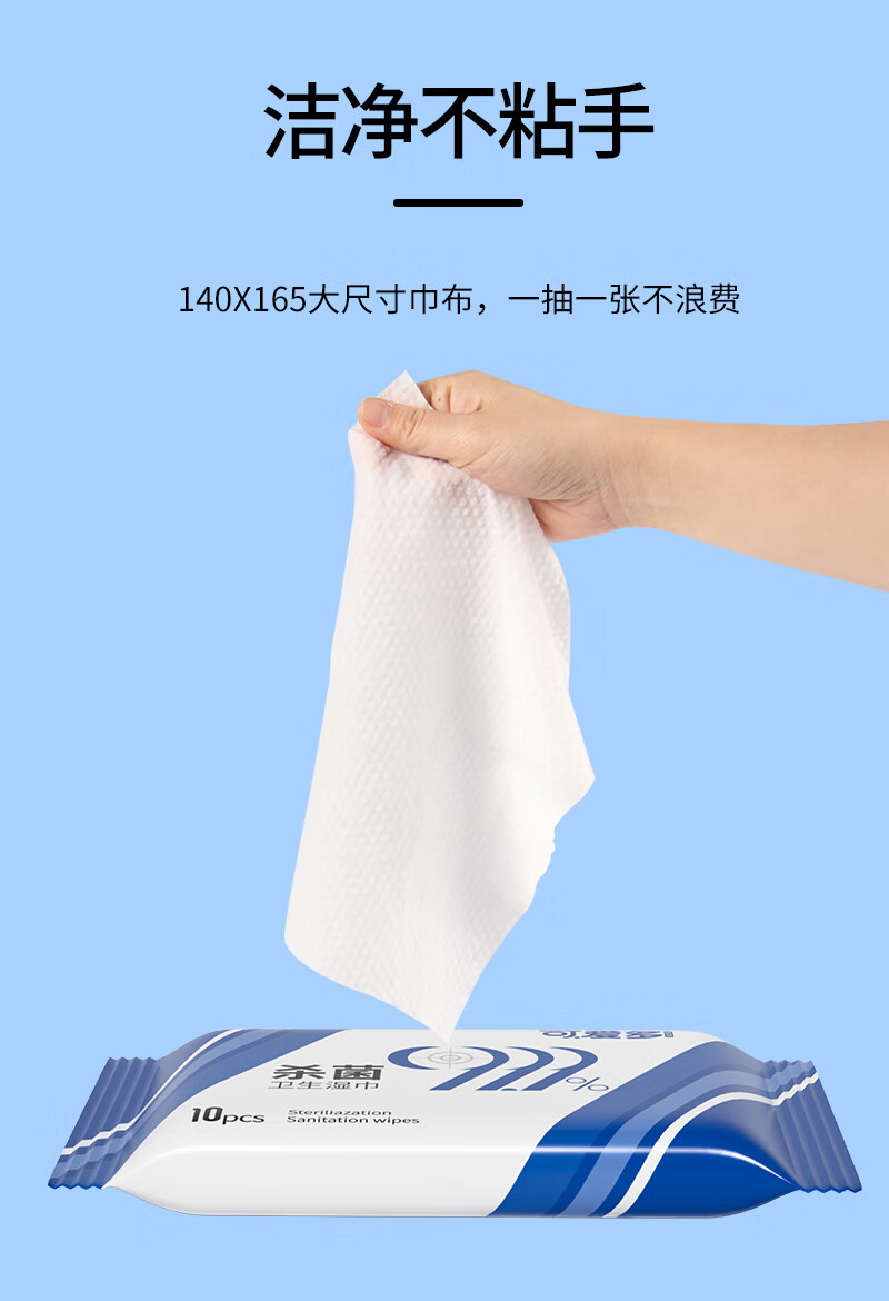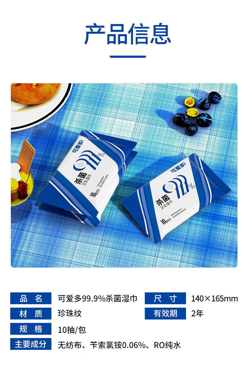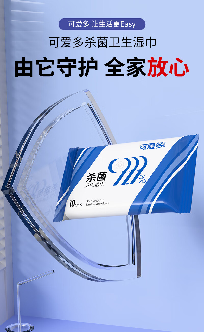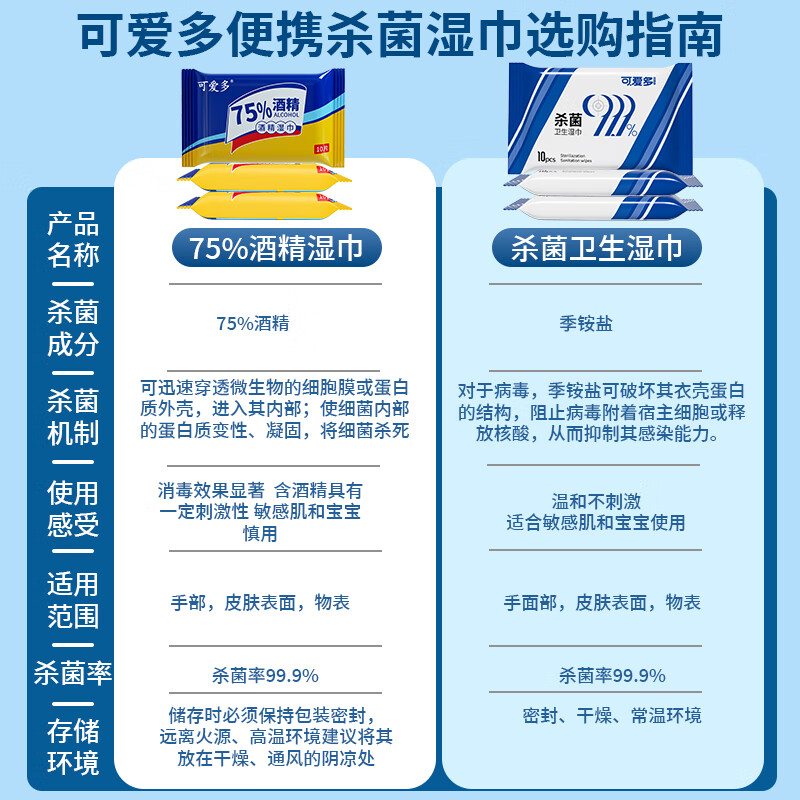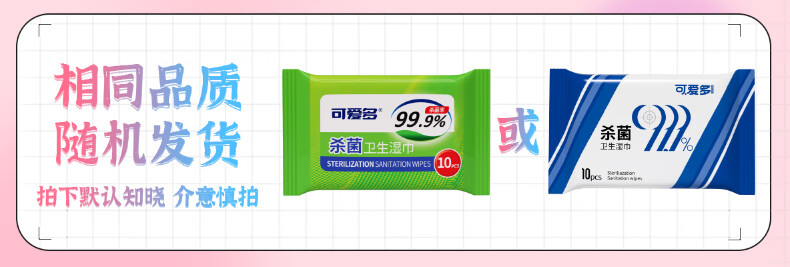 可爱多消毒湿巾10片*10包无酒精99.9%杀菌湿纸巾小包儿童上学专用