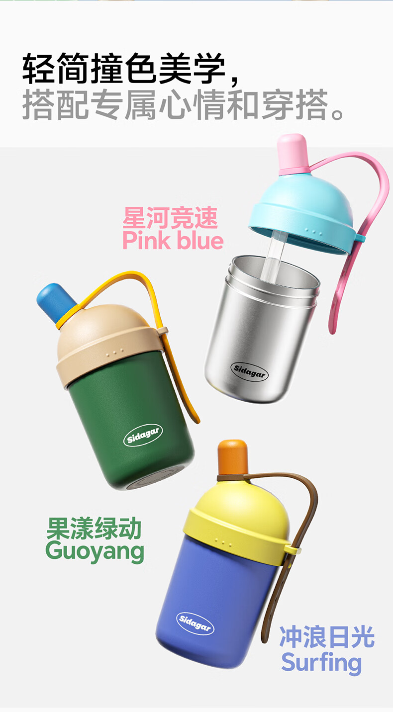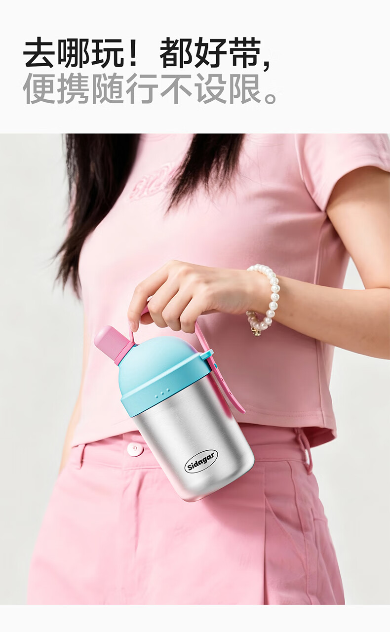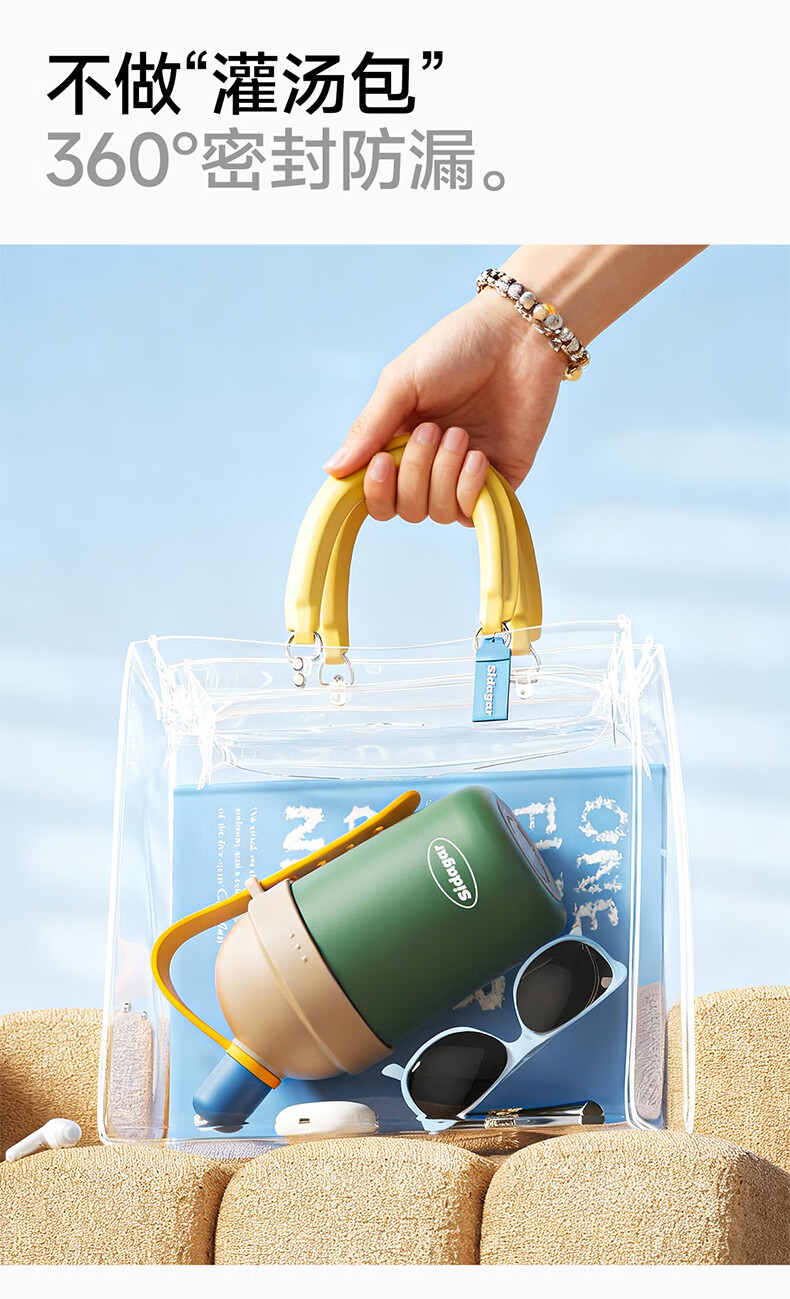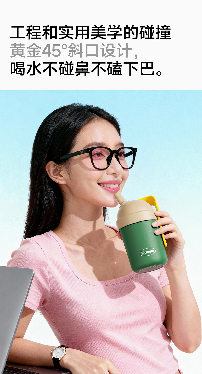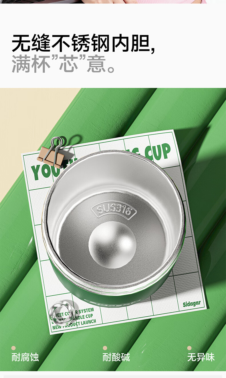 世大家保温杯女款水杯316食品级高颜值2025新款外出携带学生咖啡杯子 果漾绿动【316无缝内胆+可调节提手+斜口设计】 470ML