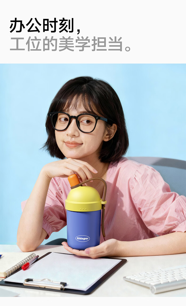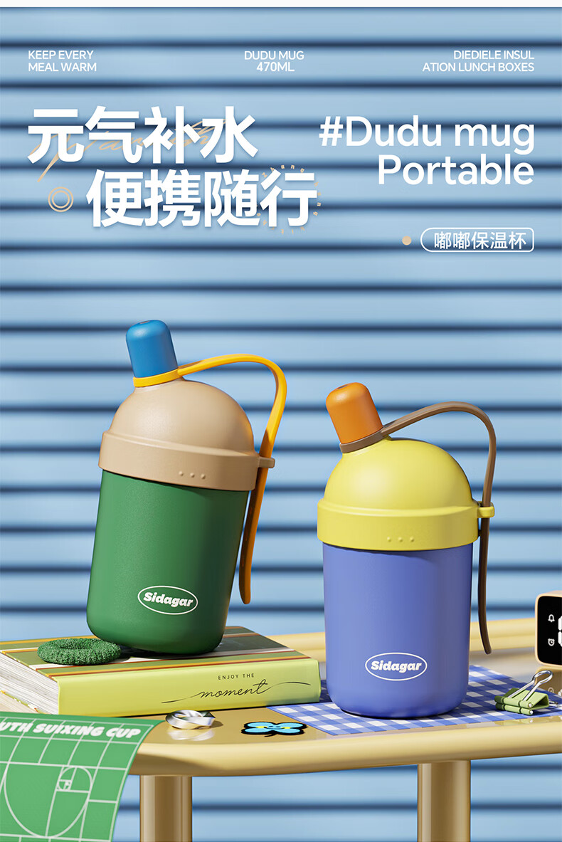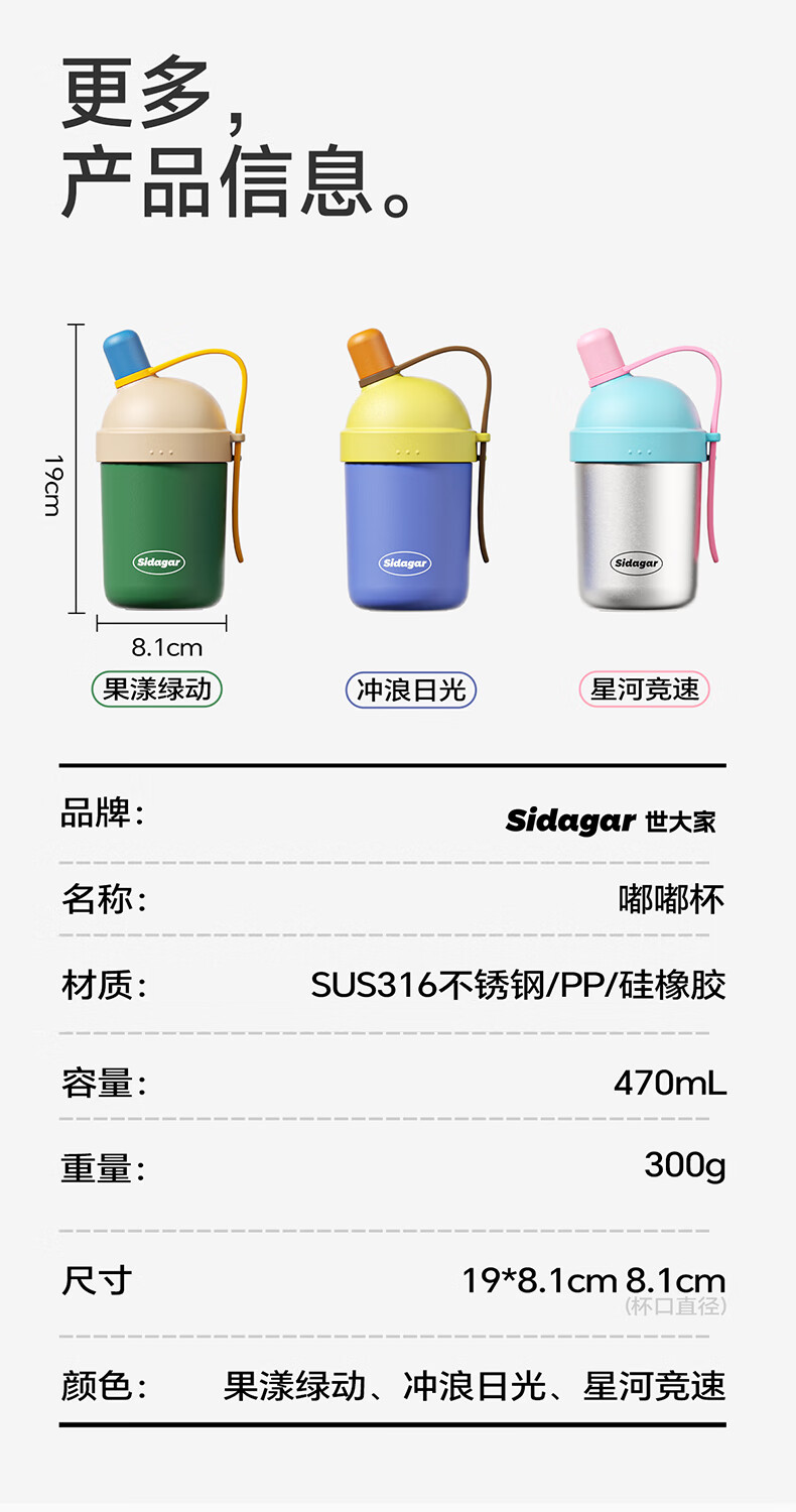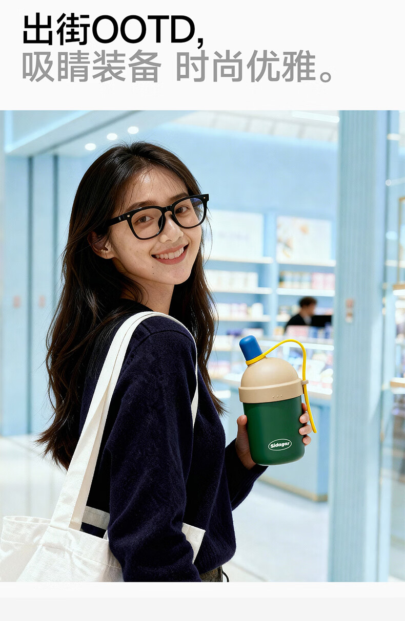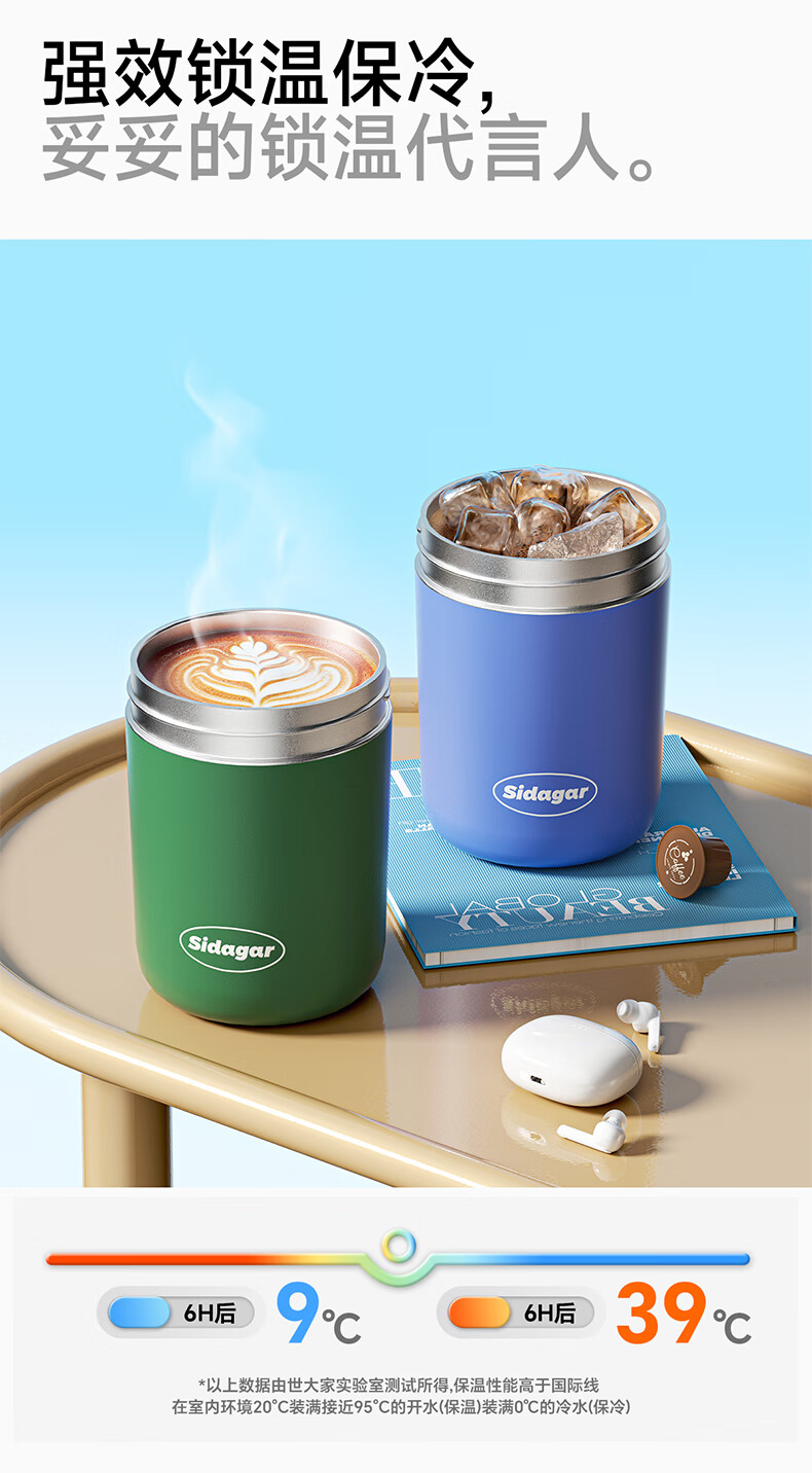 世大家保温杯女款水杯316食品级高颜值2025新款外出携带学生咖啡杯子 果漾绿动【316无缝内胆+可调节提手+斜口设计】 470ML