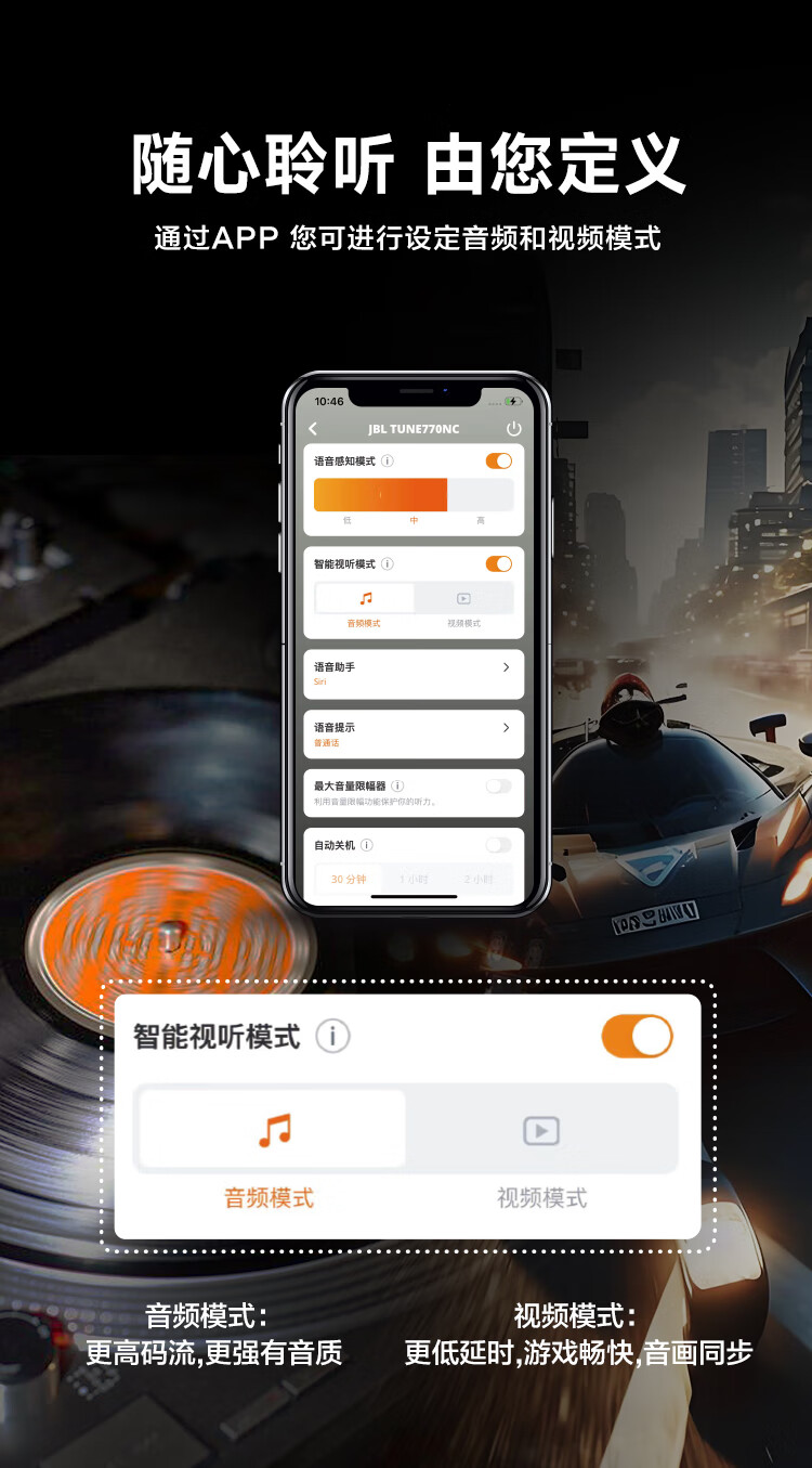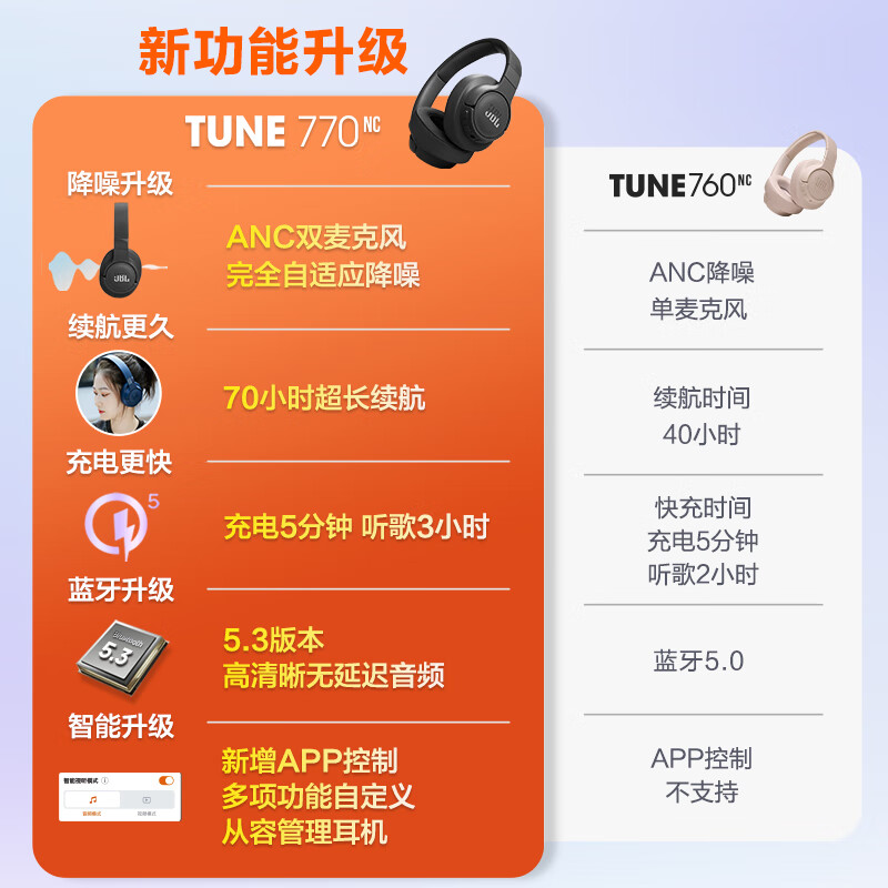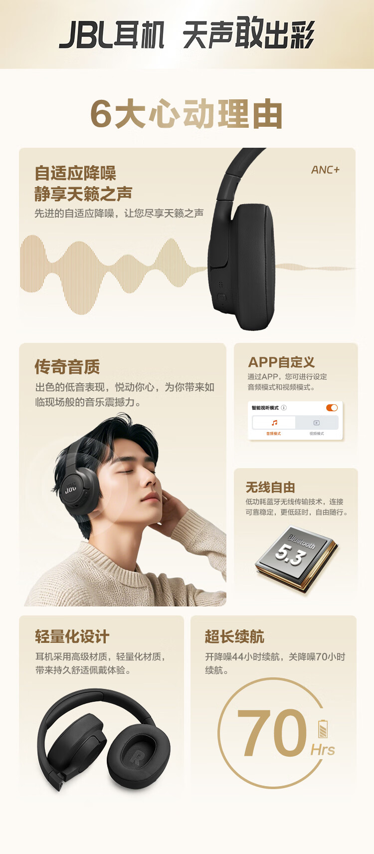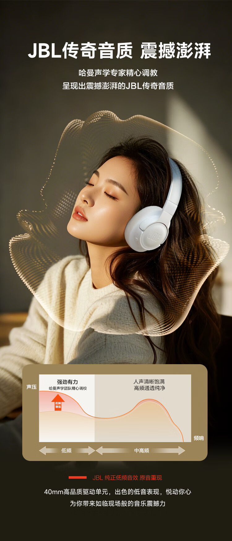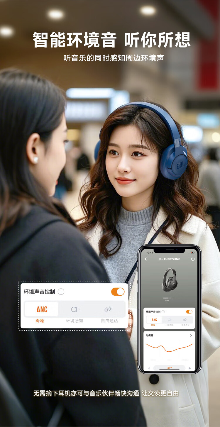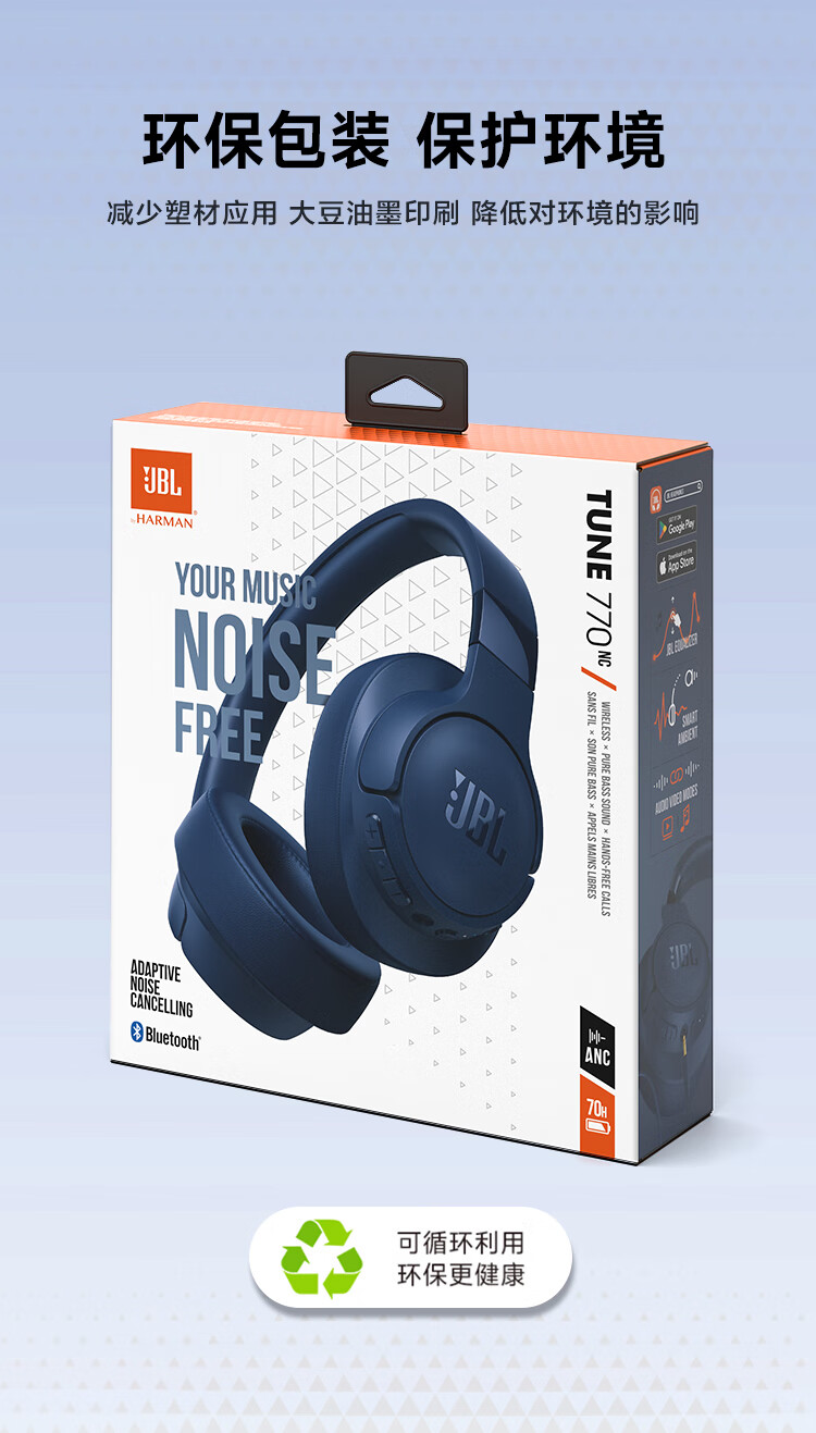 JBLT770NC头戴式主动降噪蓝牙耳机 手机电脑笔记本耳机游戏无线有线耳机 黑色