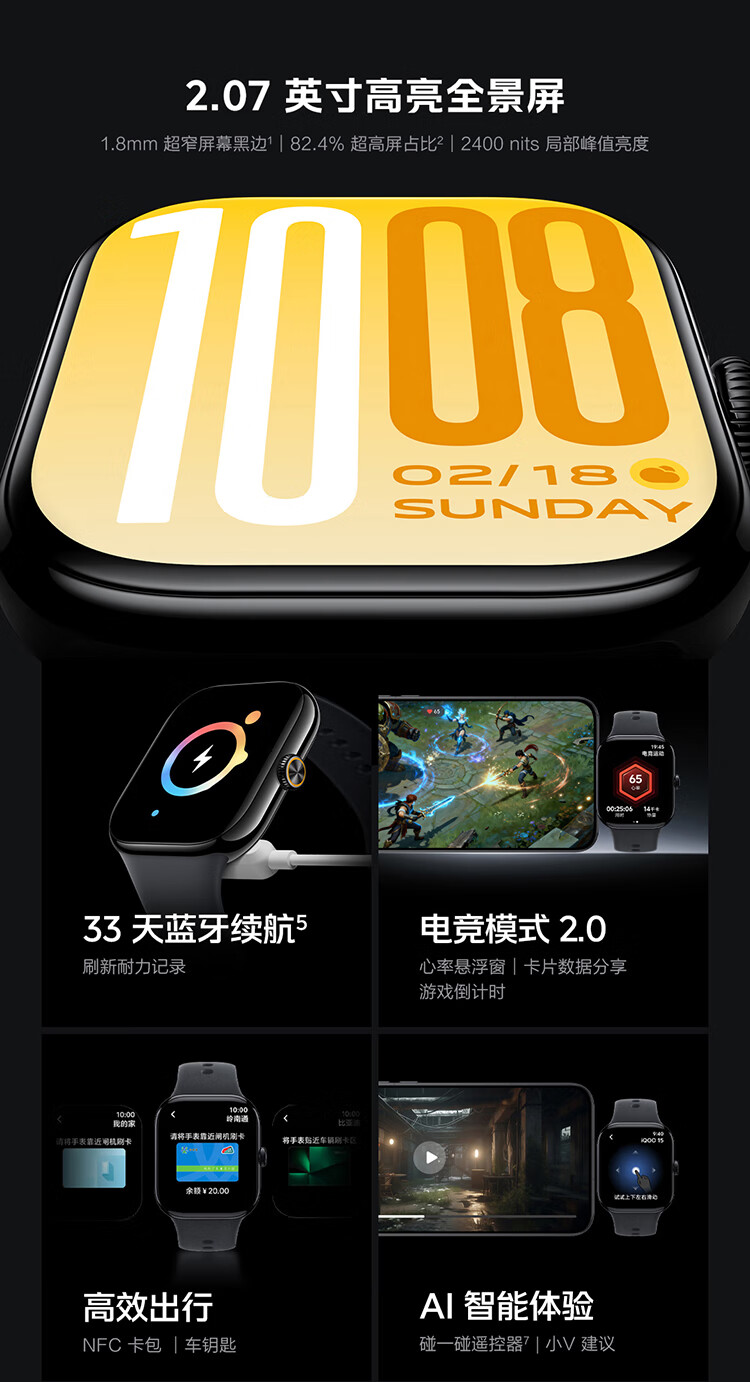 vivoIQOO WATCH GT 2 智能手表 幻影黑 蓝牙软胶