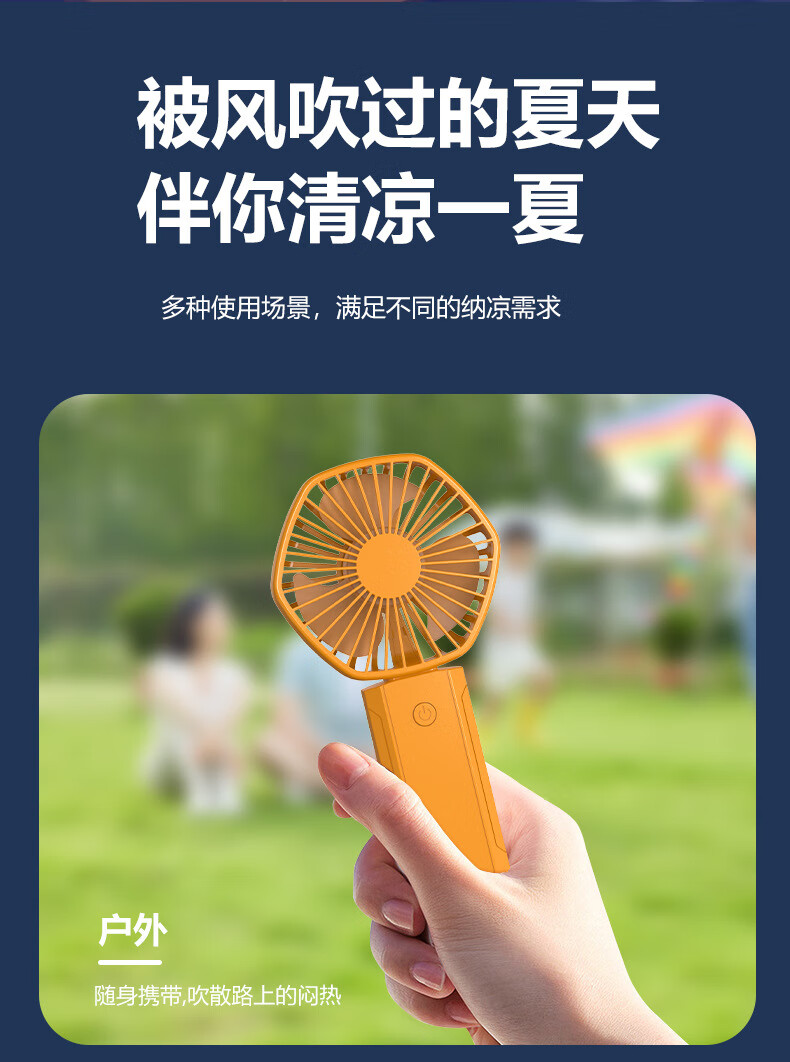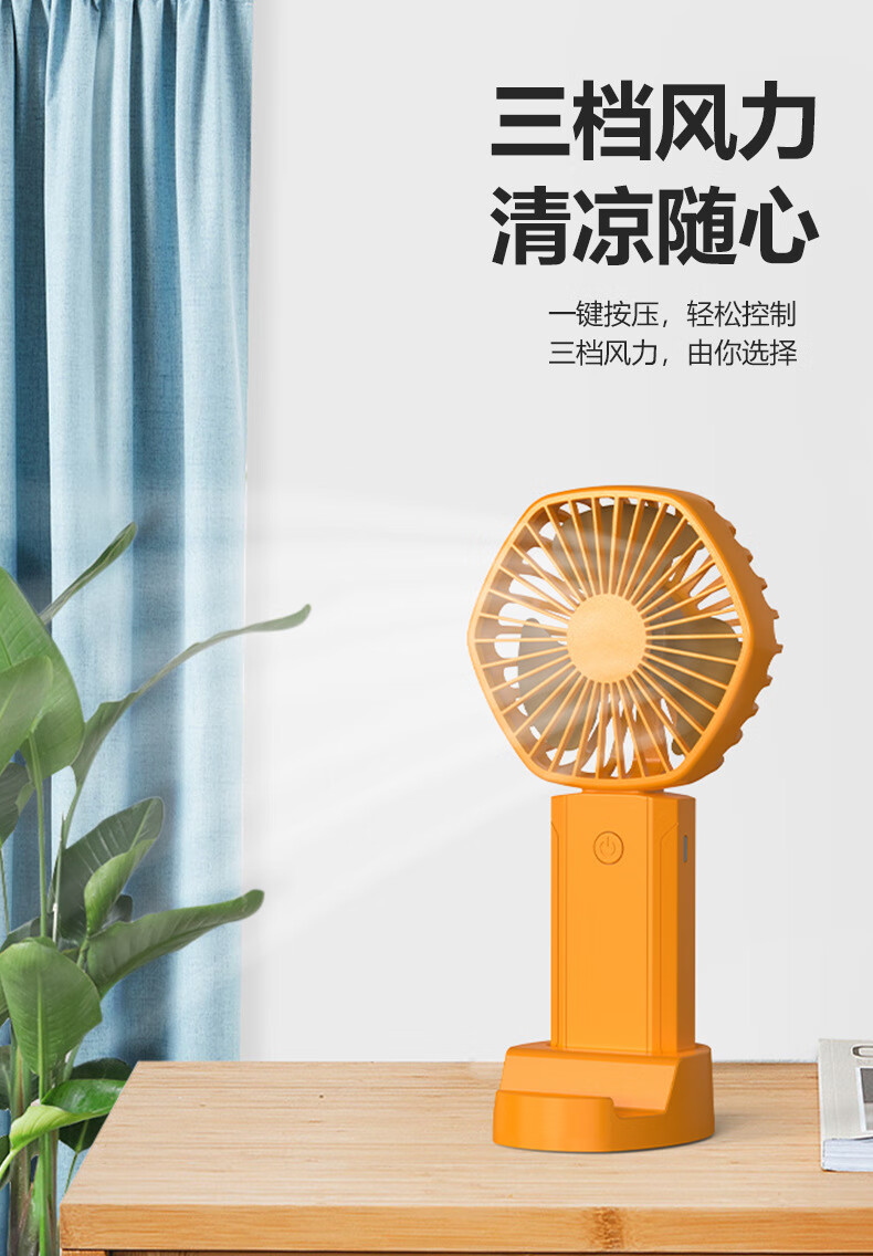 【精选直发】usb迷你手持小风扇便携式桌面大容量小风扇可充电风 Y09橙色