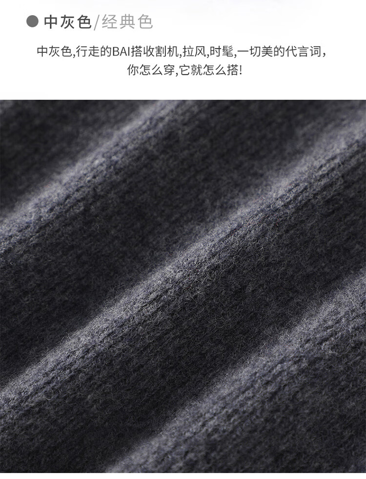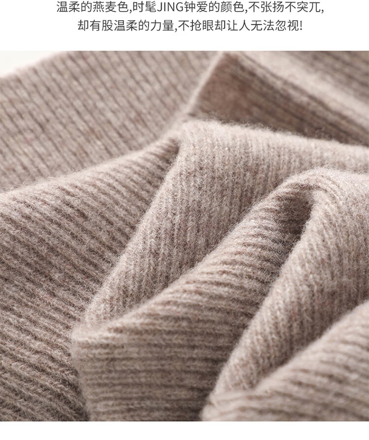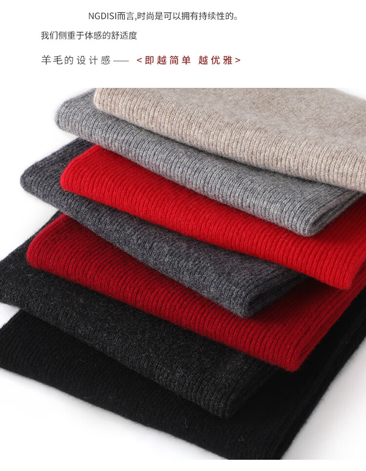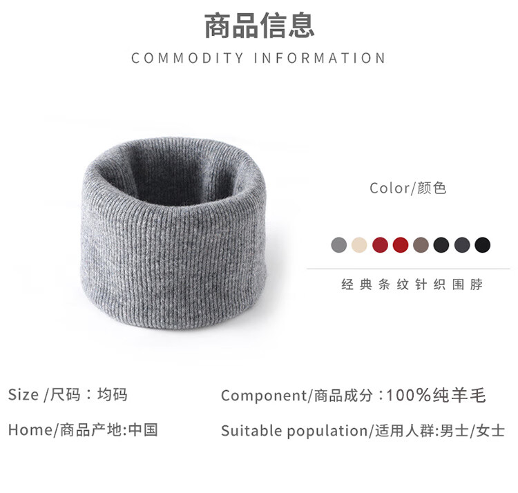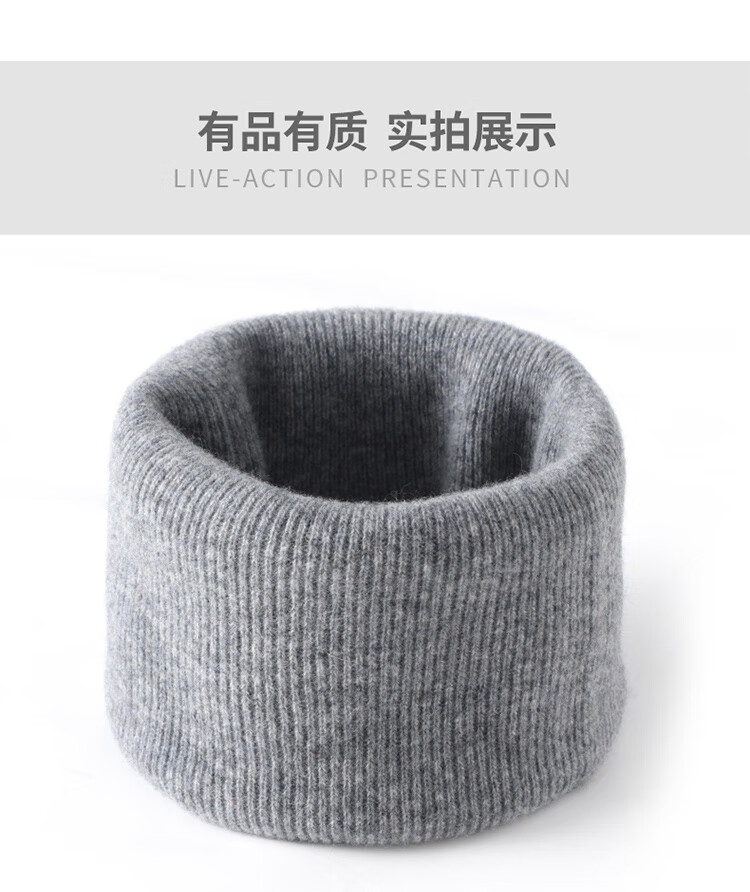 JEEP SPIRIT吉普轻奢纯羊绒围脖男女冬款鄂尔多斯针织毛脖套 浅灰色