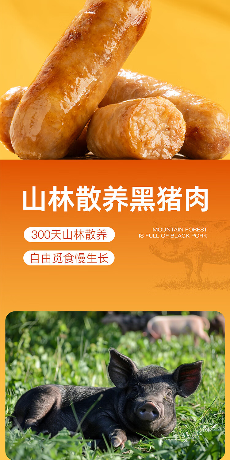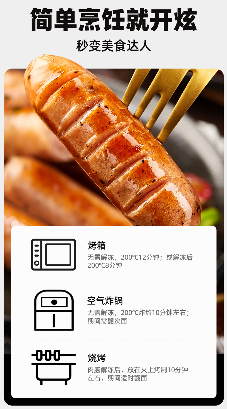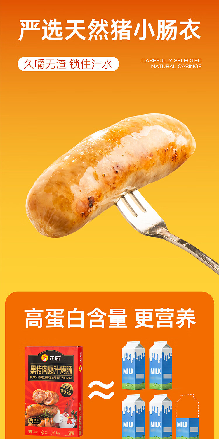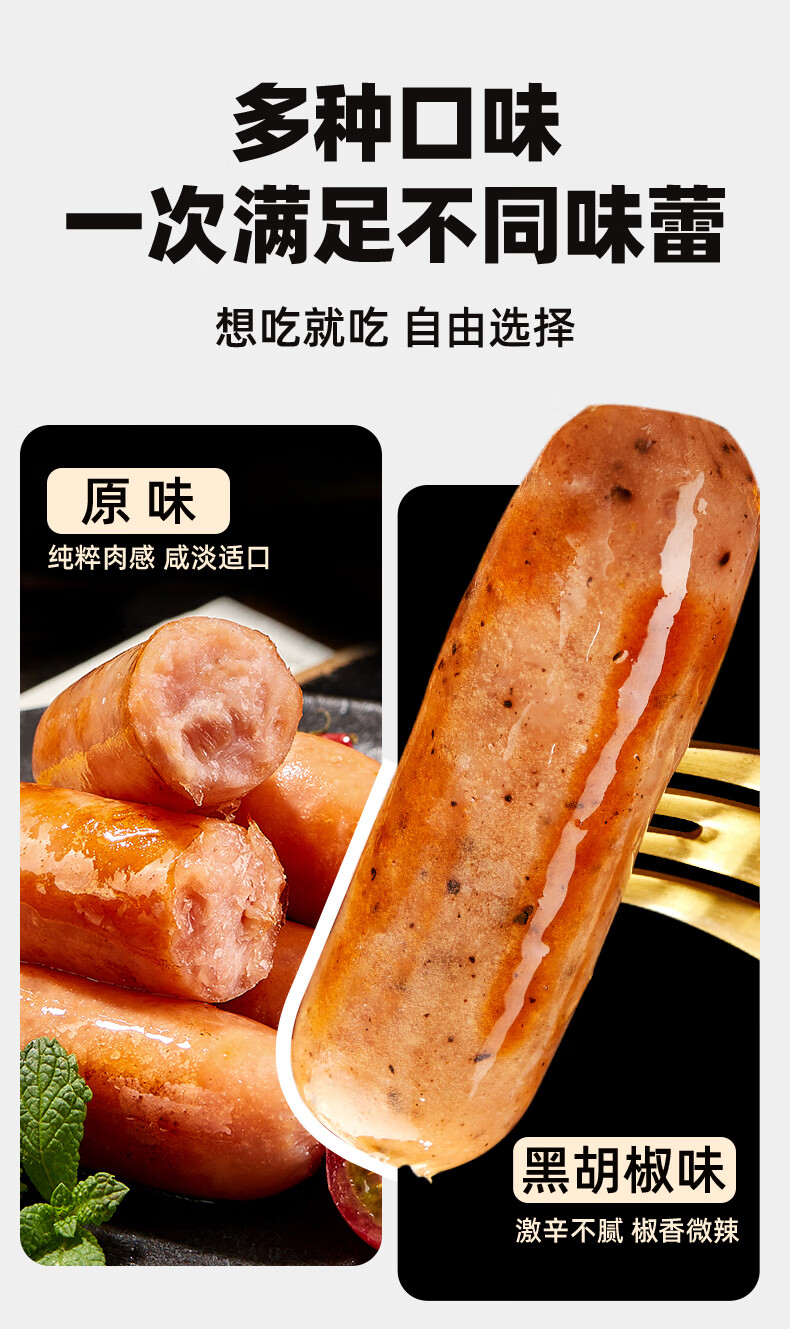 正新黑猪肉爆汁烤肠火山石烤肠香肠热狗肠空气炸锅小吃空气炸锅食材 脆皮烤肠原味2斤+黑椒2斤(40根)