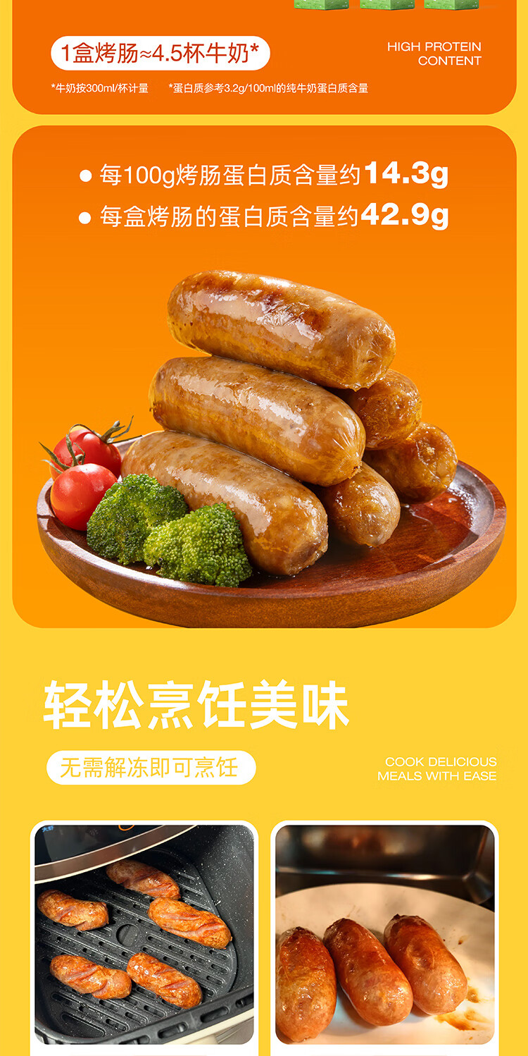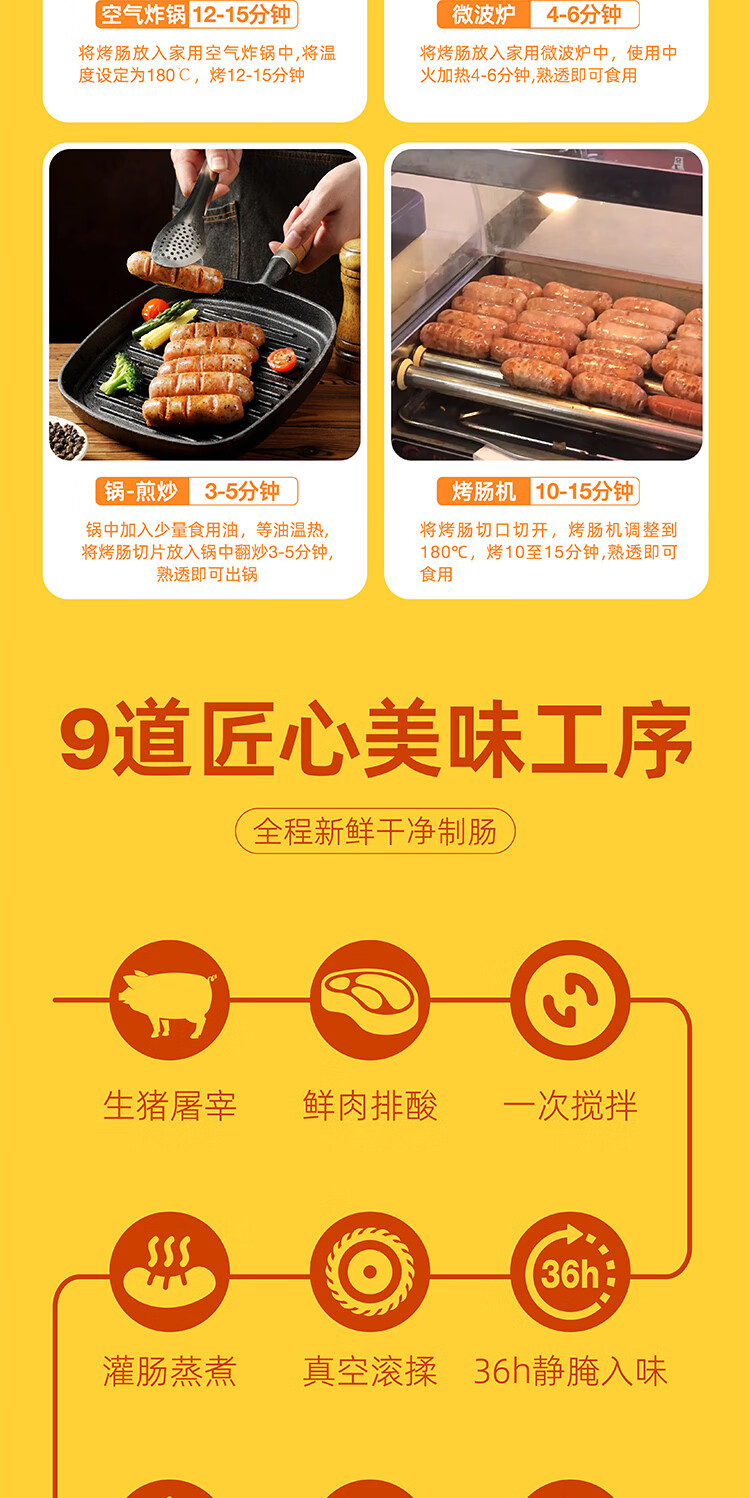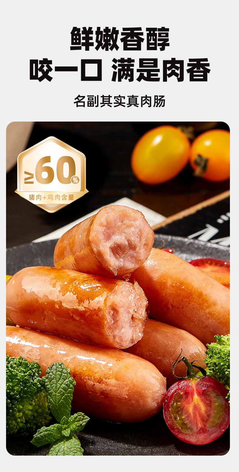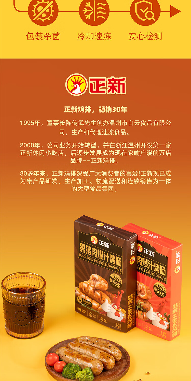 正新黑猪肉爆汁烤肠火山石烤肠香肠热狗肠空气炸锅小吃空气炸锅食材 脆皮烤肠原味2斤+黑椒2斤(40根)
