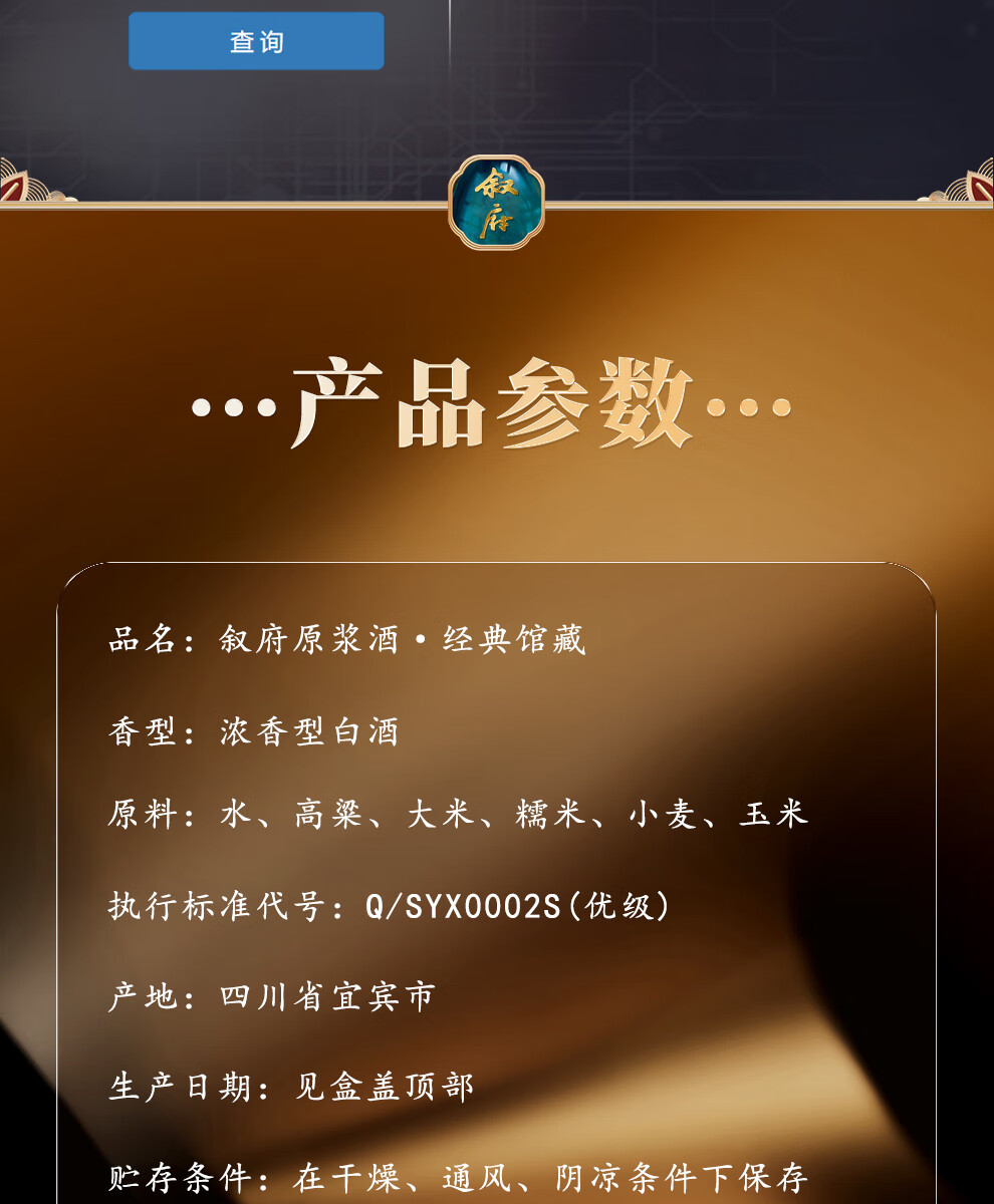 叙府原浆酒经典馆藏 著名白酒专家勾调 浓香型白酒 纯粮食酒 口粮酒 52度 500mL 6瓶 原箱发货
