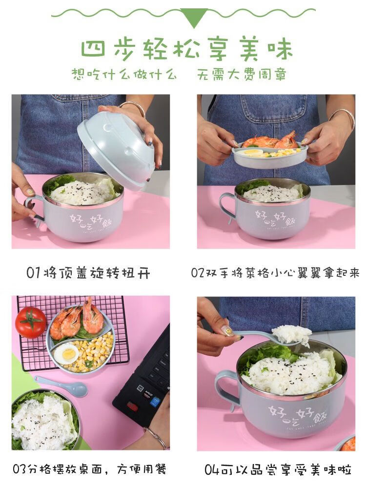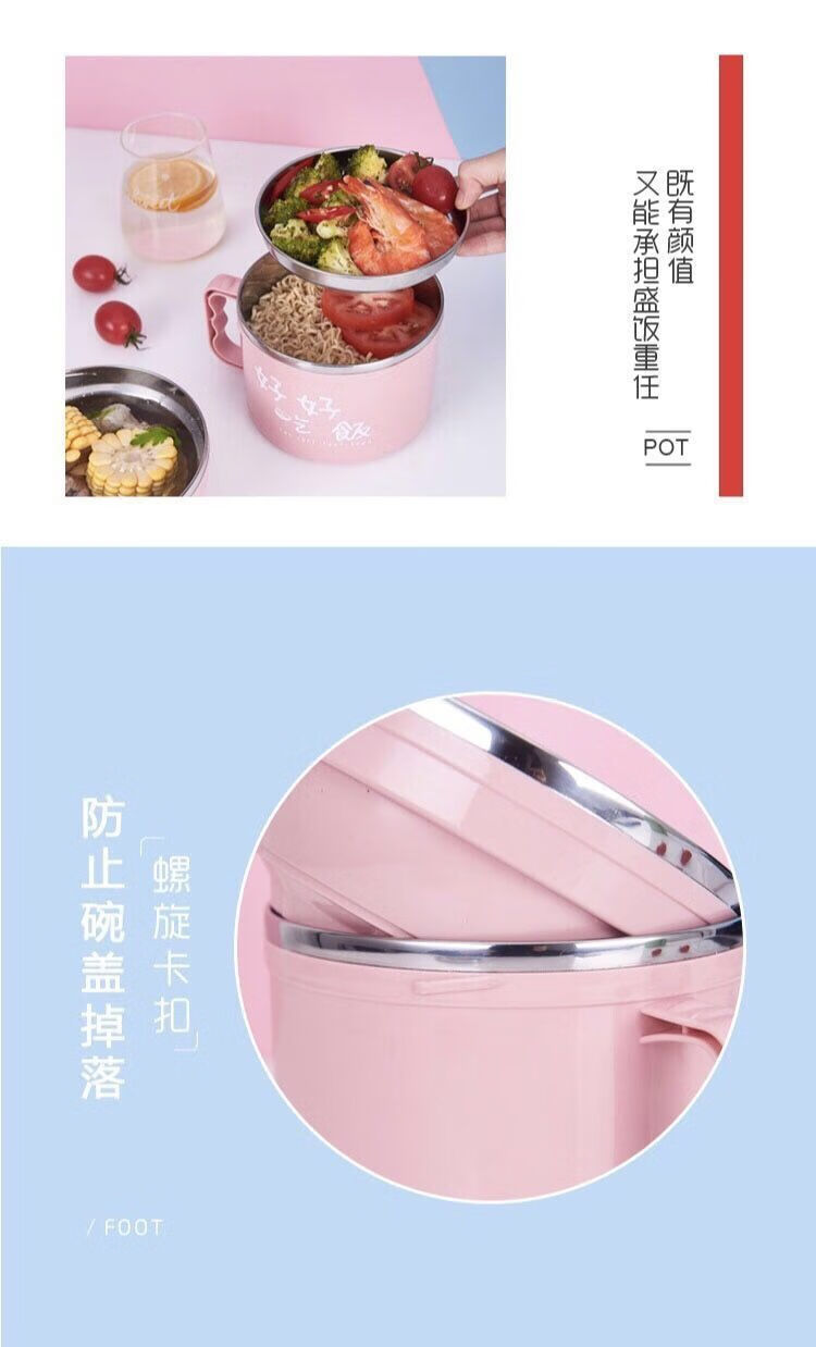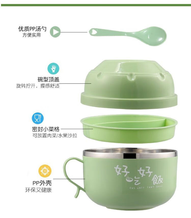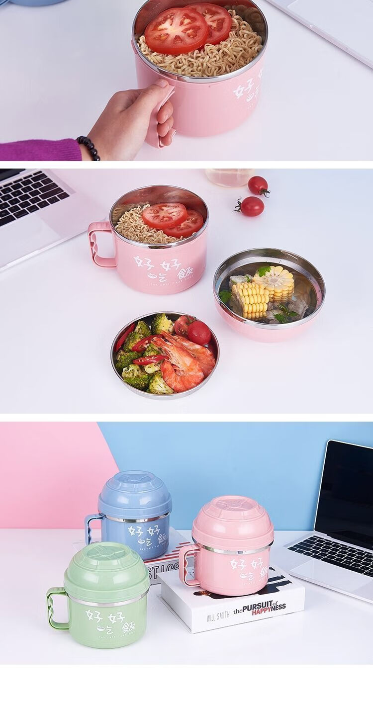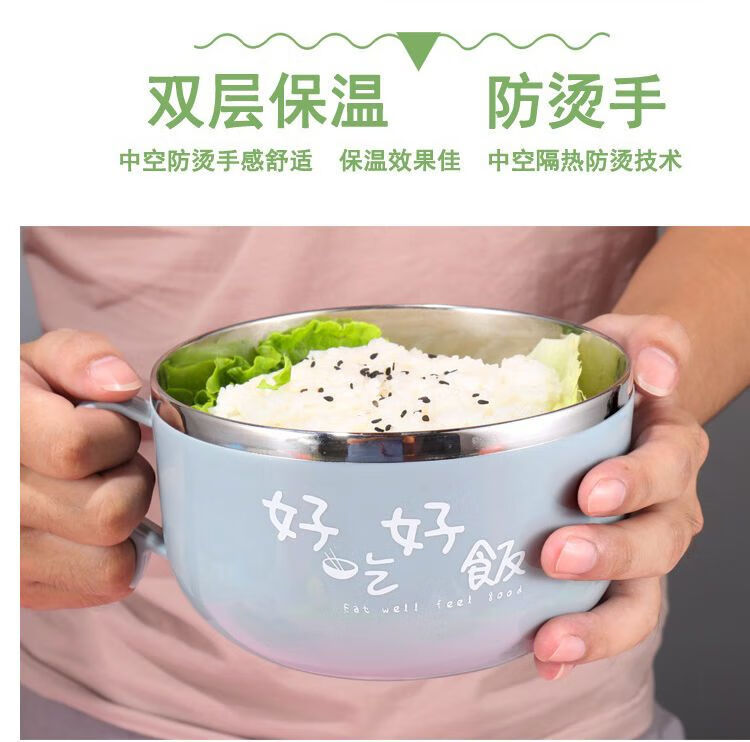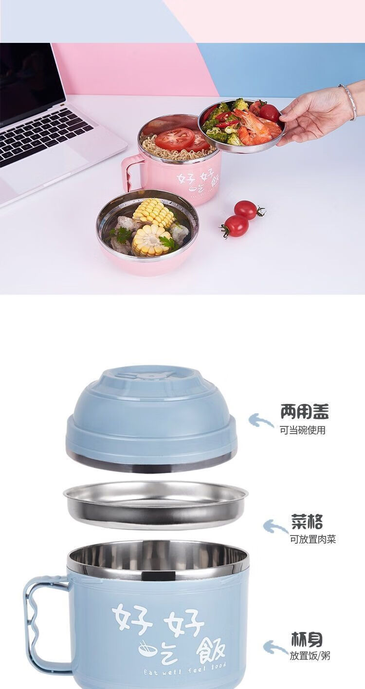 DEATKN德国不锈钢快餐杯泡面碗带盖大号学生饭盒上班族宿舍碗筷套装成人 品质【北欧蓝】 拧紧增强款【全内胆不锈钢】无贈品
