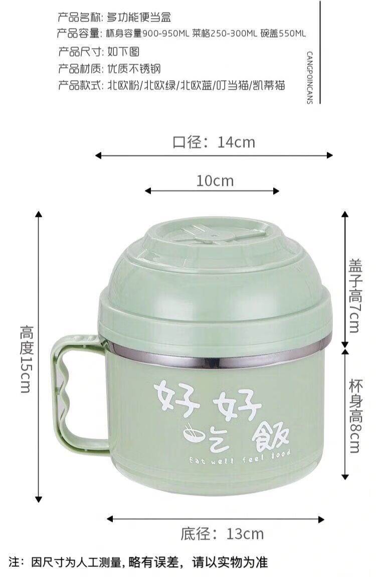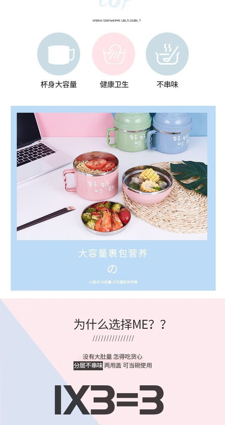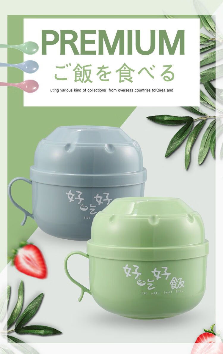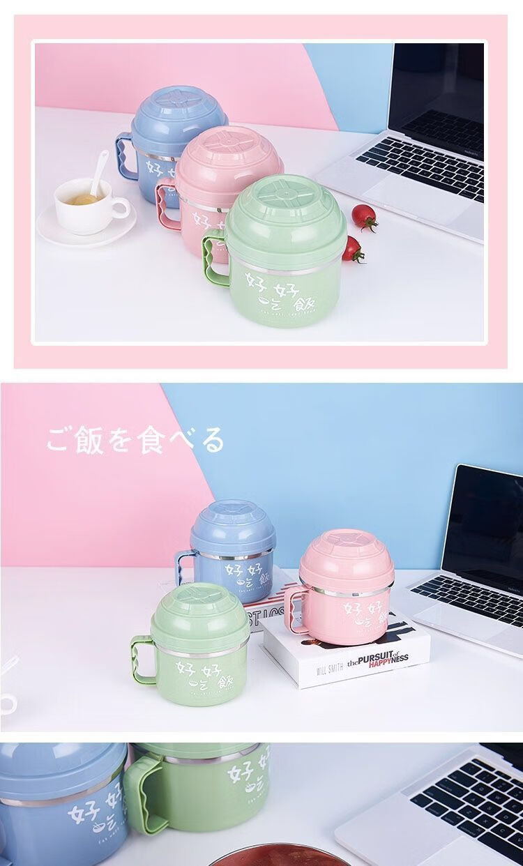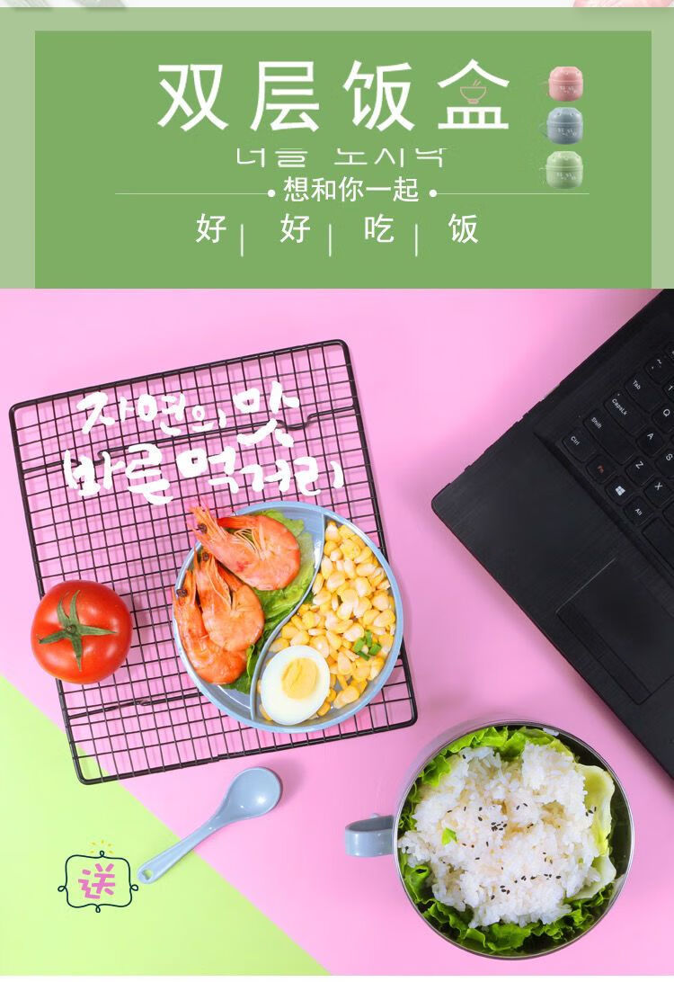DEATKN德国不锈钢快餐杯泡面碗带盖大号学生饭盒上班族宿舍碗筷套装成人 品质【北欧蓝】 拧紧增强款【全内胆不锈钢】无贈品