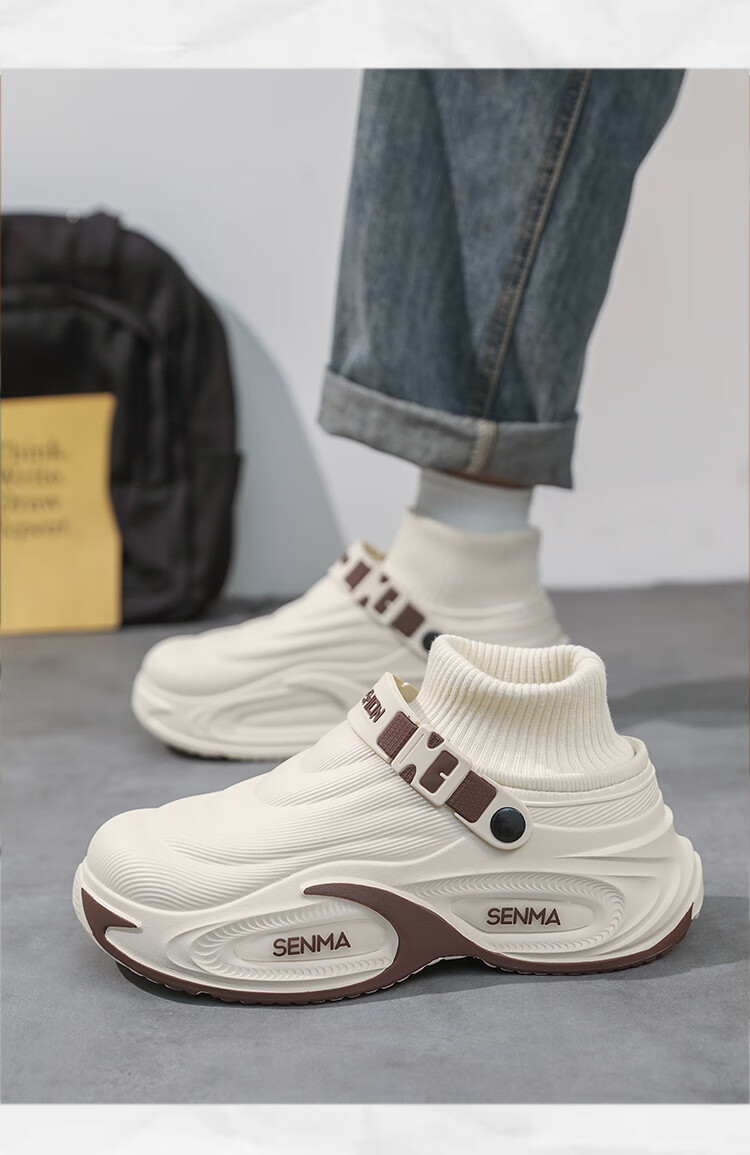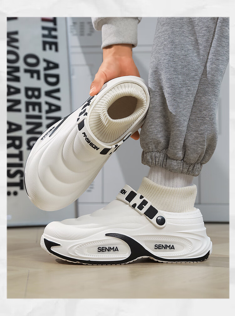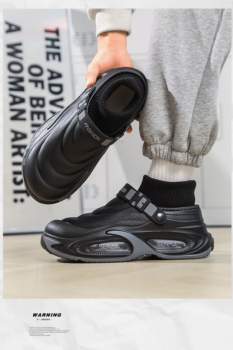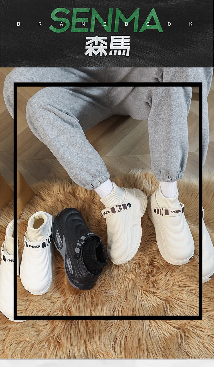 森馬棉拖鞋男冬季2025新款外穿防滑防水加绒保暖棉鞋居家厚底包跟拖鞋 米色 42-43