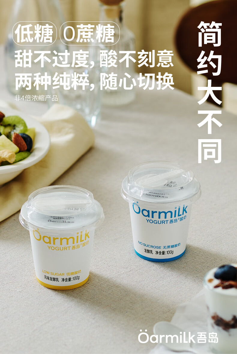 OarmiLk吾岛酸奶无蔗糖低糖组合100gX20杯生牛乳发酵乳低温酸奶早餐代餐 【20杯】100g低糖酸奶