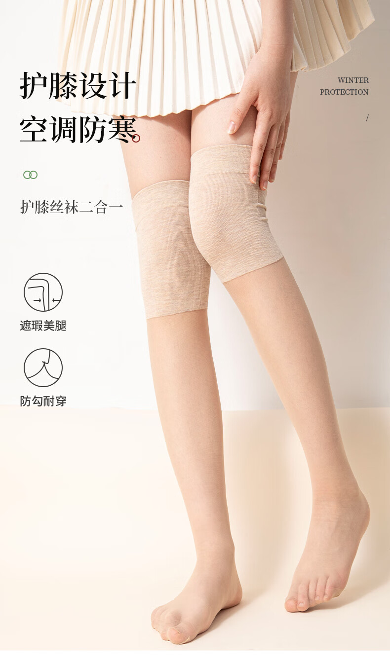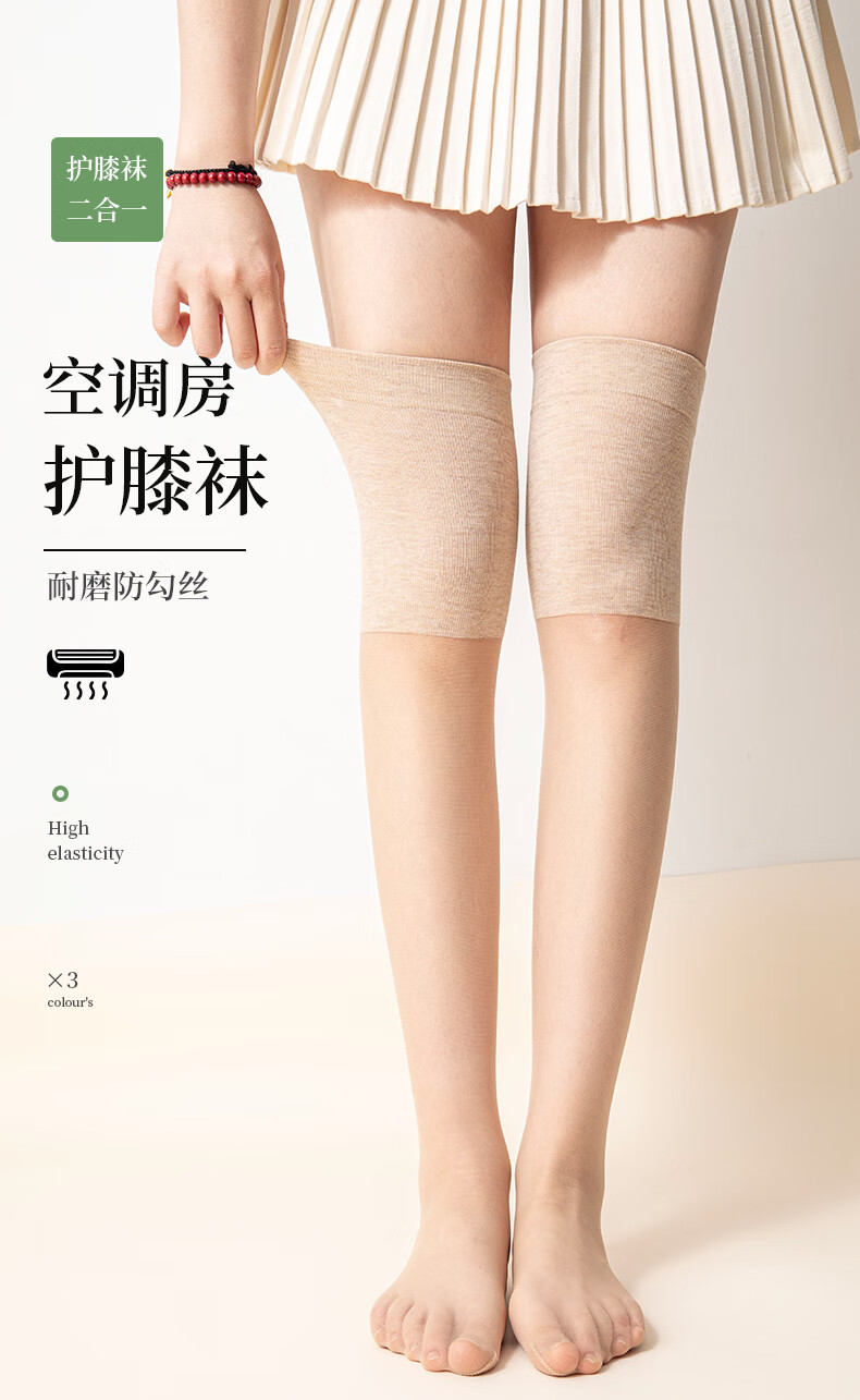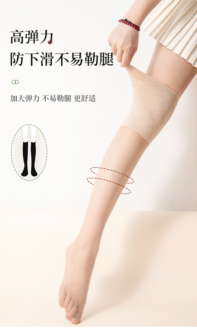 朋意空调房护膝袜套女丝袜长筒夏季薄款寒腿保暖过膝盖防滑防勾丝 黑色1双 均码 无规格
