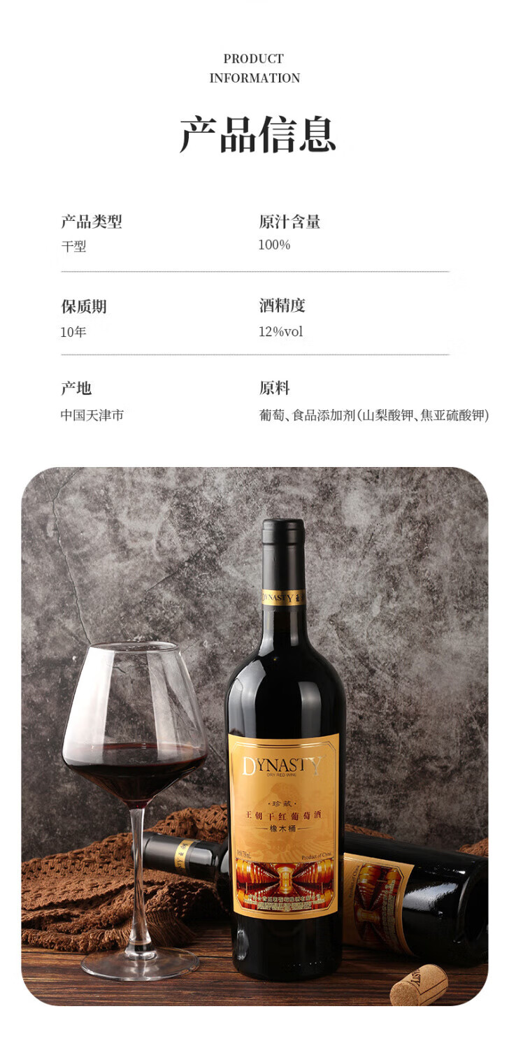 王朝(DYNASTY)王朝珍藏橡木桶 干红750ml*2瓶