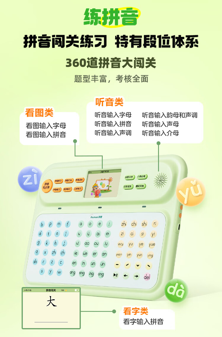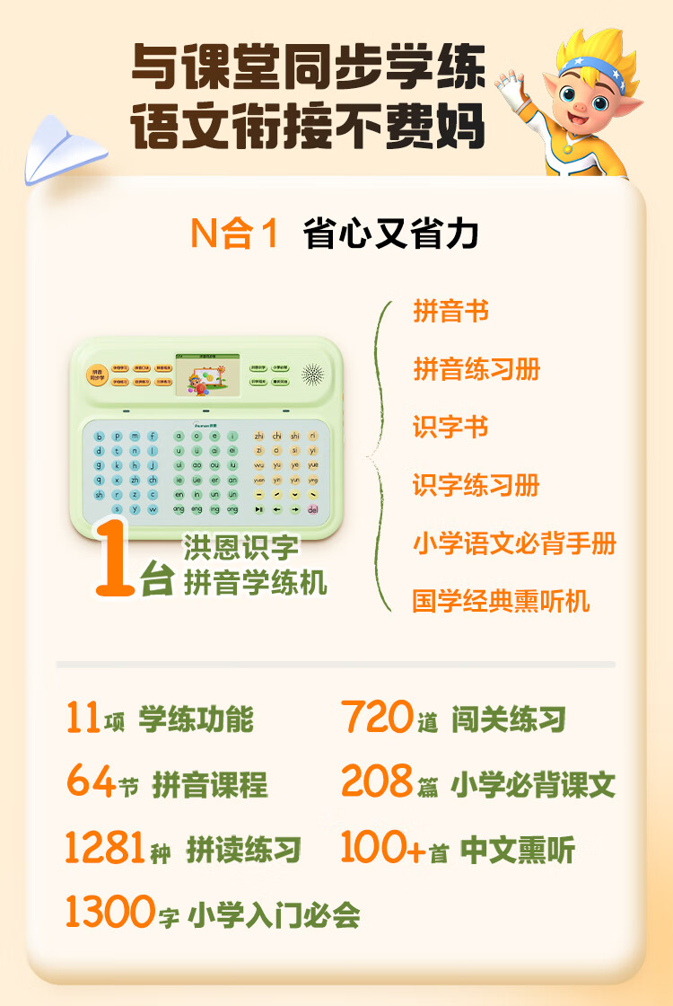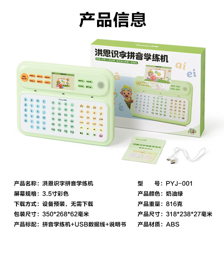 洪恩识字拼音早教学习机幼小衔接4-8岁男女孩儿童生日开学礼物玩具