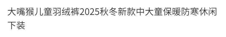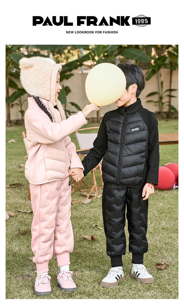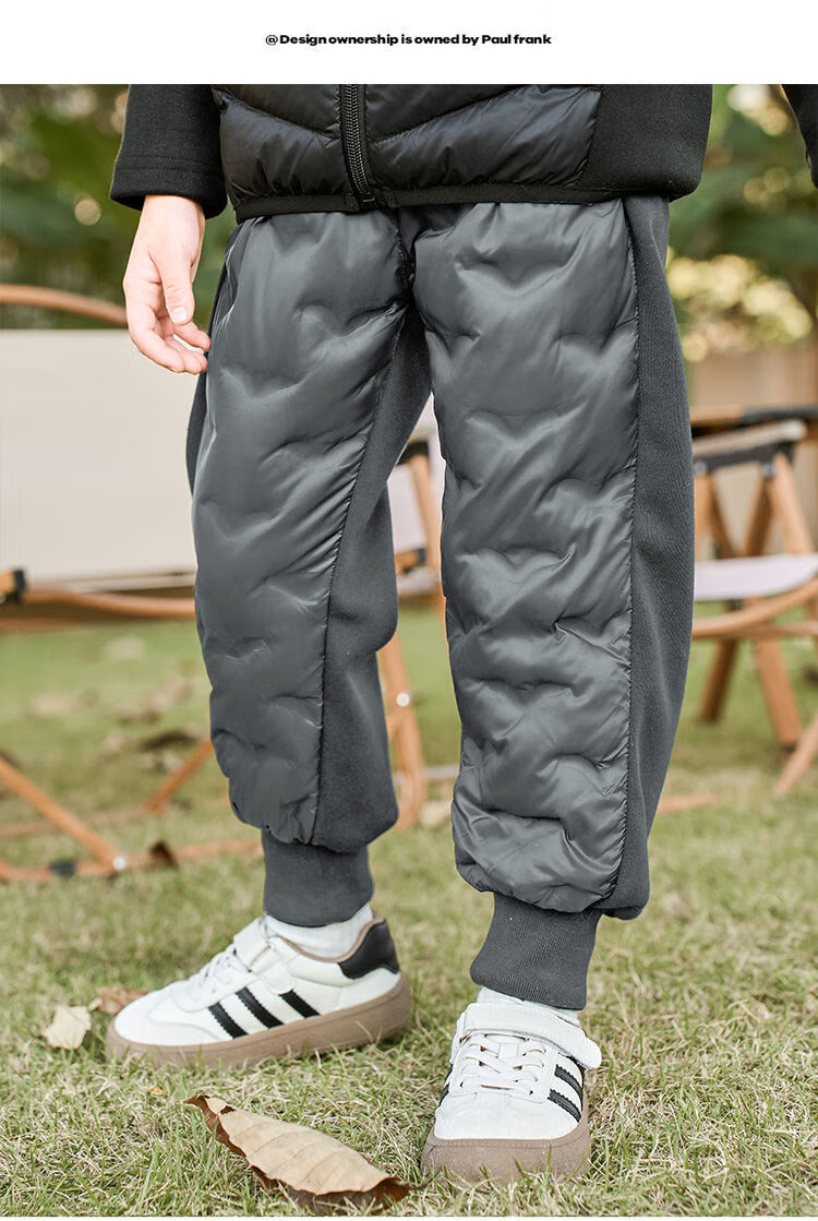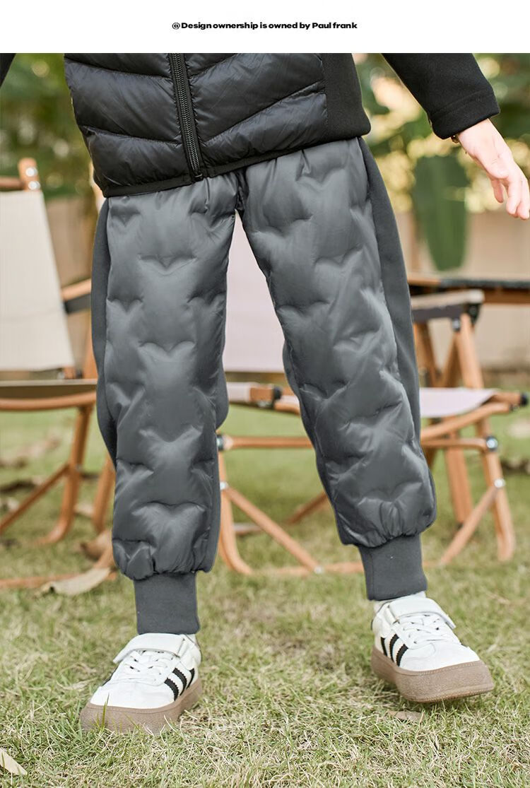大嘴猴(paul frank)儿童羽绒裤2025秋冬新款中大童保暖防寒男女童休闲厚下装 黑色 110