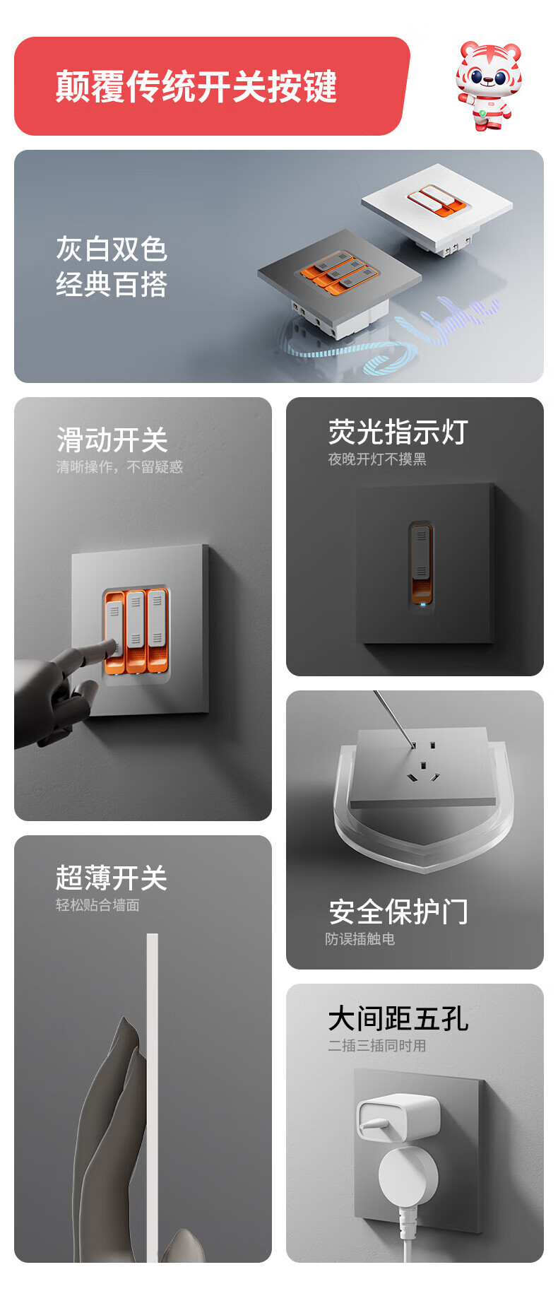 公牛(BULL)开关插座G36系列10A斜五孔国民家居小白框插座G36Z223A 白色暗装