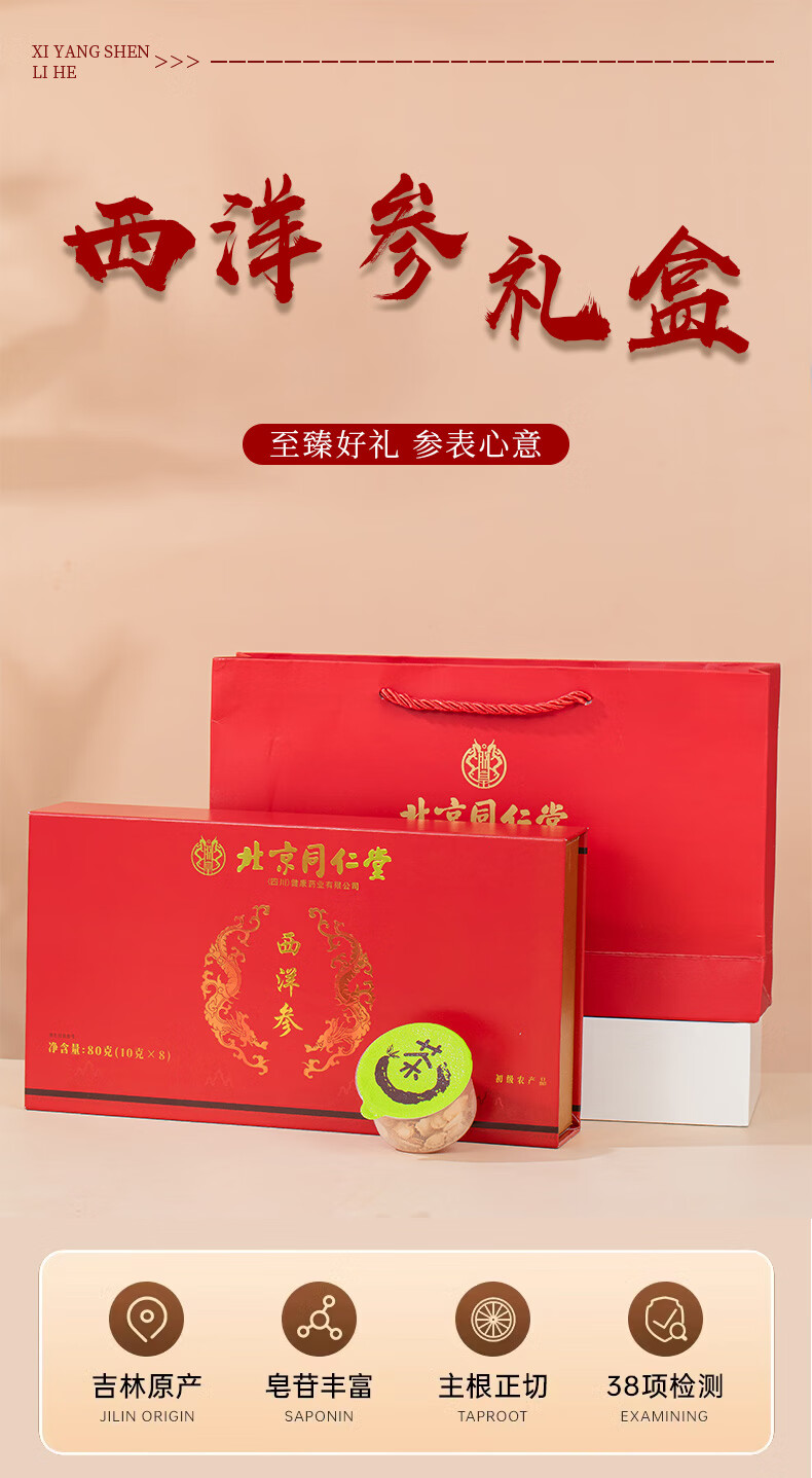 朕皇北京同仁堂西洋参片品质泡水用含片长白山产地西洋参茶 西洋参50克*1罐装