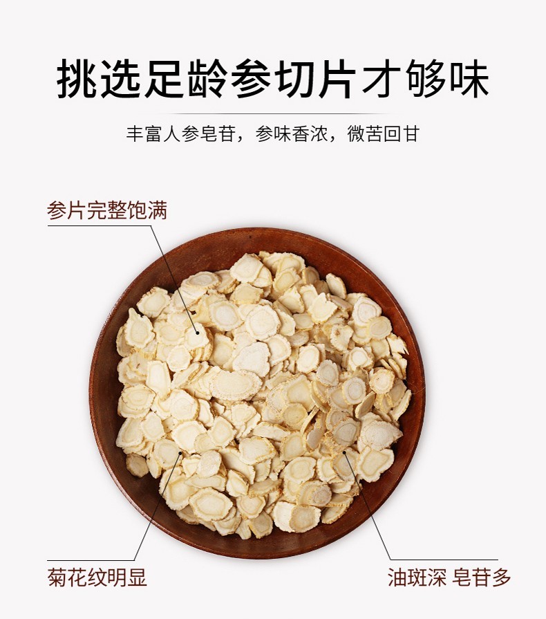 张太和 吉林西洋参切片 长白山西洋参片煲汤泡水 滋补礼品 西洋参250克【直径约0.6-0.8cm】