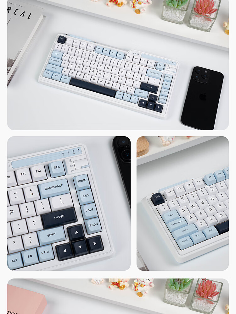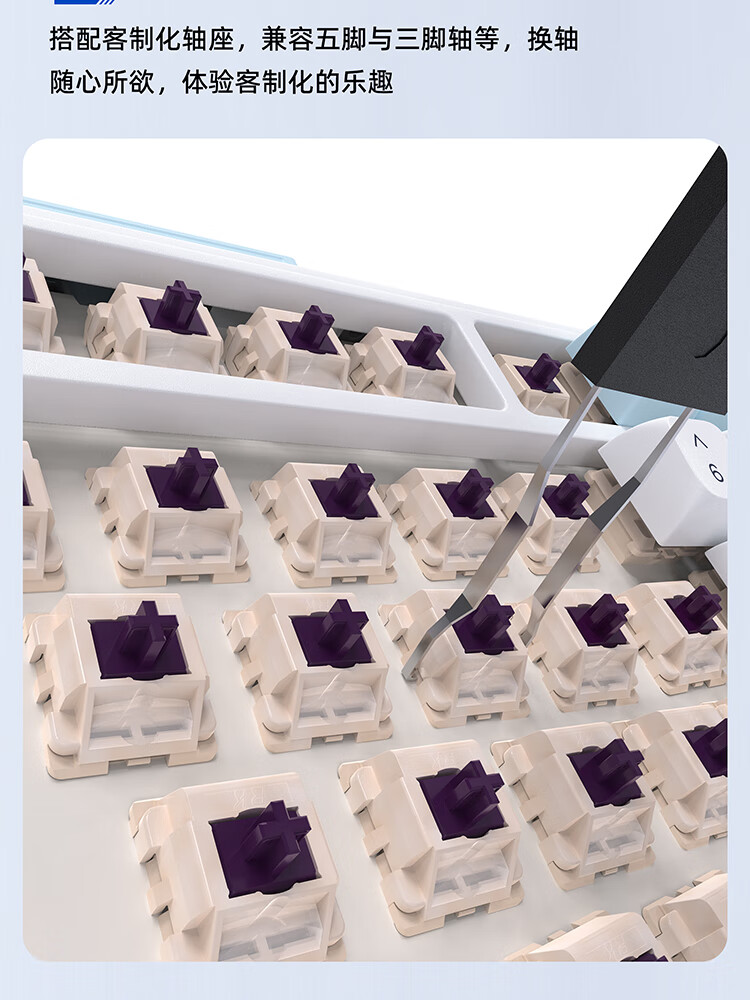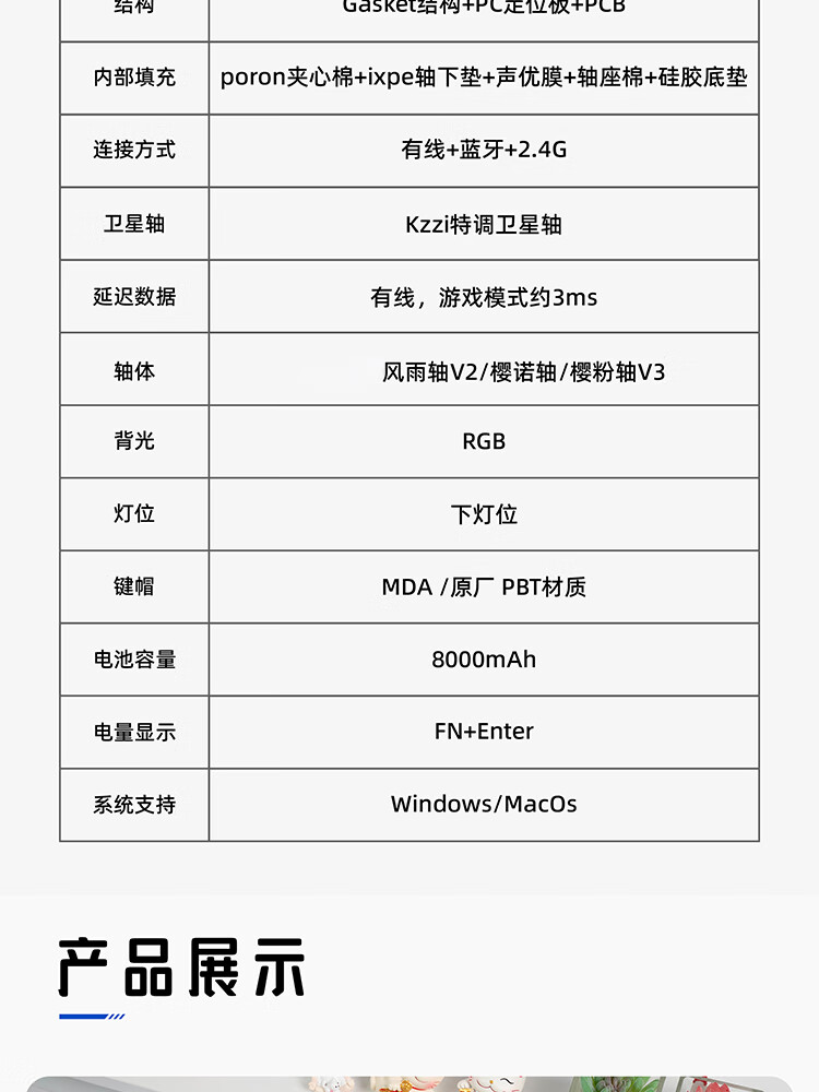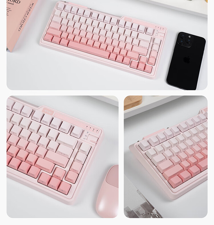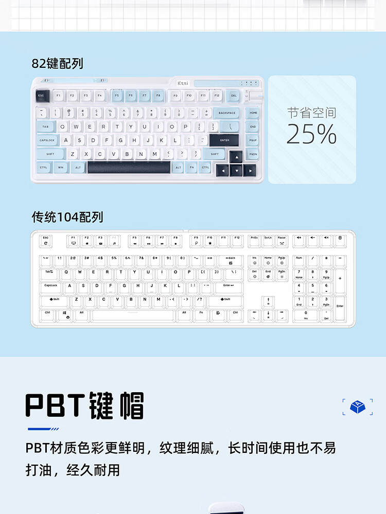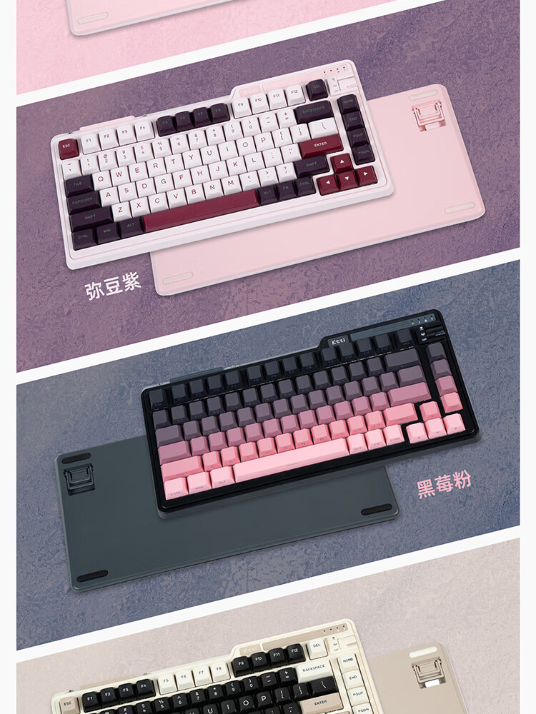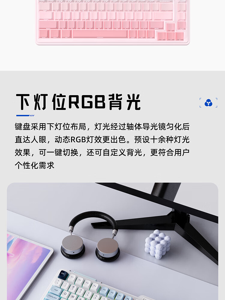 珂芝(KZZI)K75V2三模客制化机械键盘无线蓝牙电竞游戏静音轴体办公82键RGB背光PBT键帽Gasket冰川蓝樱粉轴V3