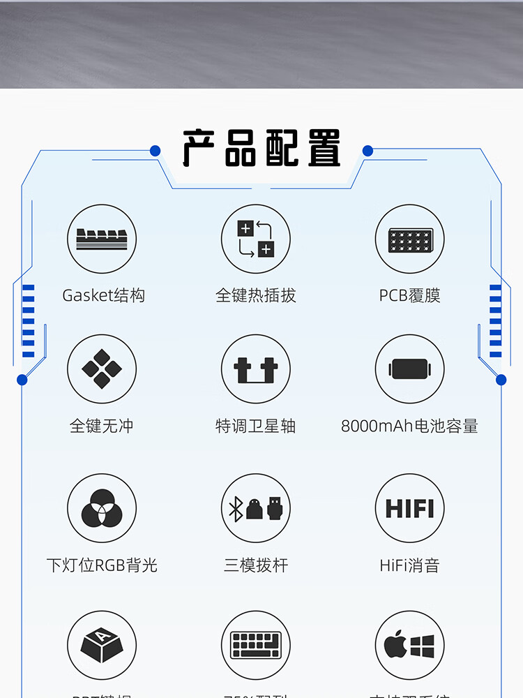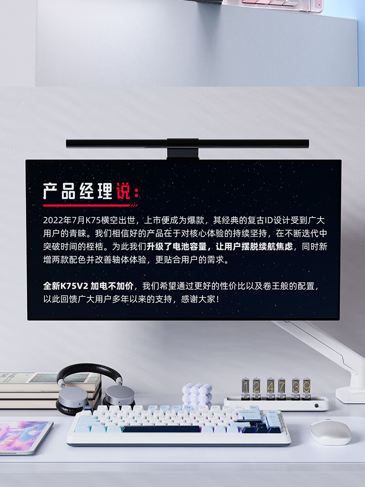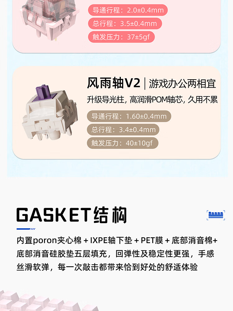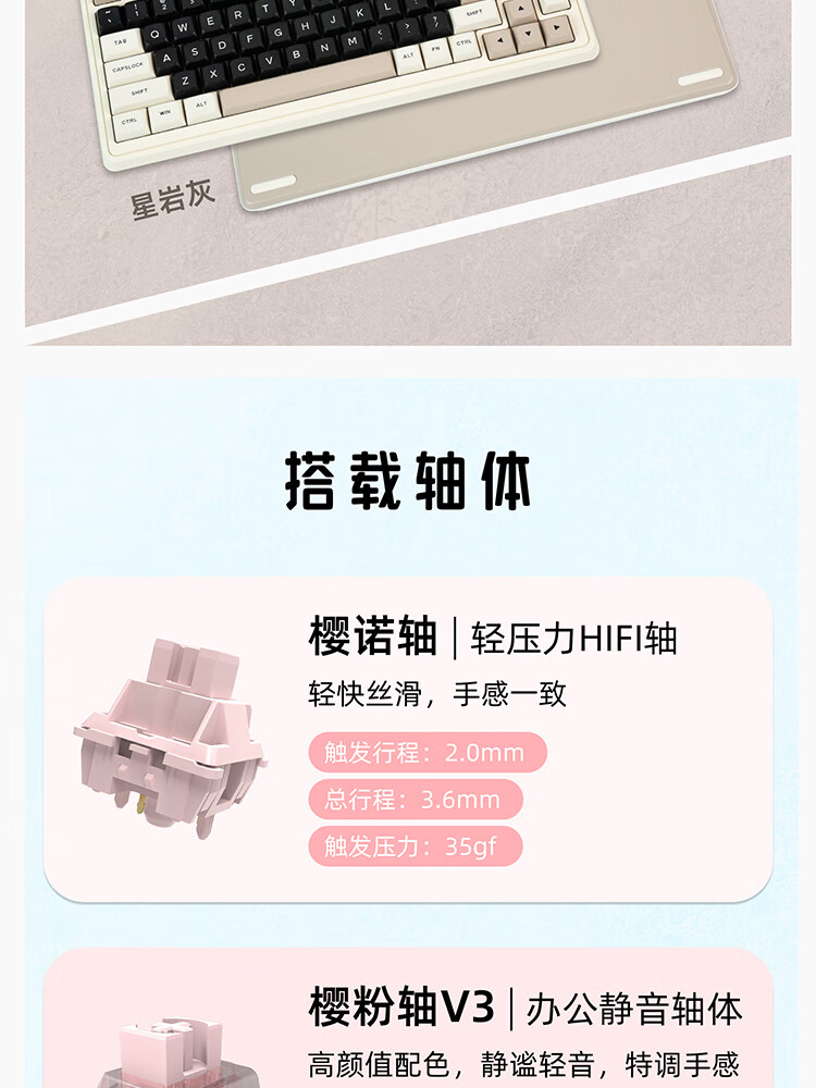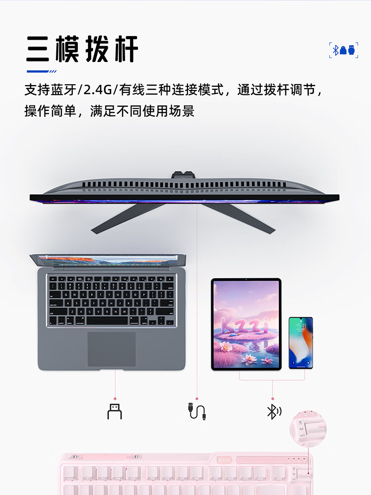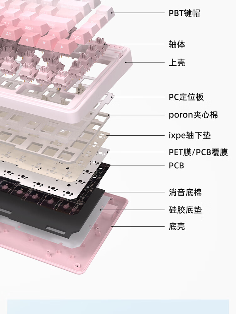 珂芝(KZZI)K75V2三模客制化机械键盘无线蓝牙电竞游戏静音轴体办公82键RGB背光PBT键帽Gasket冰川蓝樱粉轴V3
