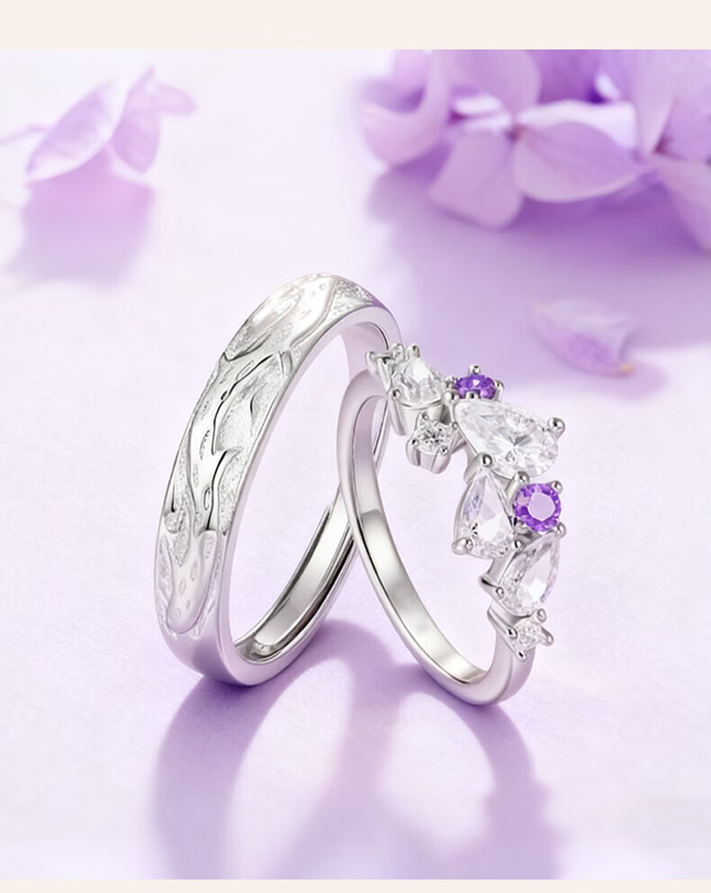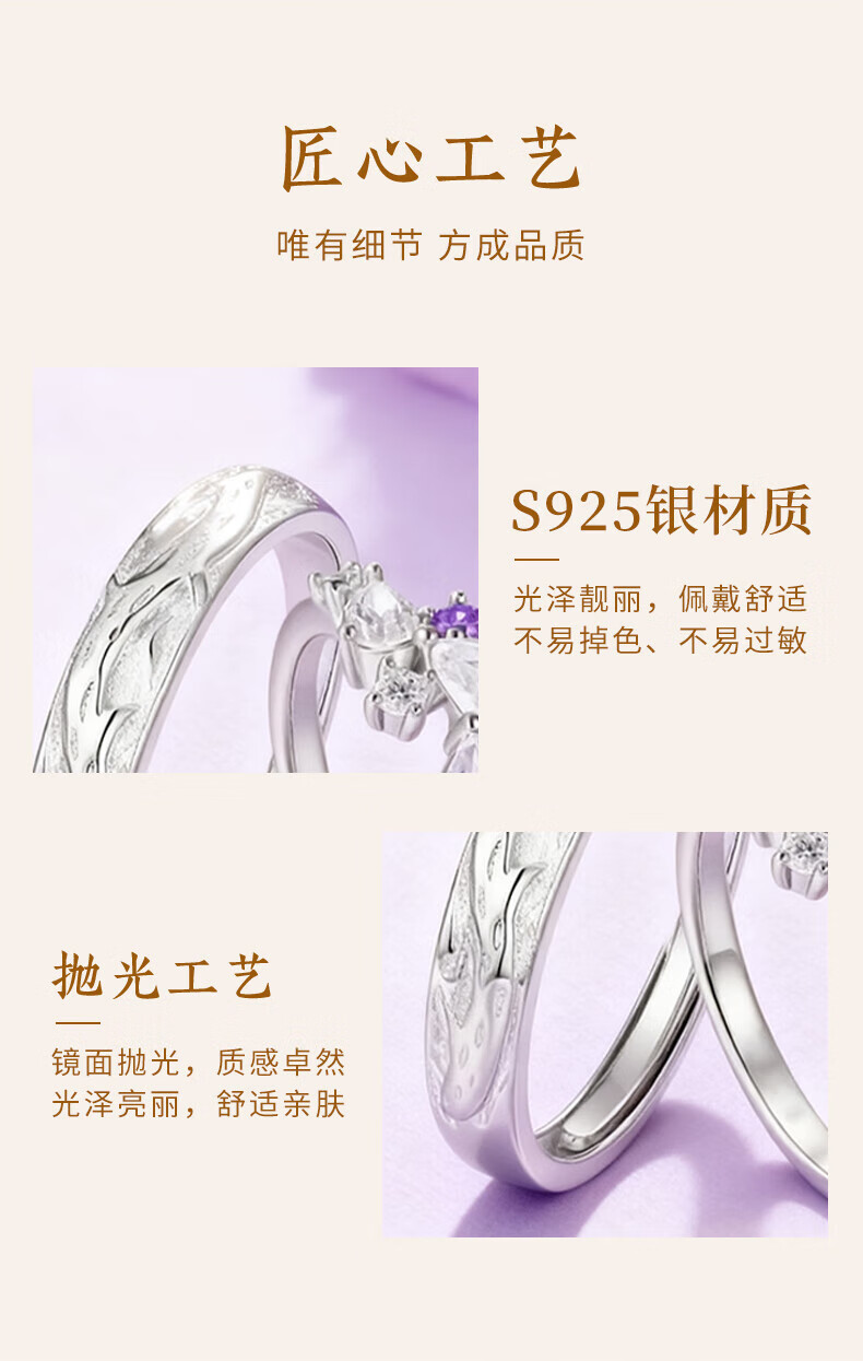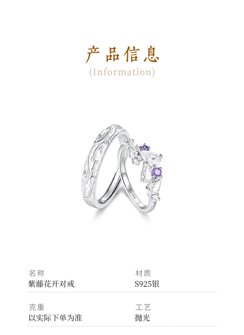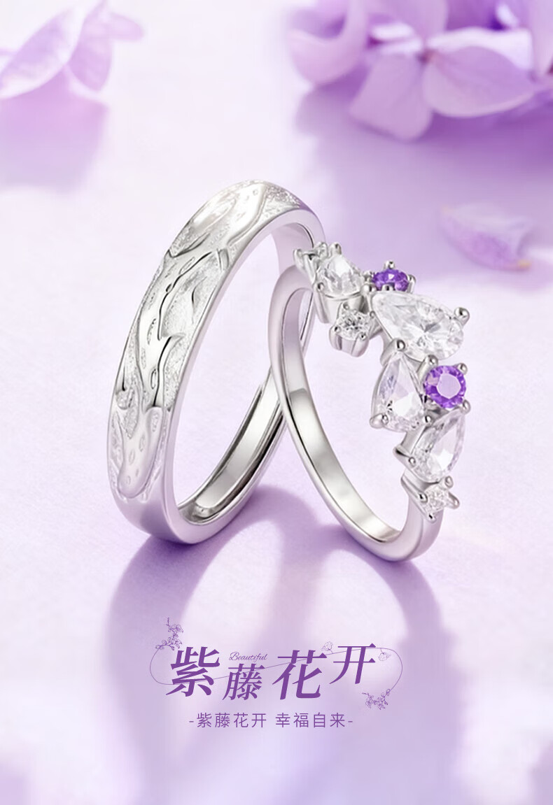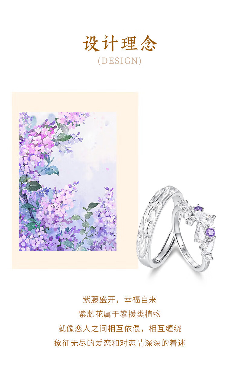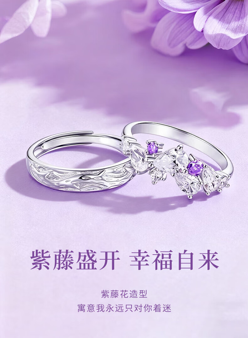 老凤祥925银紫藤花戒指女2025新款情侣对戒精致轻奢表白生日礼物送女友 京速达/紫藤花开对戒-925银【品牌礼盒】 开口可调节