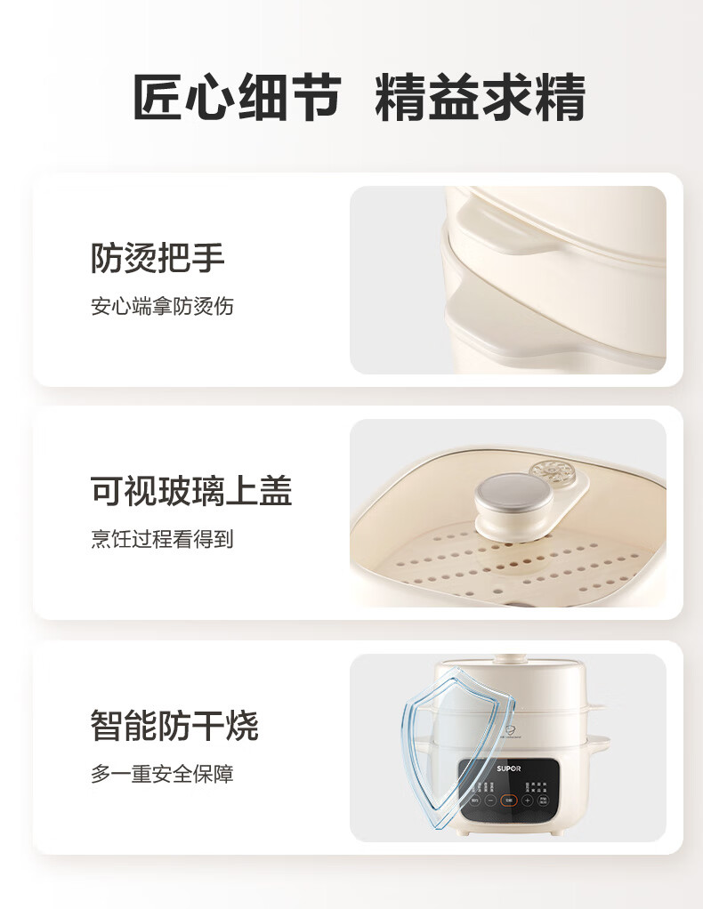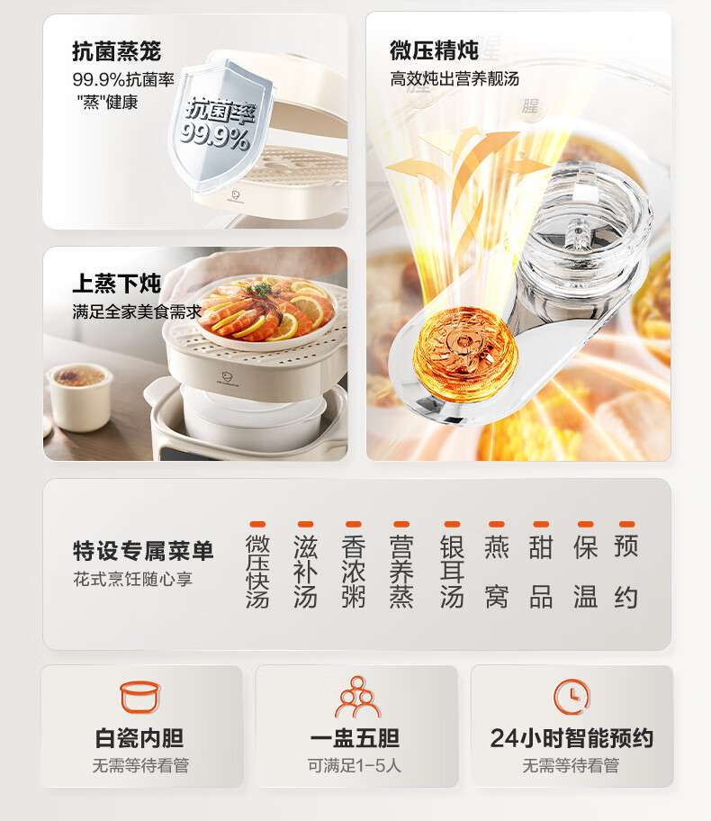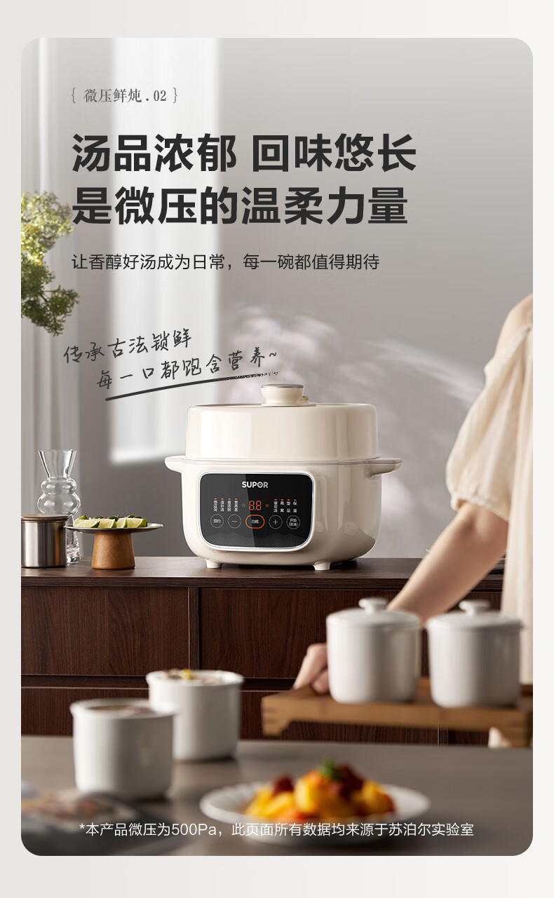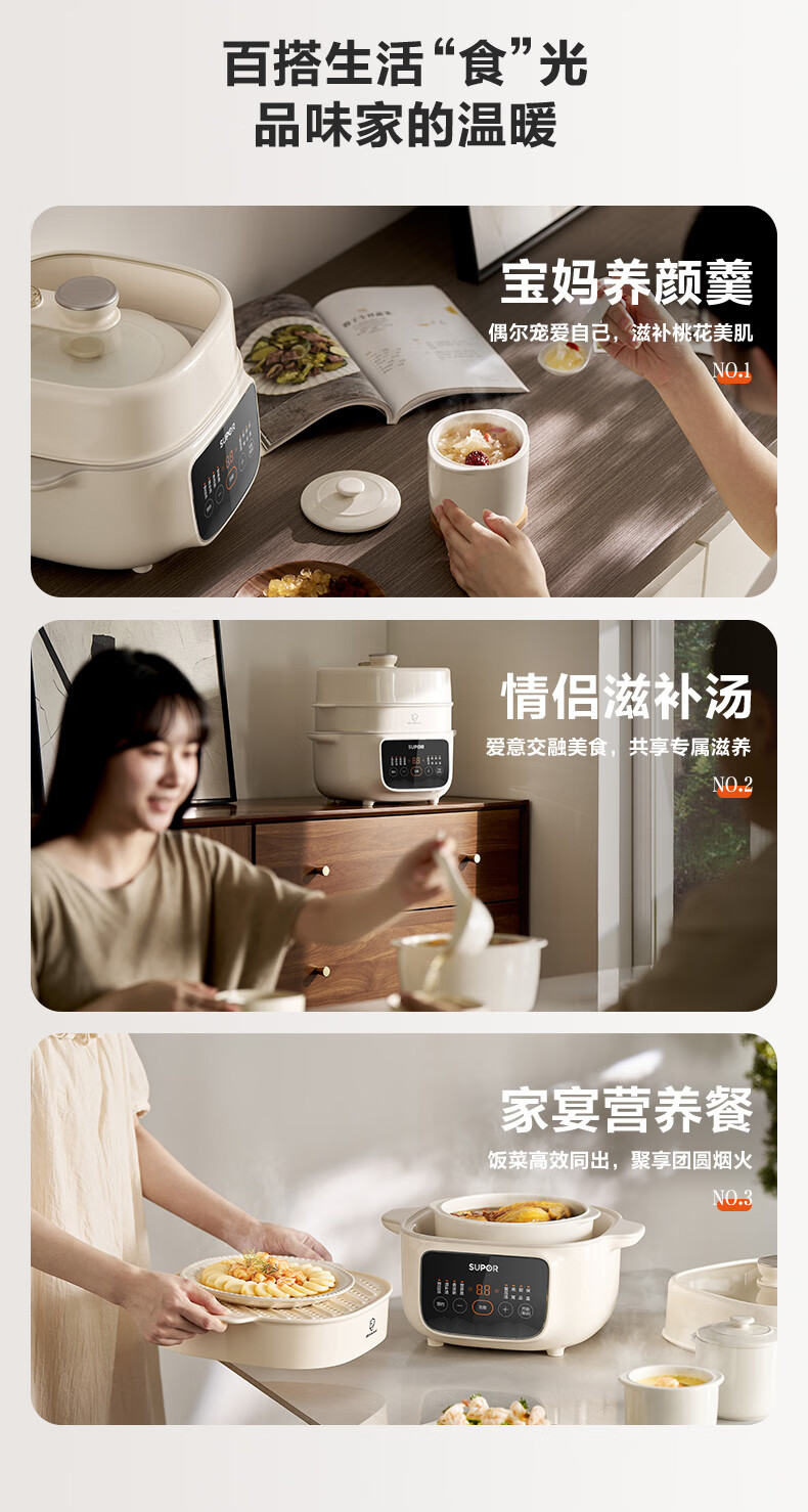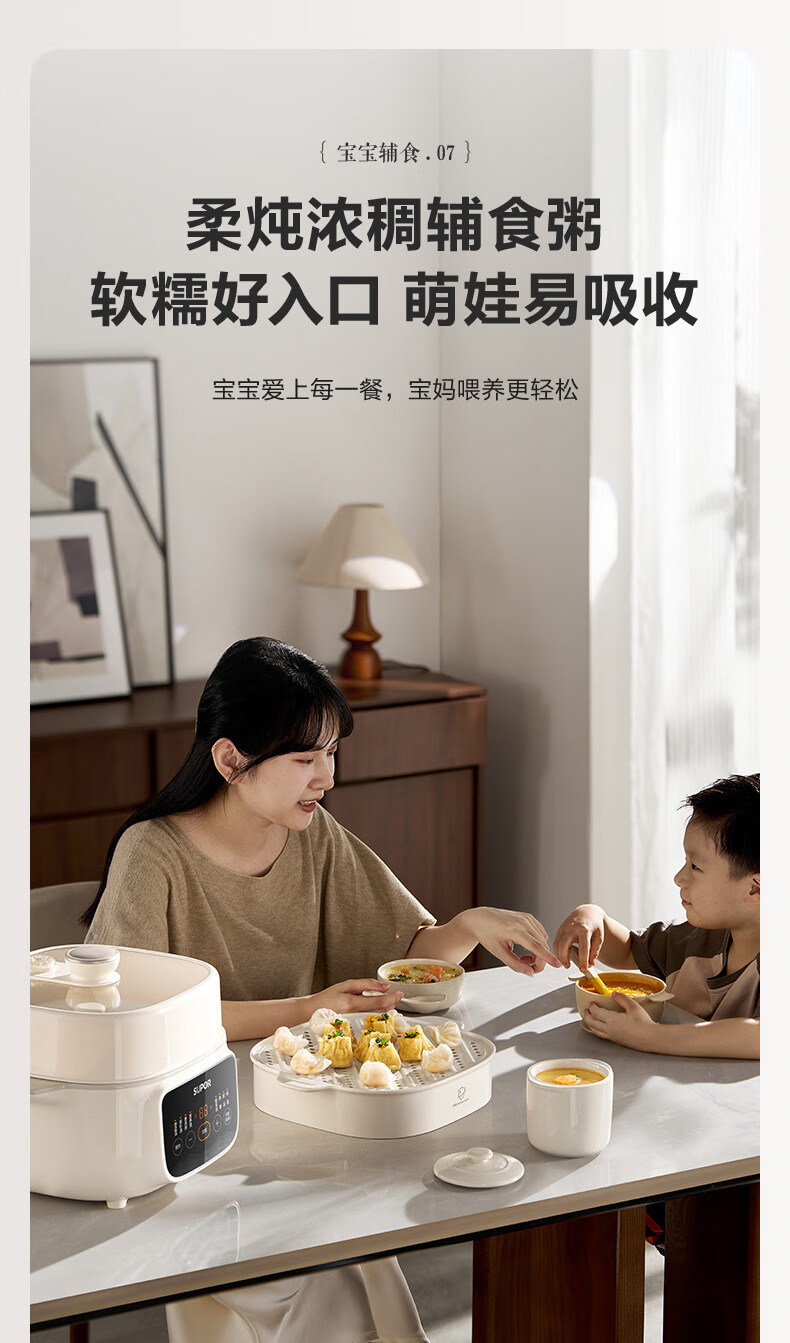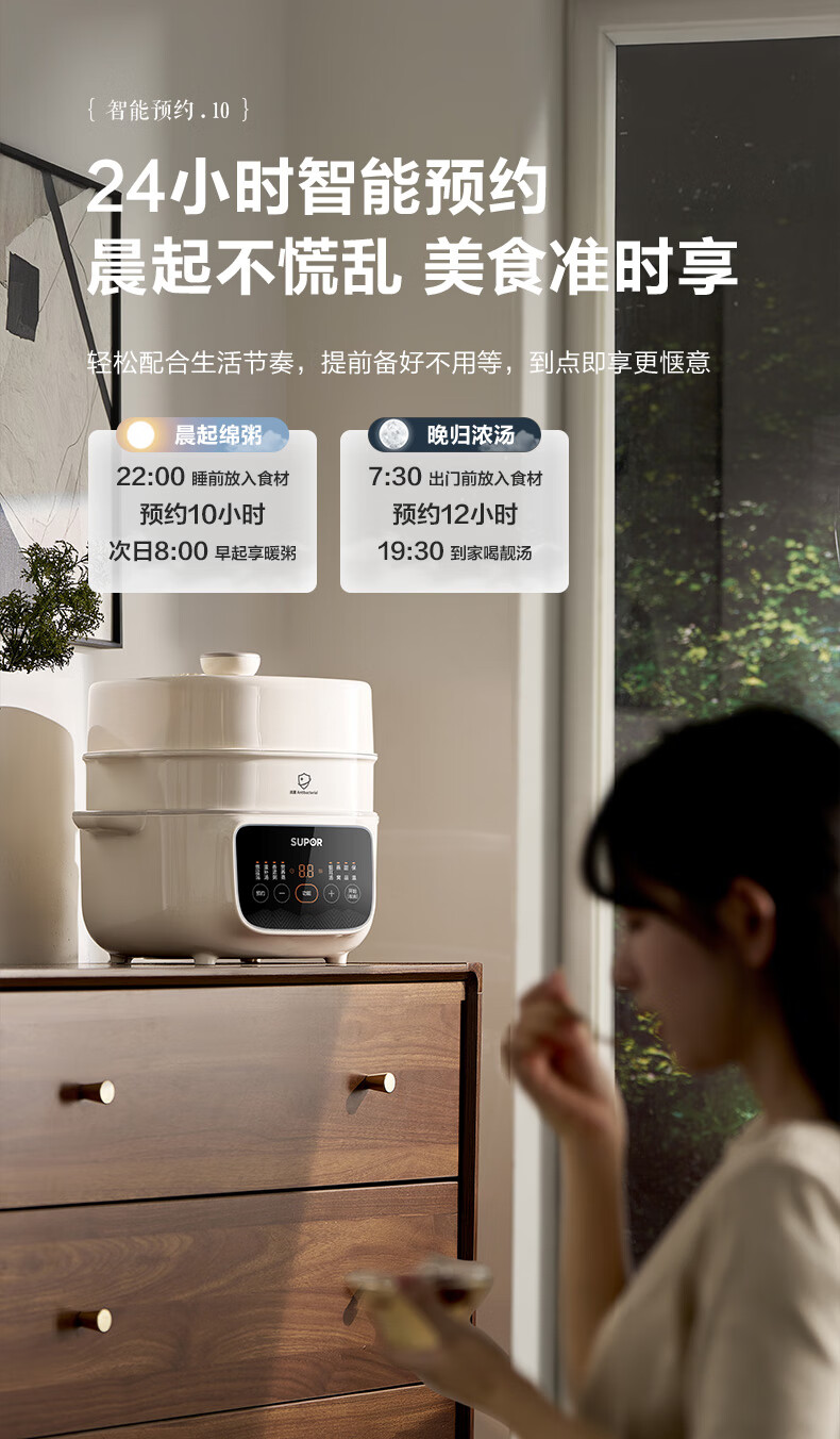 苏泊尔电炖锅电炖盅煲汤锅炖汤锅隔水炖锅2-3人多功能锅智能白瓷燕窝炖盅煮粥锅蒸锅宝宝婴儿辅食锅陶瓷 白瓷 4.5L 微压快炖【一锅5胆】上蒸下炖