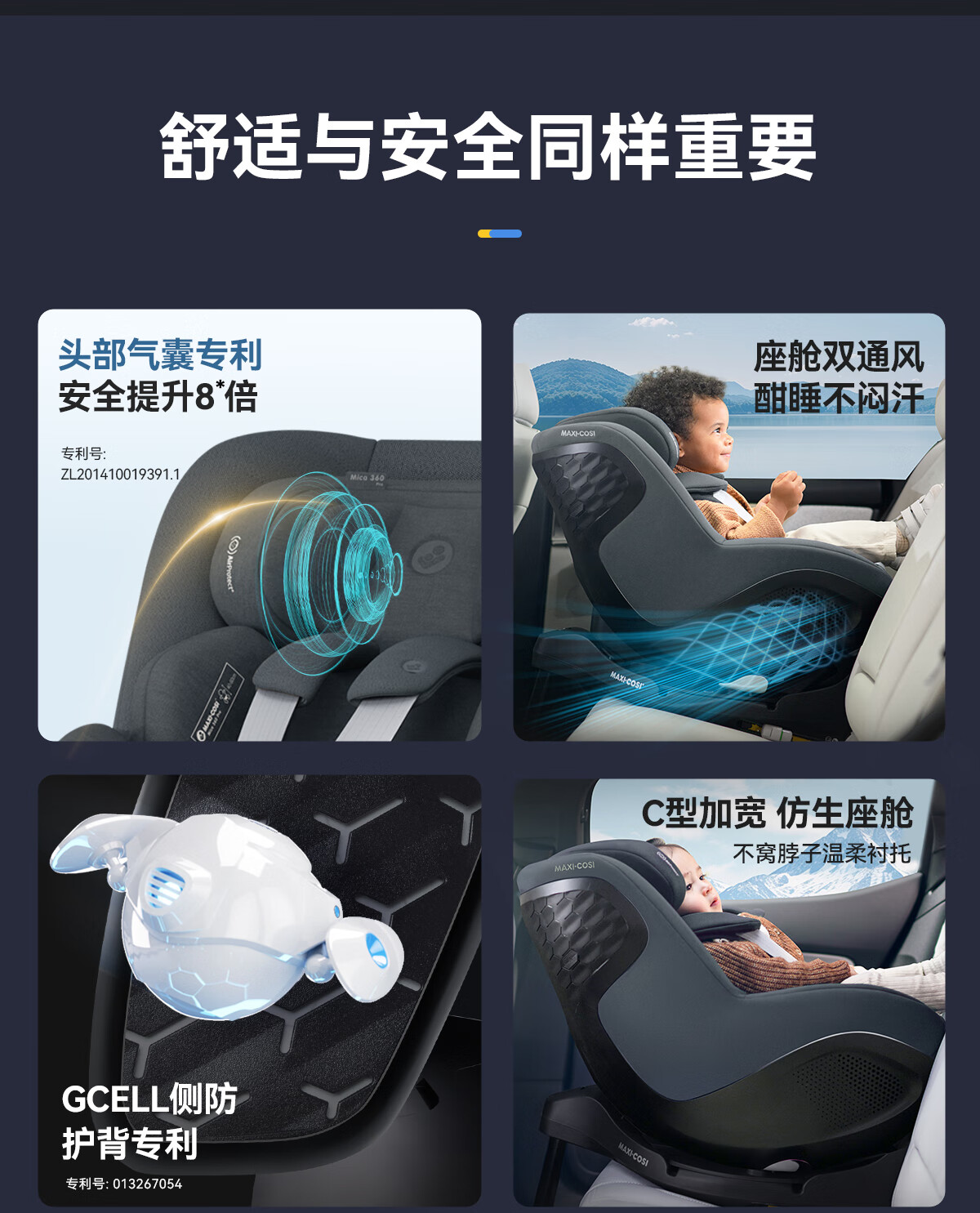 maxicosi迈可适婴幼儿童安全座椅新国标汽车用0-4岁ADAC Mica360Pro月影棕