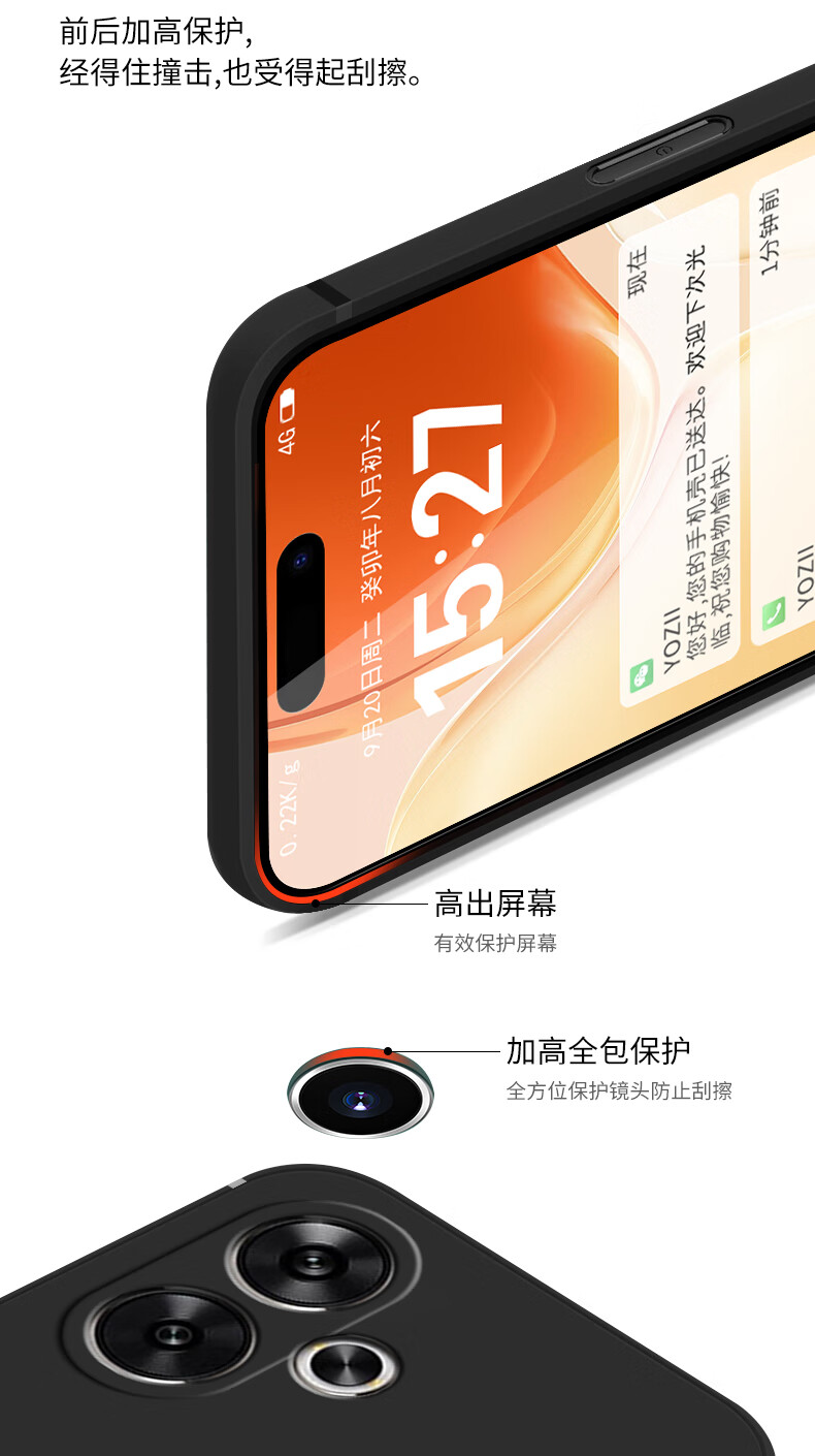 美希意OPPORENO10 RENO10PRO RENO11 RENO11PRO万柿如意个性创意全包边镜头保护 曜石黑-好运爆棚-单壳 OPPO Reno 10