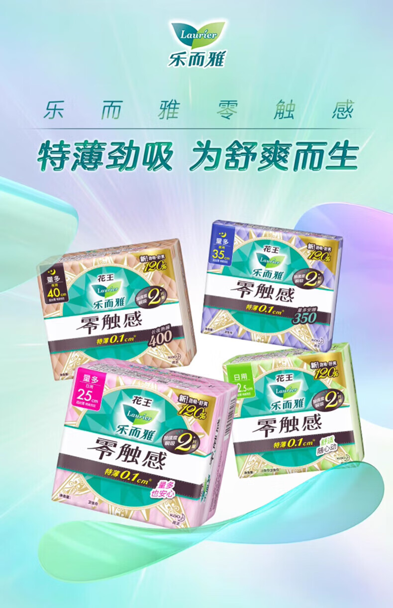乐而雅【甄选厂家】花王乐而雅零触感卫生巾薄透气女性姨妈巾 22.5cm日用20片