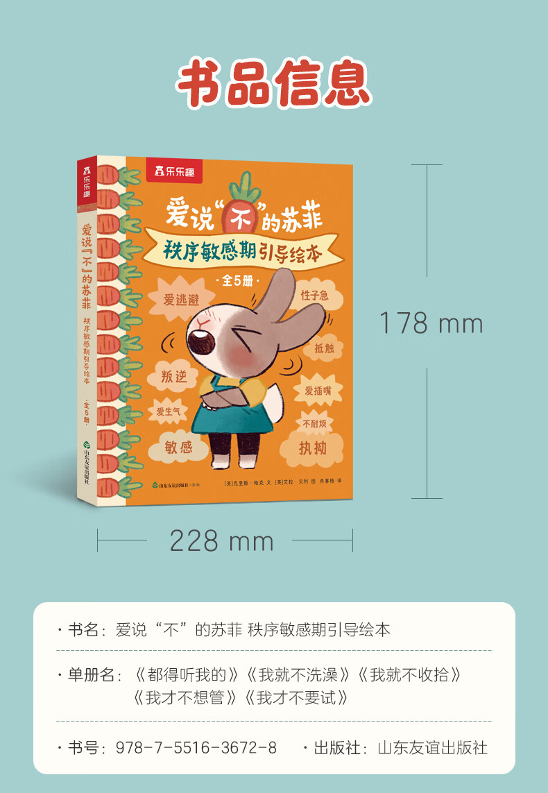 乐乐趣爱说“不”的苏菲秩序敏感期引导绘本2-4岁儿童性格生活习惯培养情绪管理情绪引导绘本故事0-3岁亲子阅读故事书 秩序敏感期引导绘本(5册)