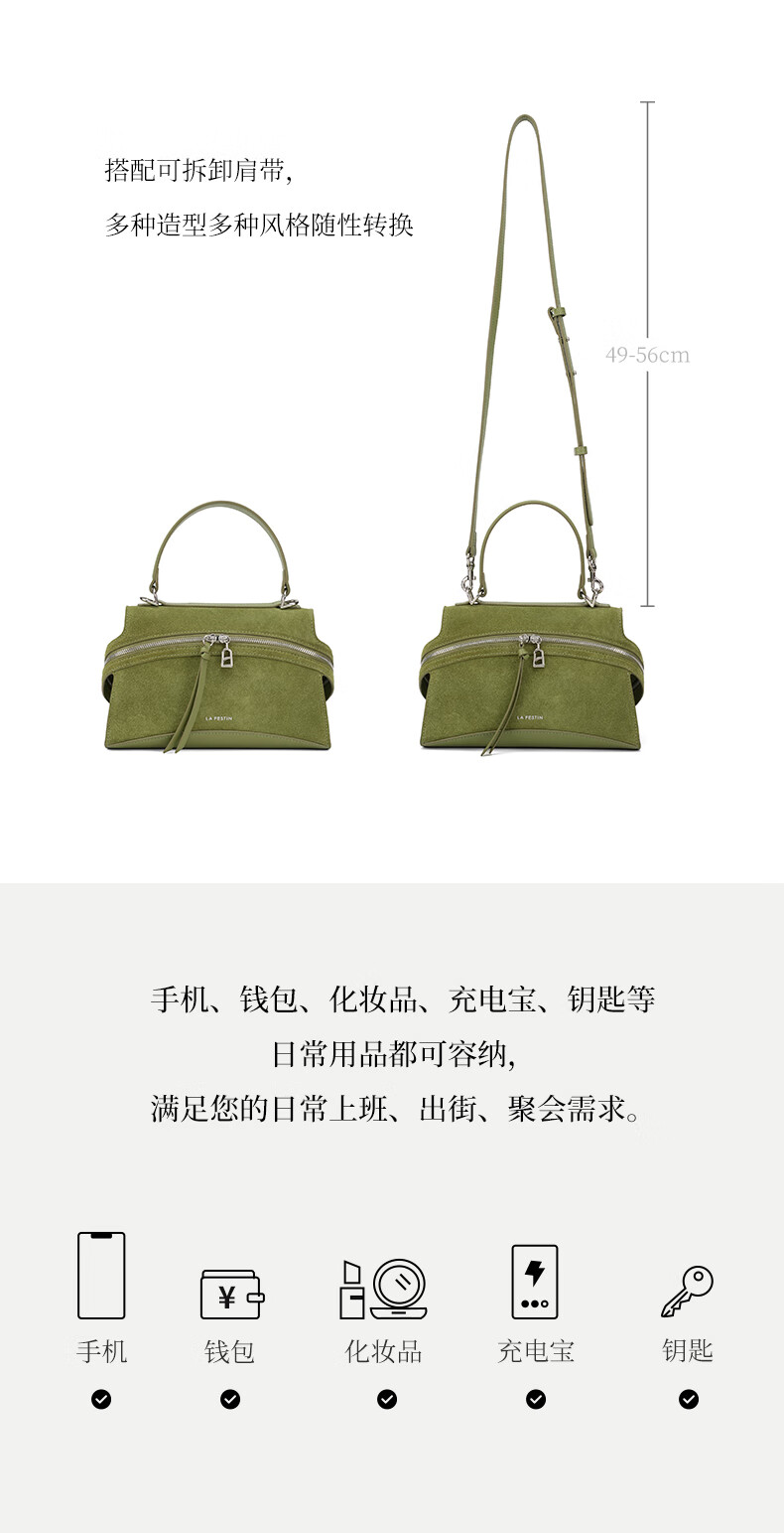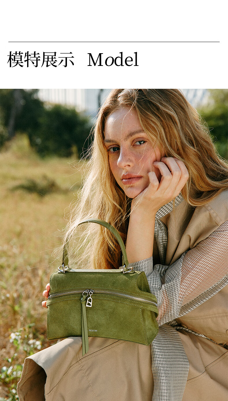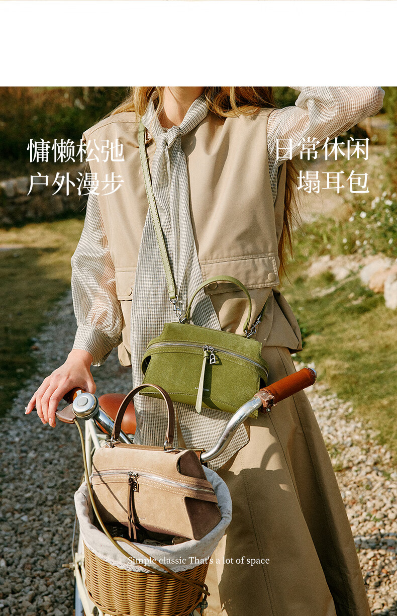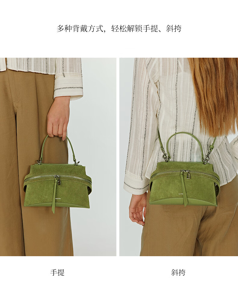 拉菲斯汀【圣诞礼物】头层牛皮塌耳包2025新款绿色斜挎包麂皮绒手提包 【头层牛皮】奶昔白(小号)