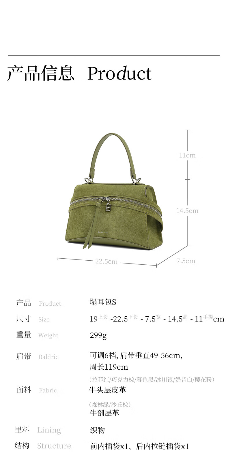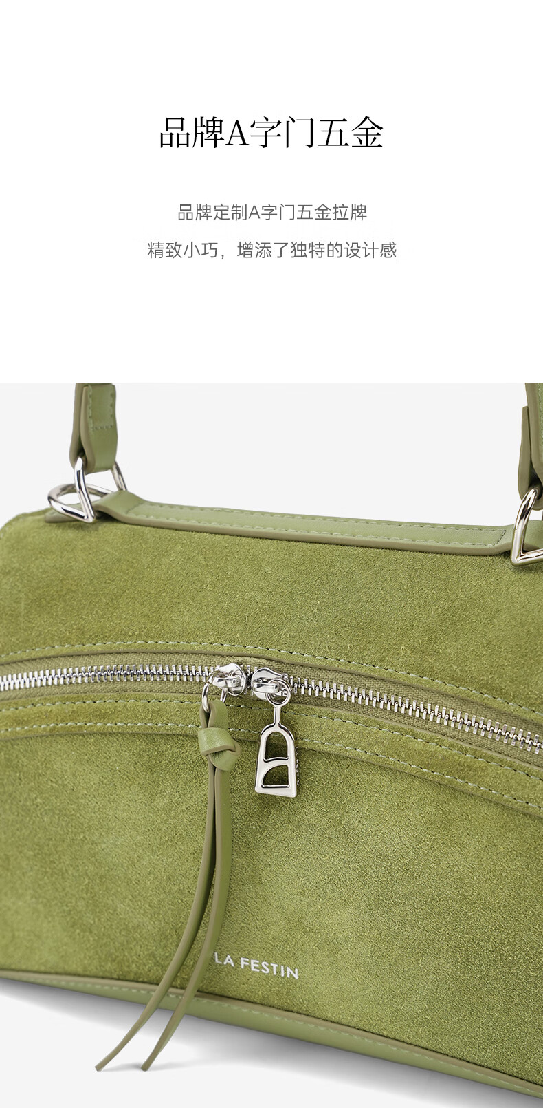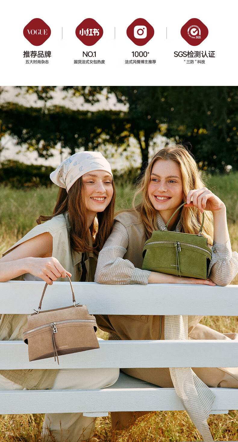 拉菲斯汀【圣诞礼物】头层牛皮塌耳包2025新款绿色斜挎包麂皮绒手提包 【头层牛皮】奶昔白(小号)