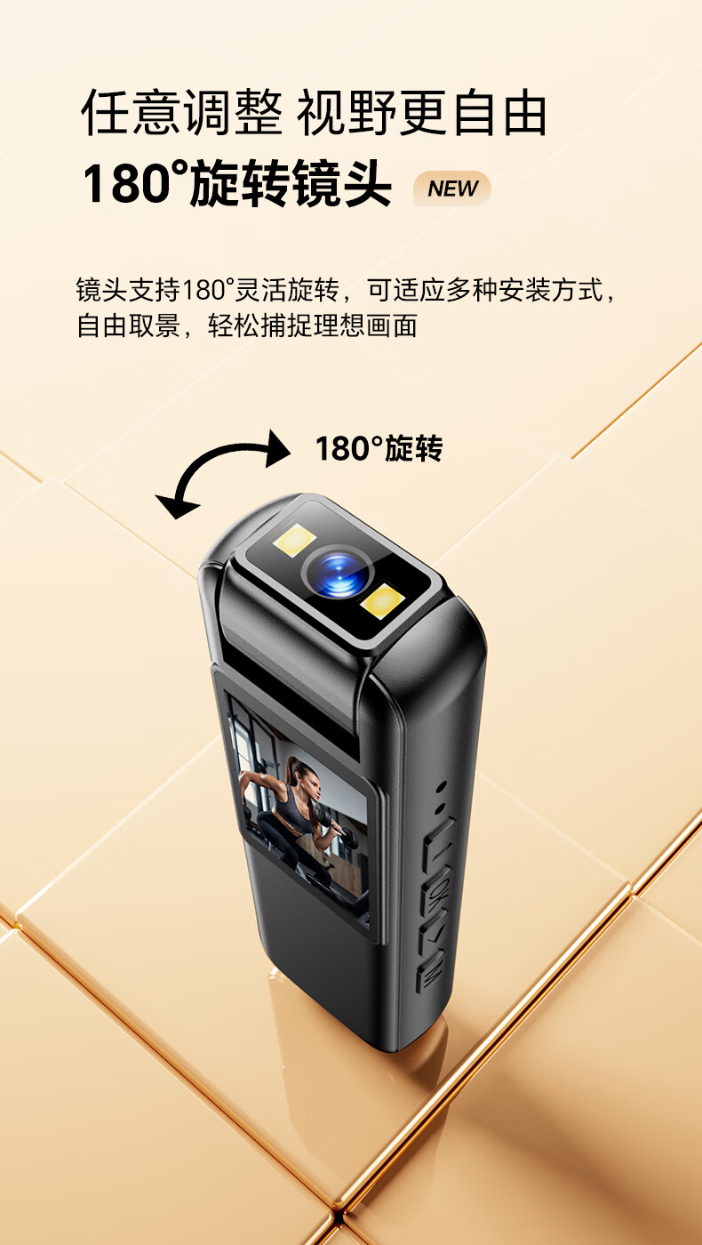九目便携式相机行车记录仪随身高清夜视执法仪微型胸前小型运动相机会议工作留痕记录仪 【带屏直连】超长续航+超清显示+无网录像+美颜补灯 无内存版 口袋运动相机新品促销