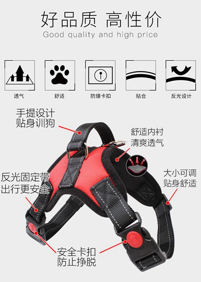 高悠派 狗狗牵引绳中大型犬背心式胸肩背带拉布拉多狗绳宠物通用