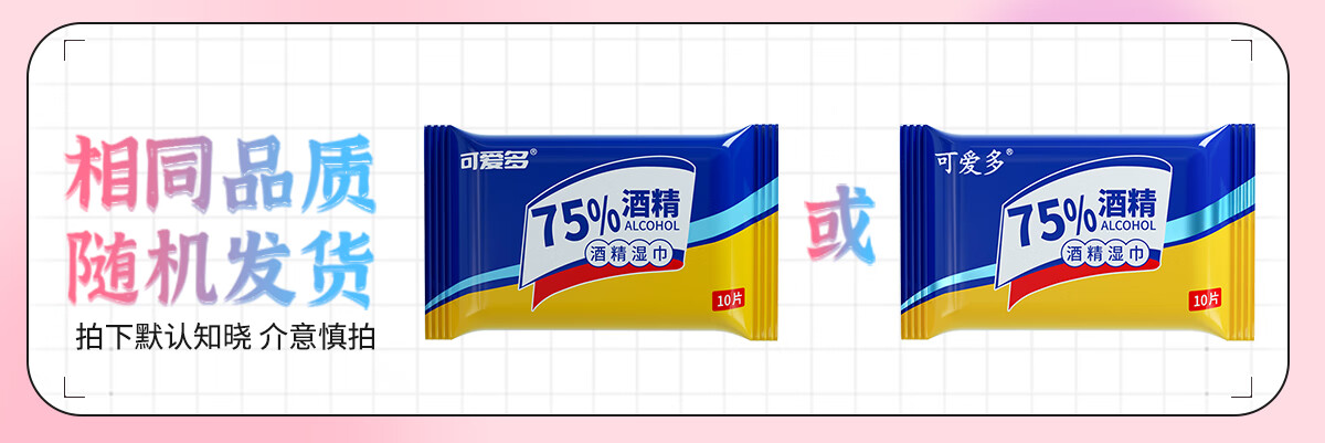 可爱多酒精湿巾75%消毒湿纸巾99.9%杀菌10抽*10包湿巾小包儿童上学专用