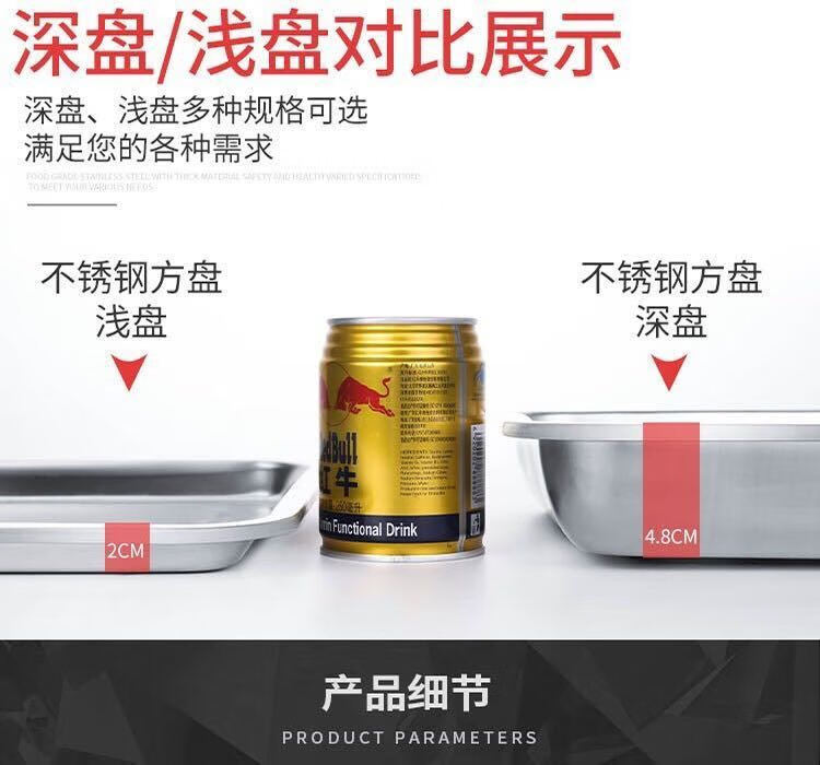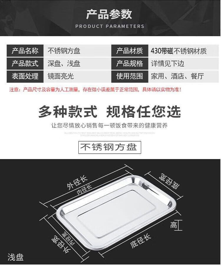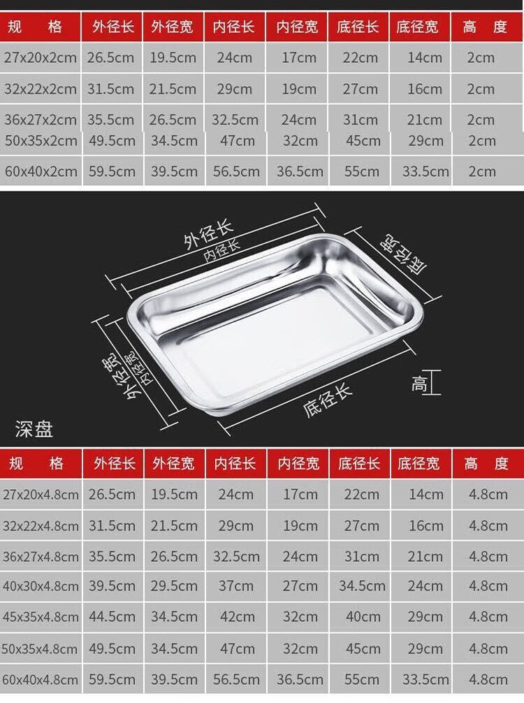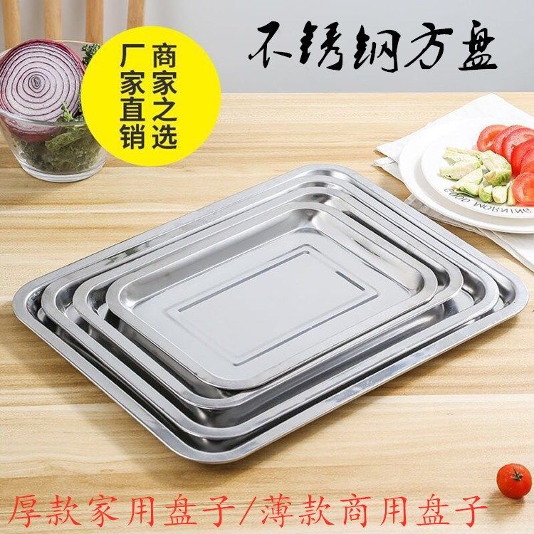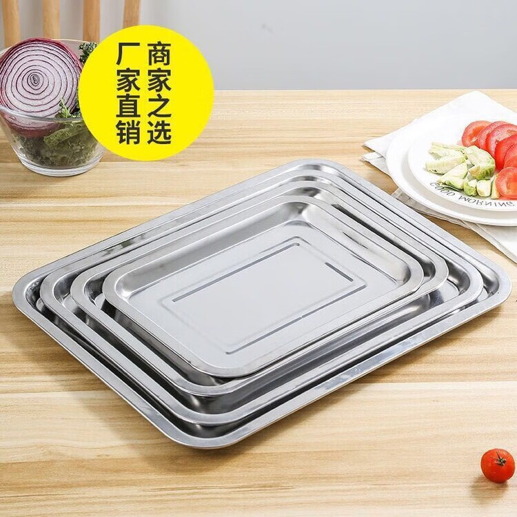 DEATKN方盘不锈钢盘子托盘长方形盘家用厨房凉皮盘烧烤盘铁盘薄厚款蒸饭 标注:尺寸和材质请先了解