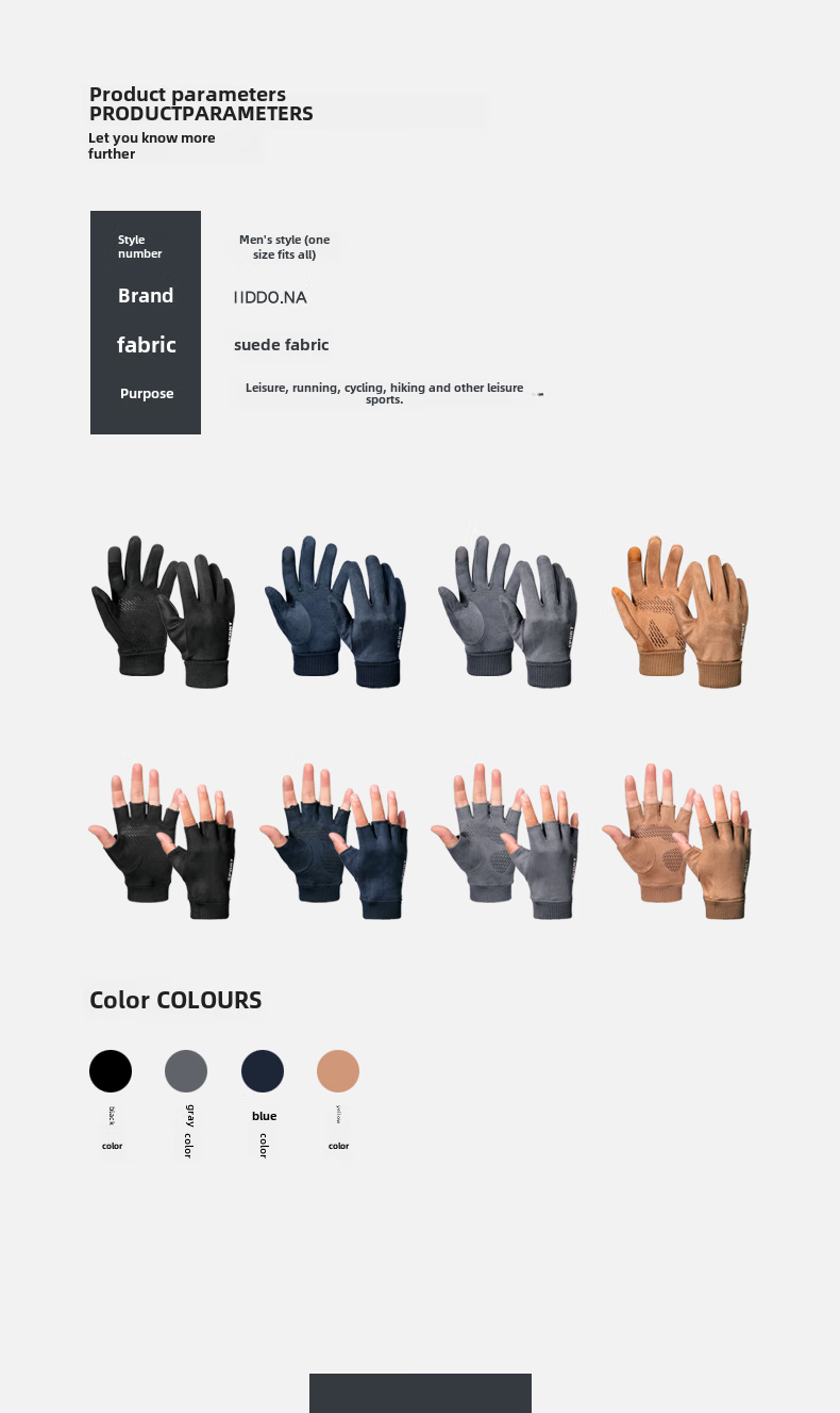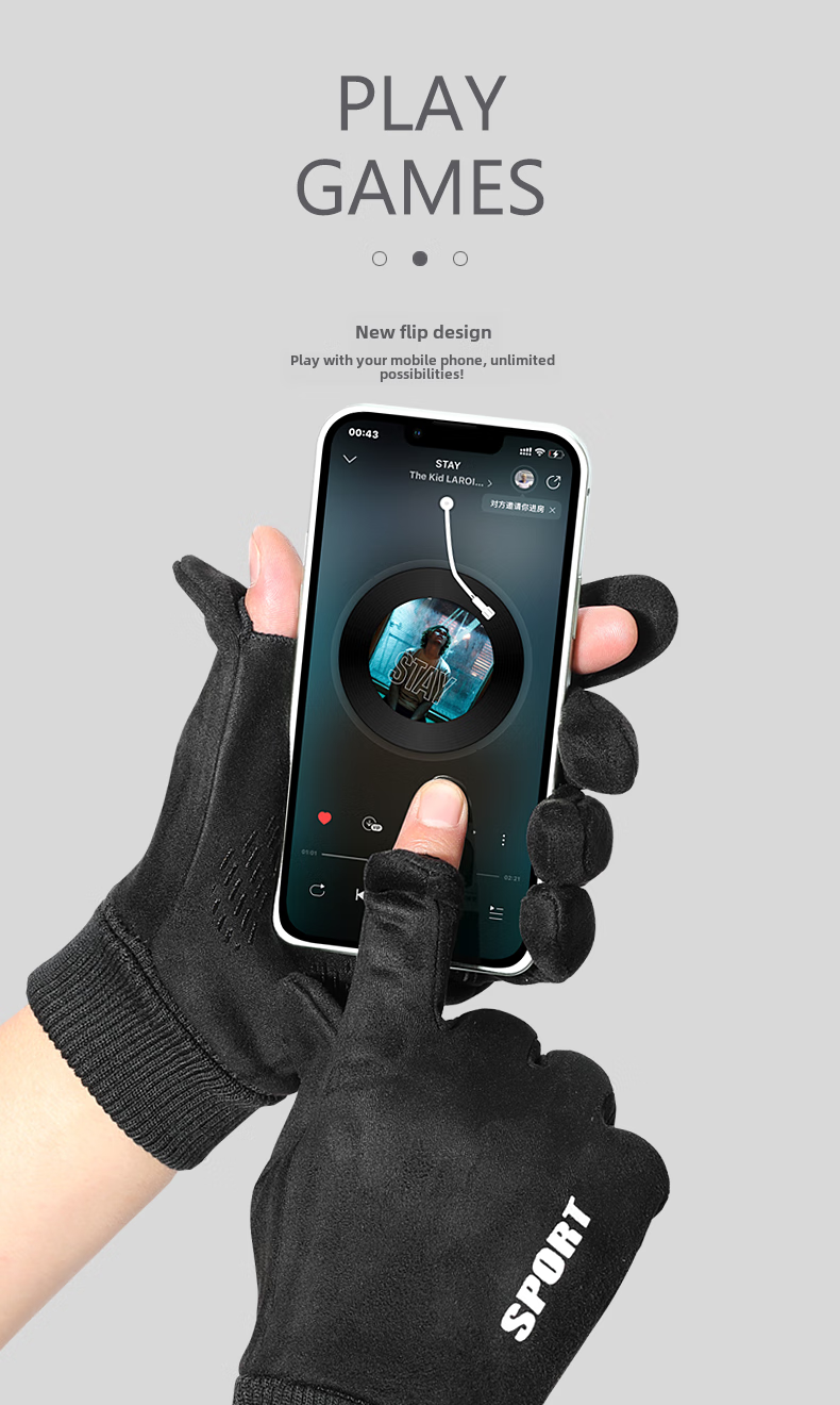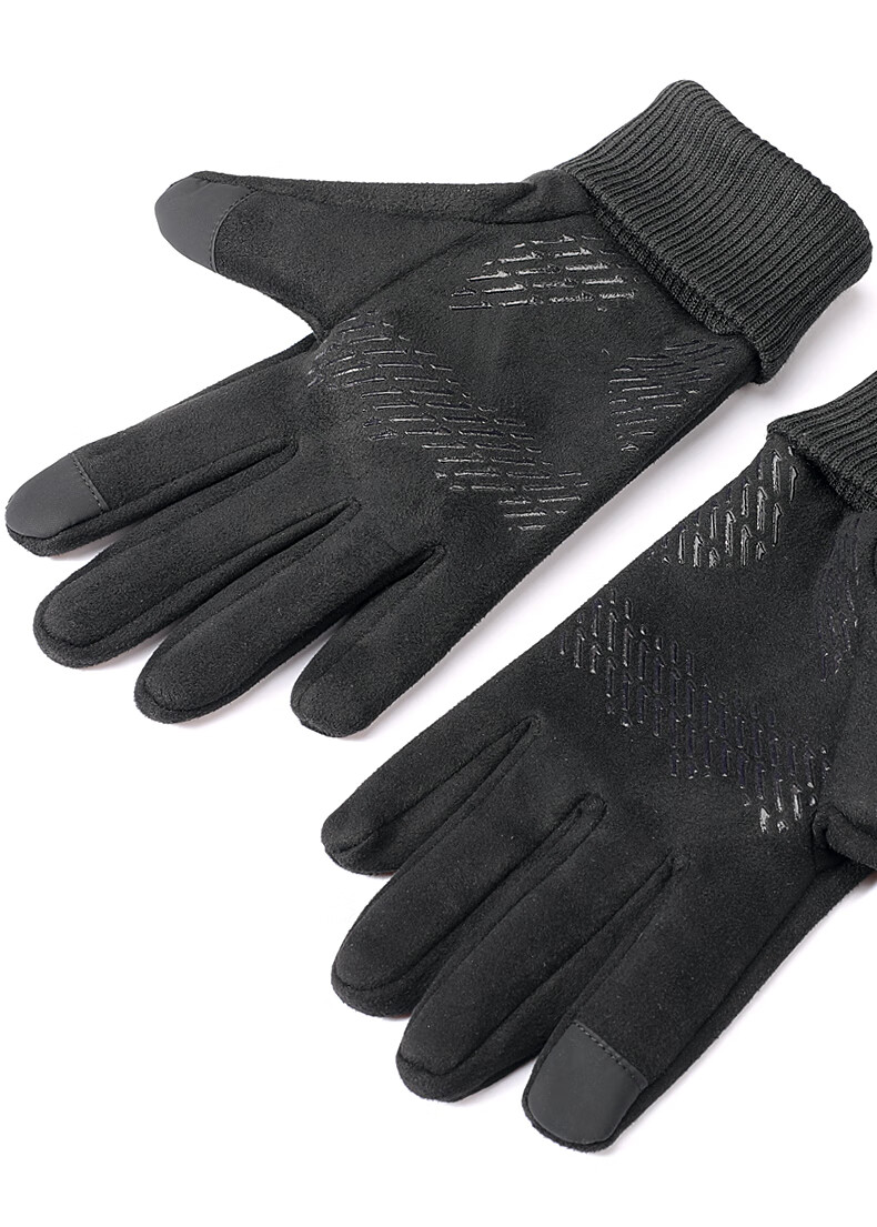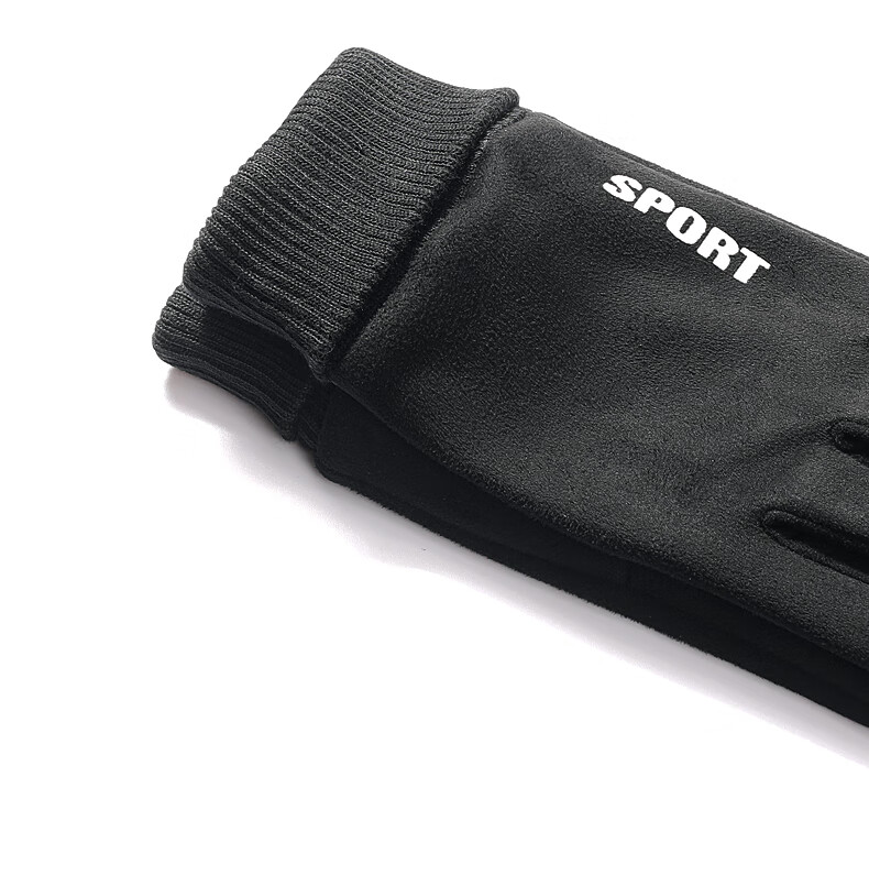 DEATKN德国麂皮绒手套冬季男款骑车保暖防风翻盖露二指触屏开车骑行摩托 麂皮绒长罗口(翻盖)-黑色 均码